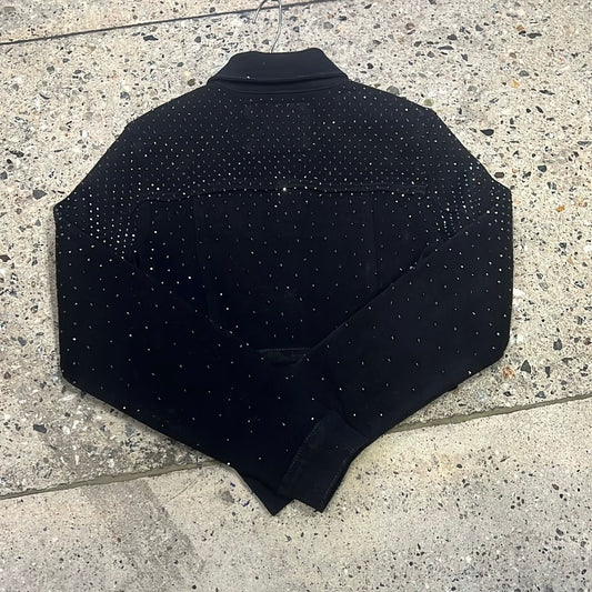 Denim Rhinestone Cropped Jacket-Black