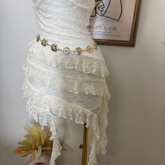 Halter Lace Mini Dress with Layered skirt-Ivory