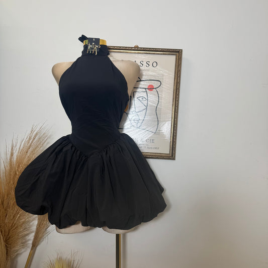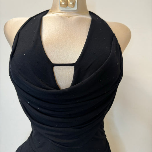 Halter Drape Trim Detail Mini Dress-Black