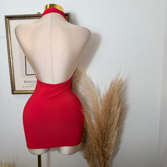 Sleeveless Halter Cowl Neckline Mini Dress-Red