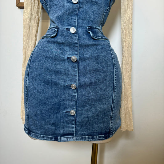 PL-Denim Tube Mini Dress-Denim