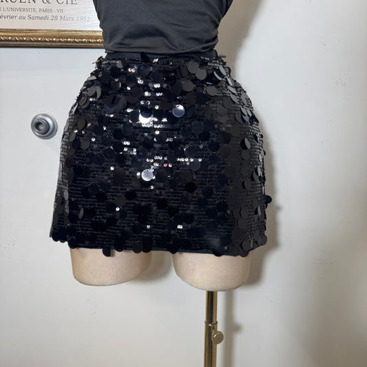 Sequin Mini Skirt-Black