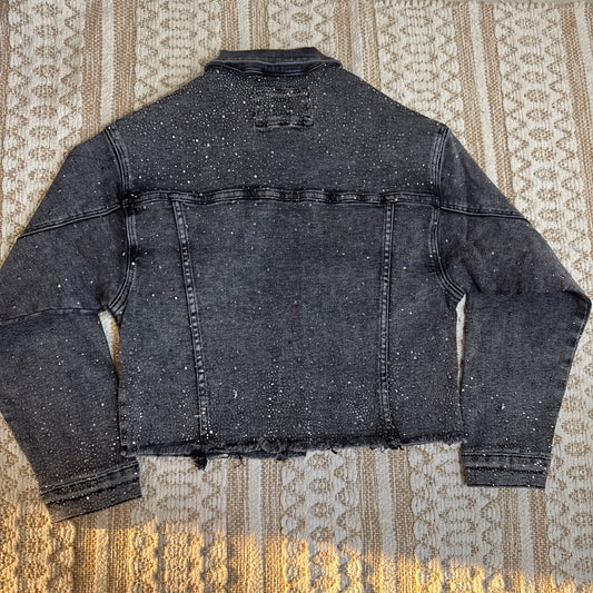 Rhinestone Denim Jacket-Black