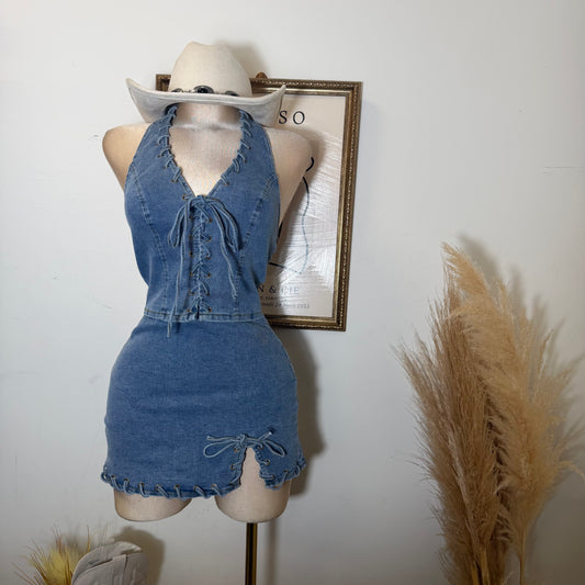Halter Neck Pearl Embellished Knit Mini Dress-Mocha