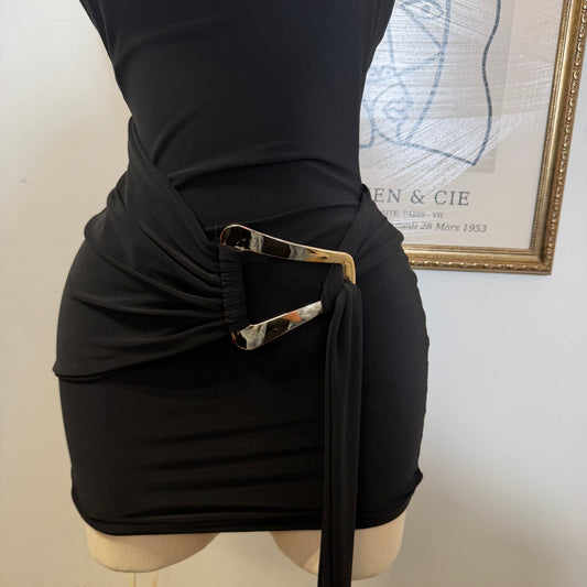 Crepe High Halter Neckline Bow tie Detail Dress-Black