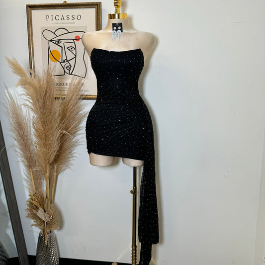 STUDD HOTFIX REGISTERED LACE STRAPLESS MINI BODYCON DRESS-Black