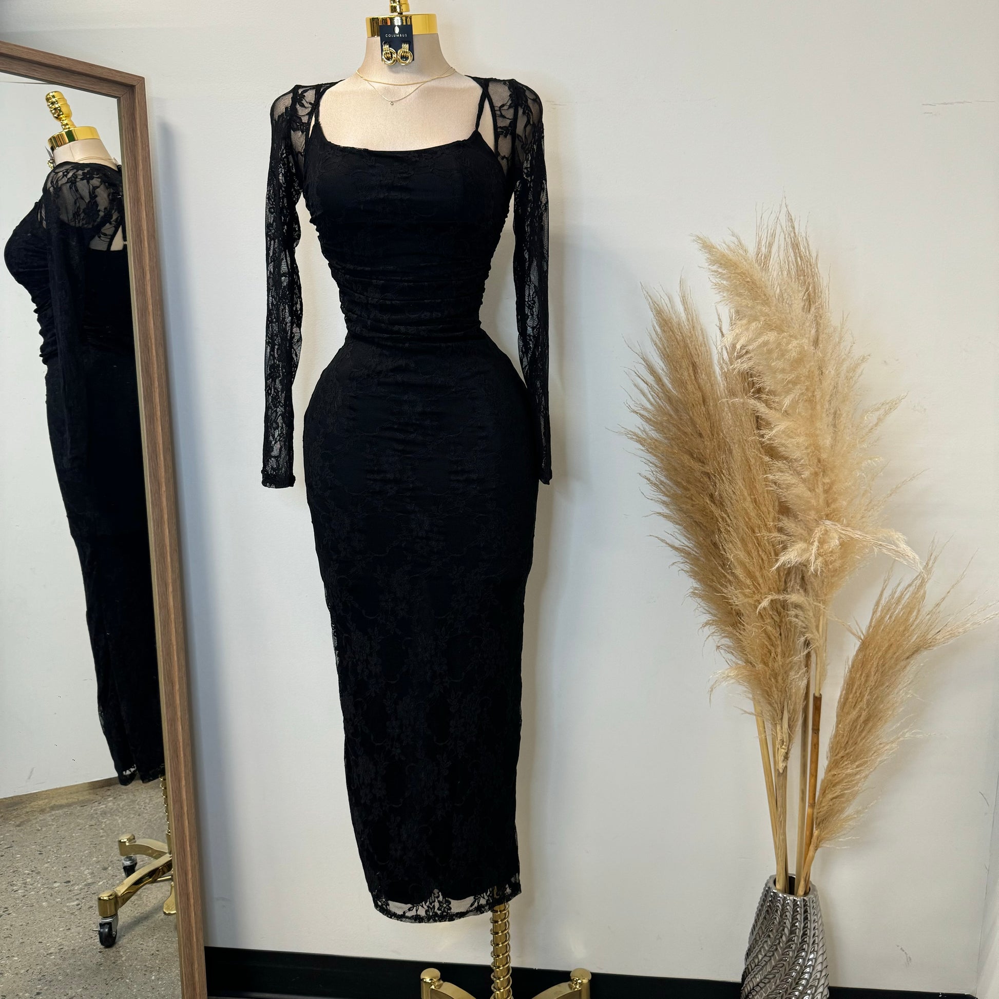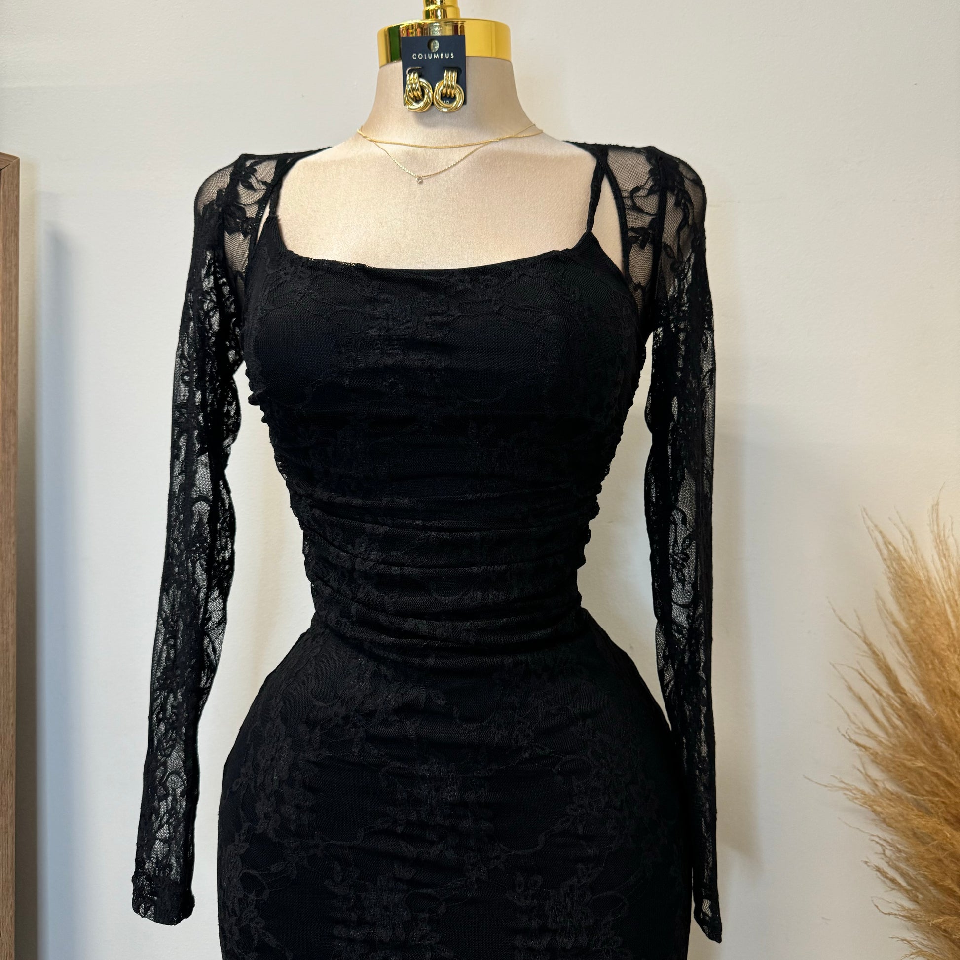 Aimara Lace Long Sleeve Dress-black