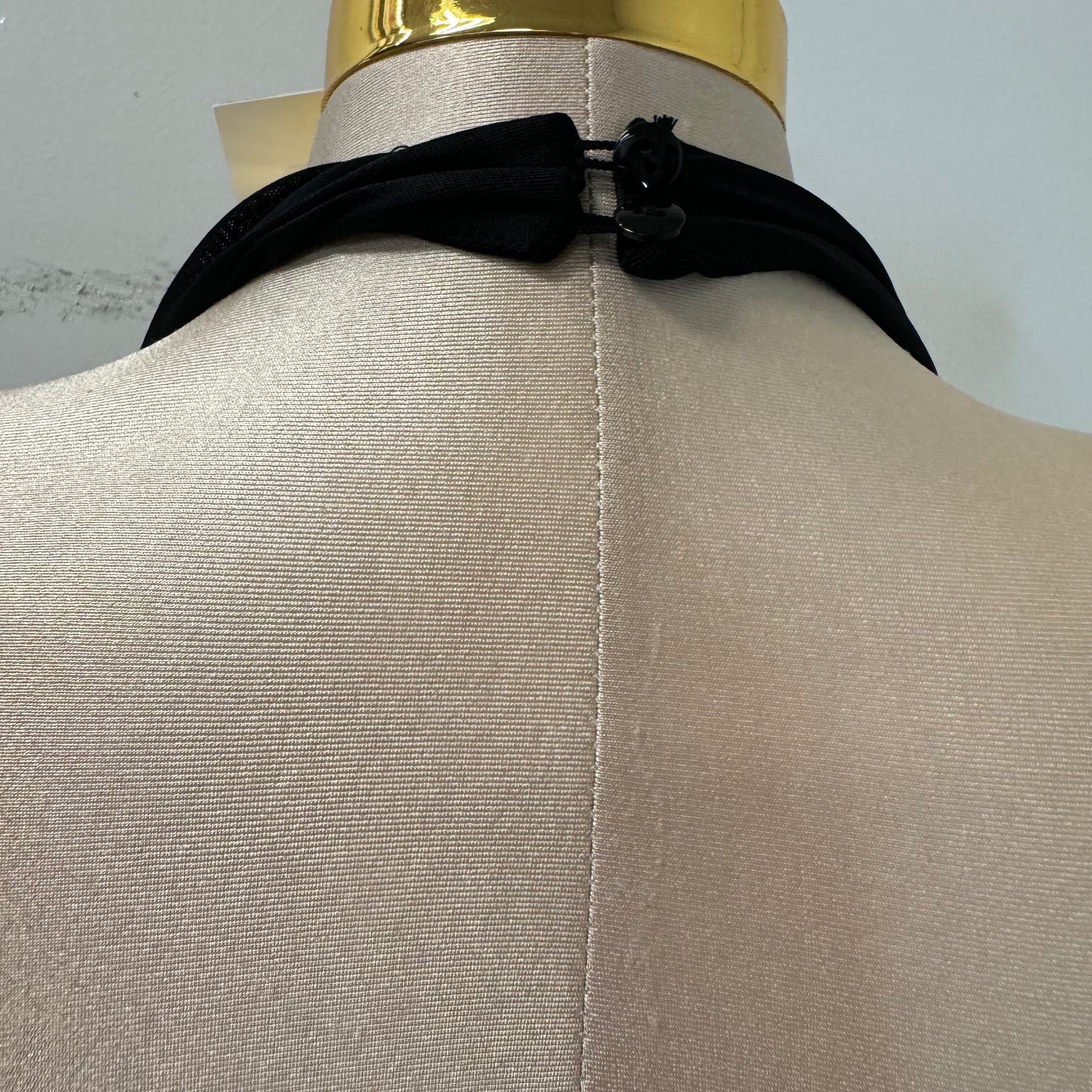 LUXE HOTFIX STONES EMBELLISHED MESH COWL NECK WITH HALTERNECK BODYSUIT TOP