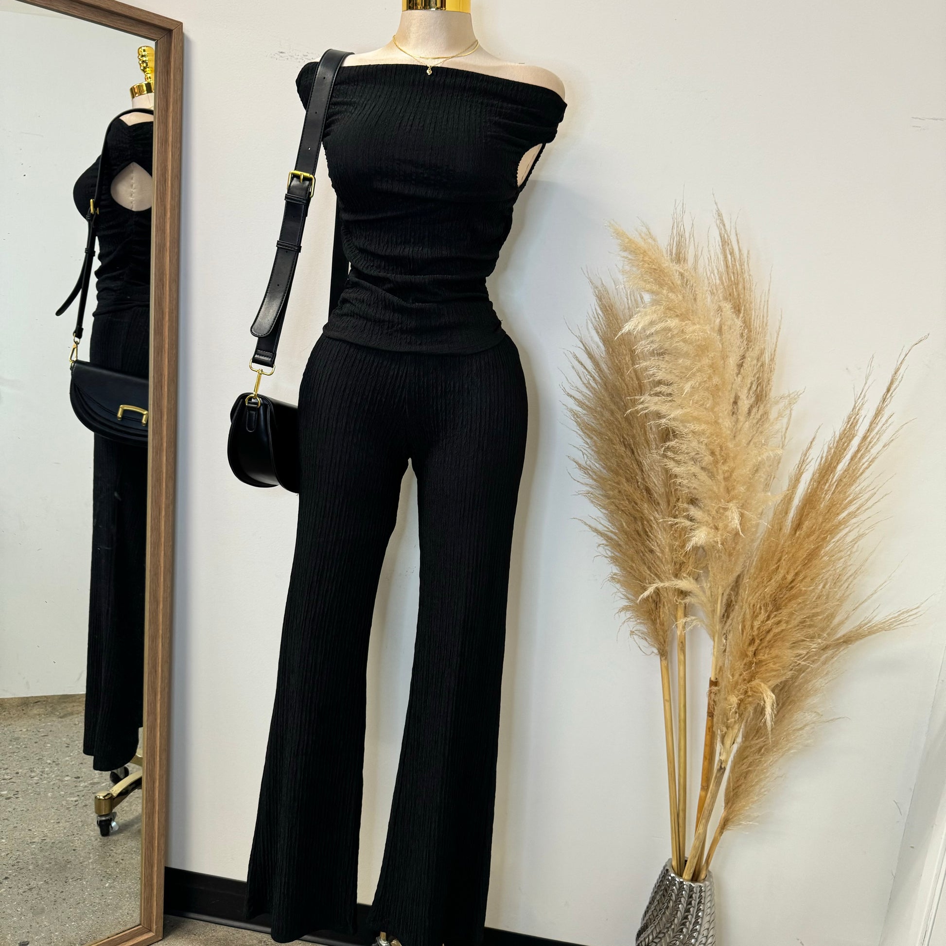 Alizia Two Piece Pant Set-Black