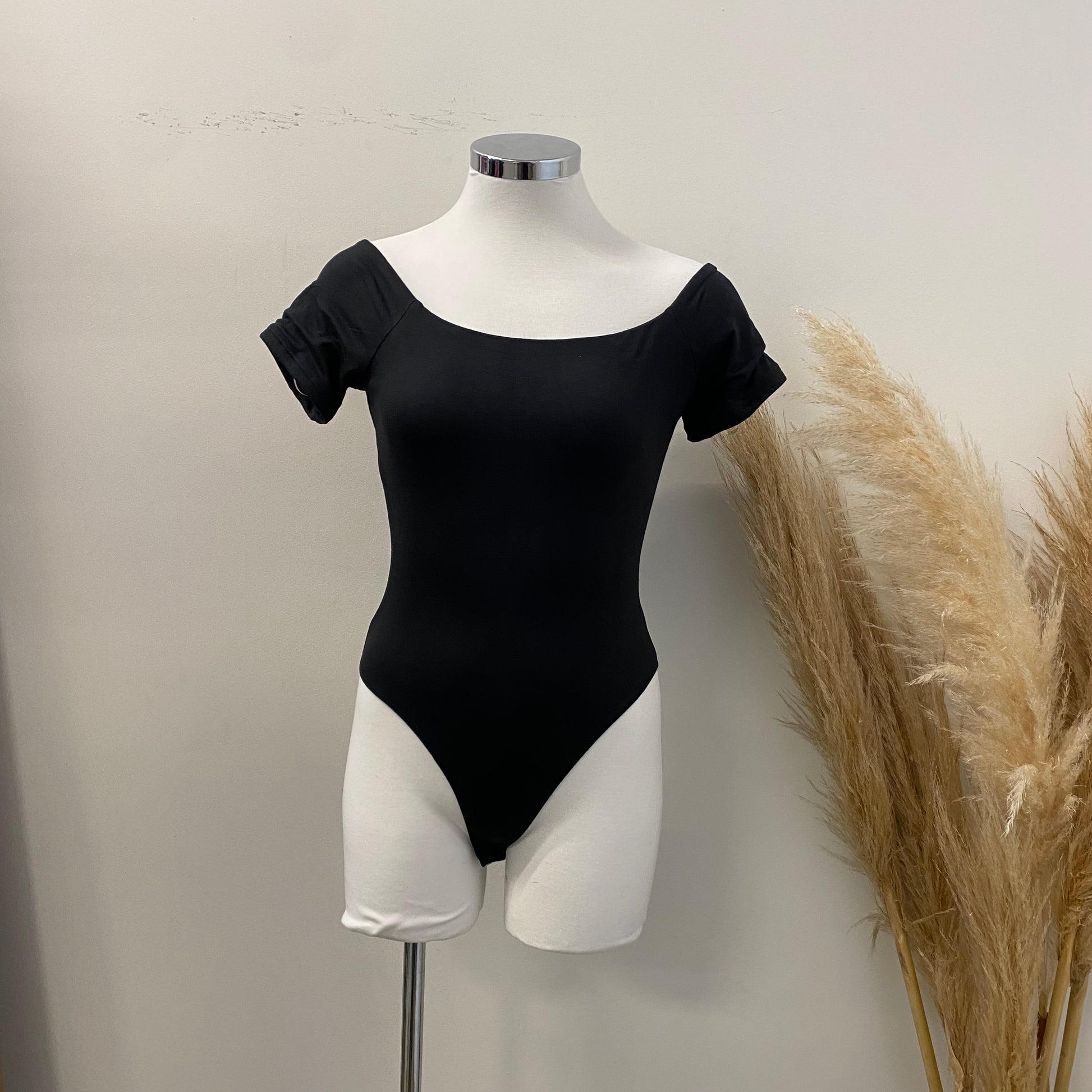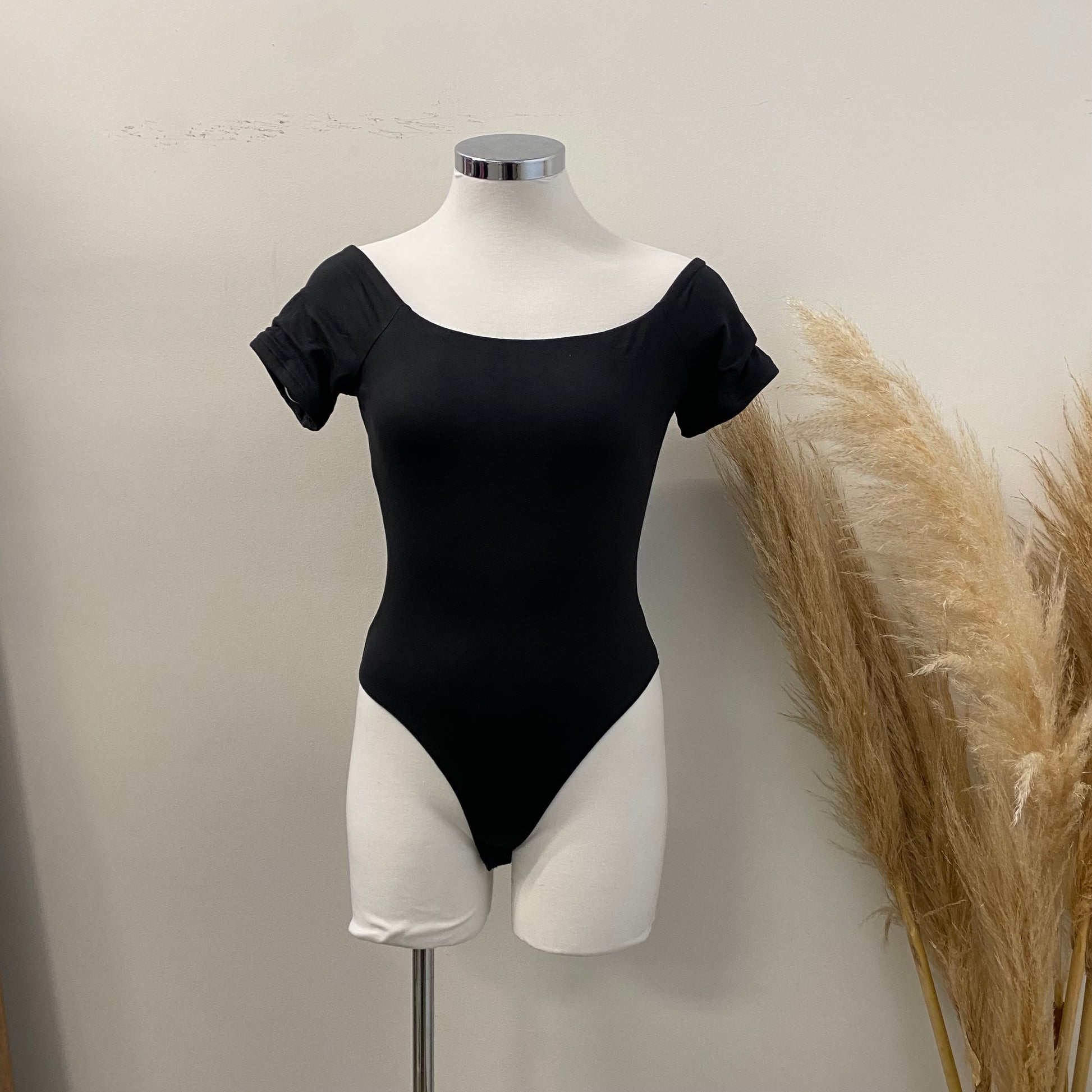 Basic Off Shoulder Bodysuit -Black