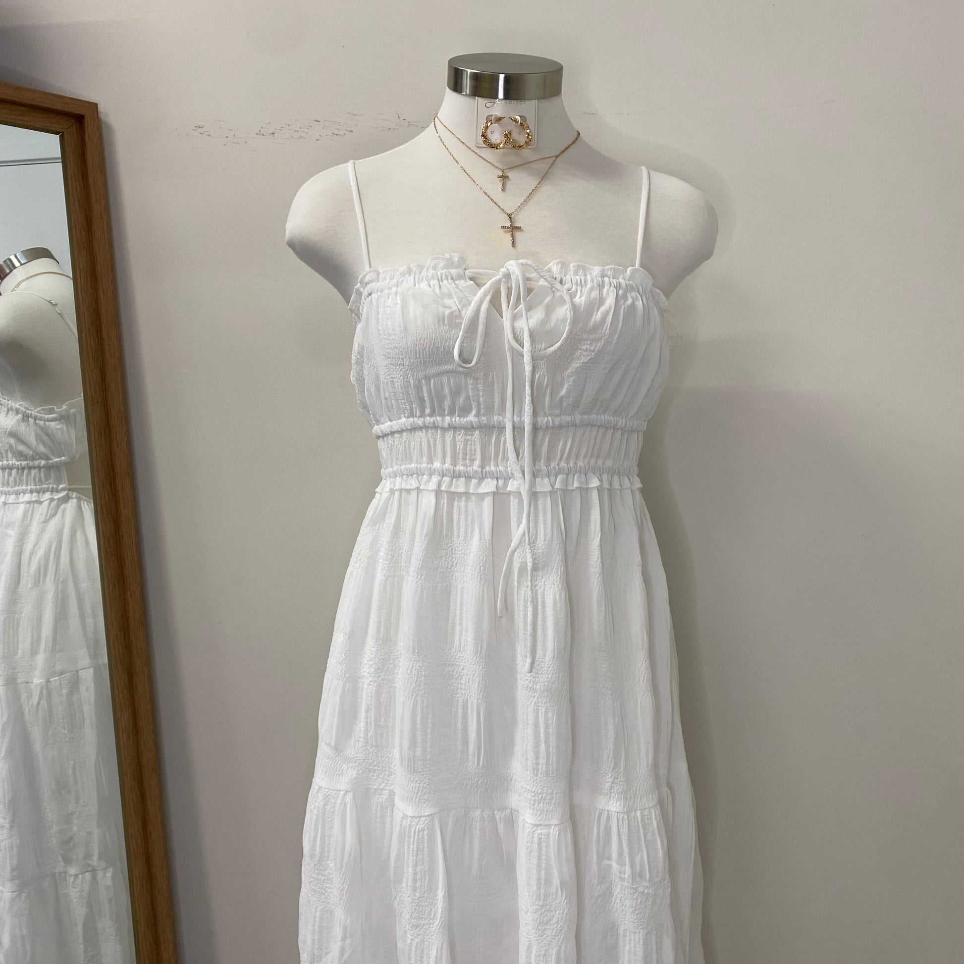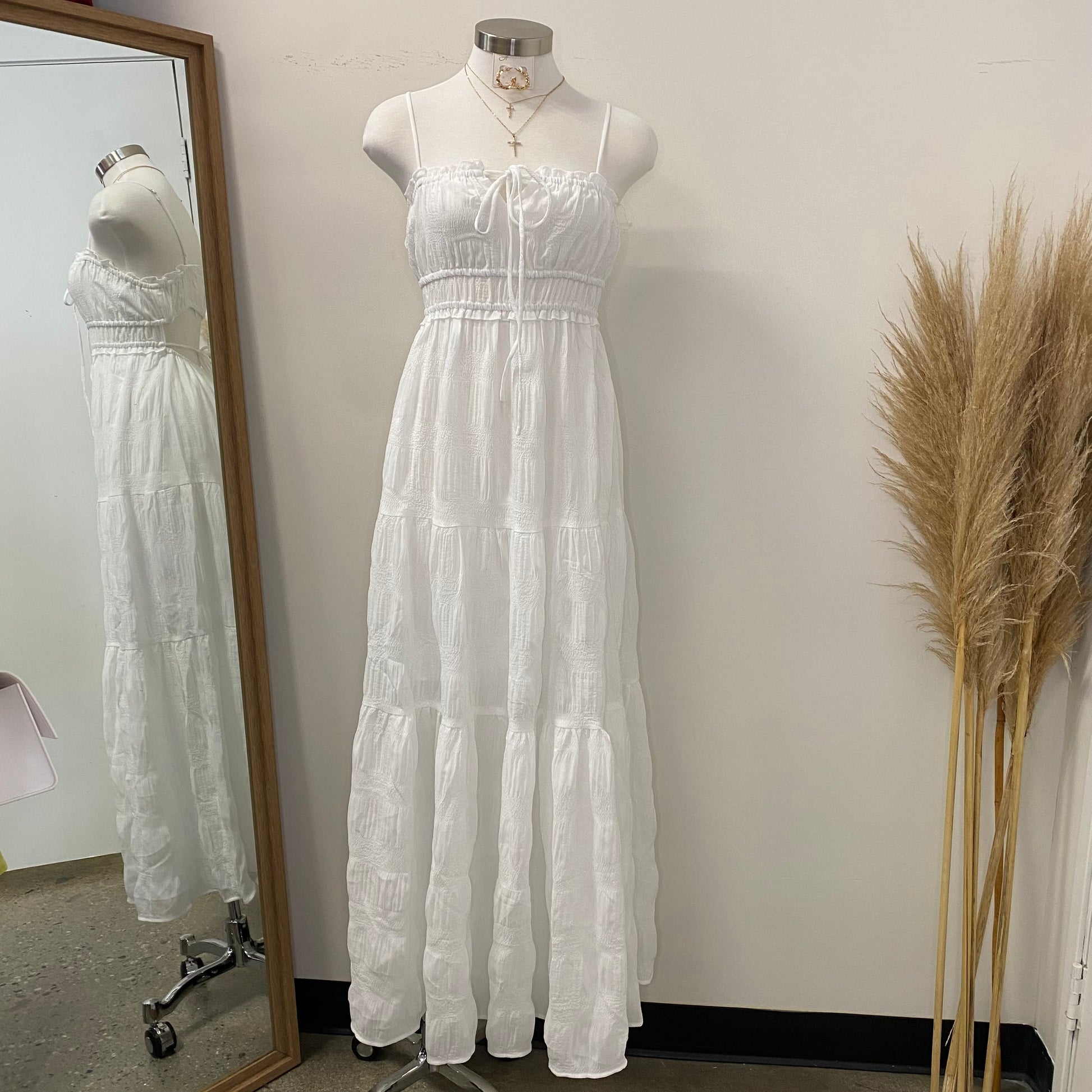 -Waist cutout Maxi dress with tiered skirt bottom detail