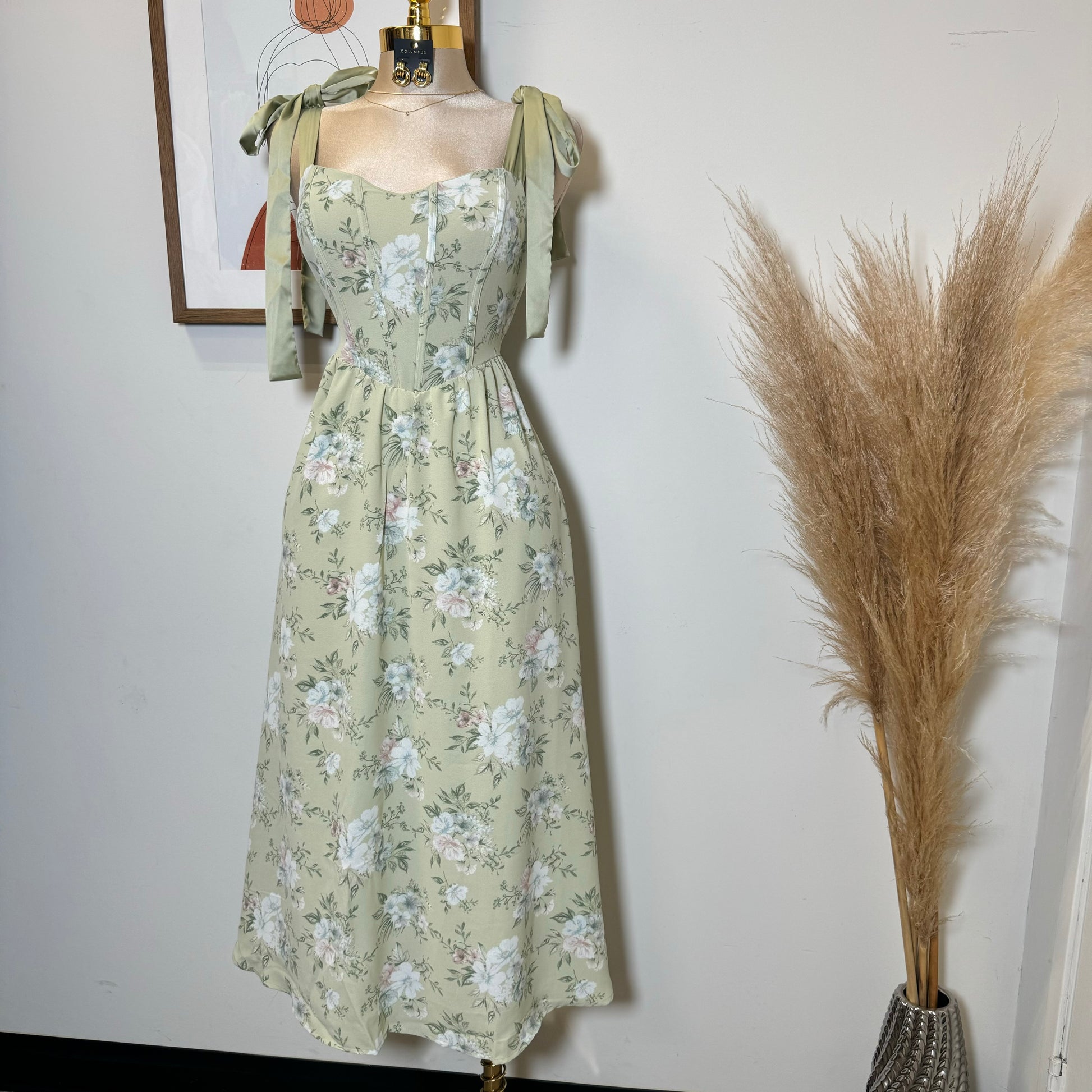 Bunny Corset Maxi Dress-Green