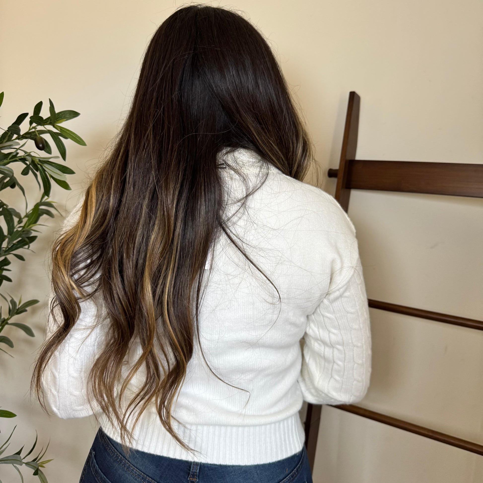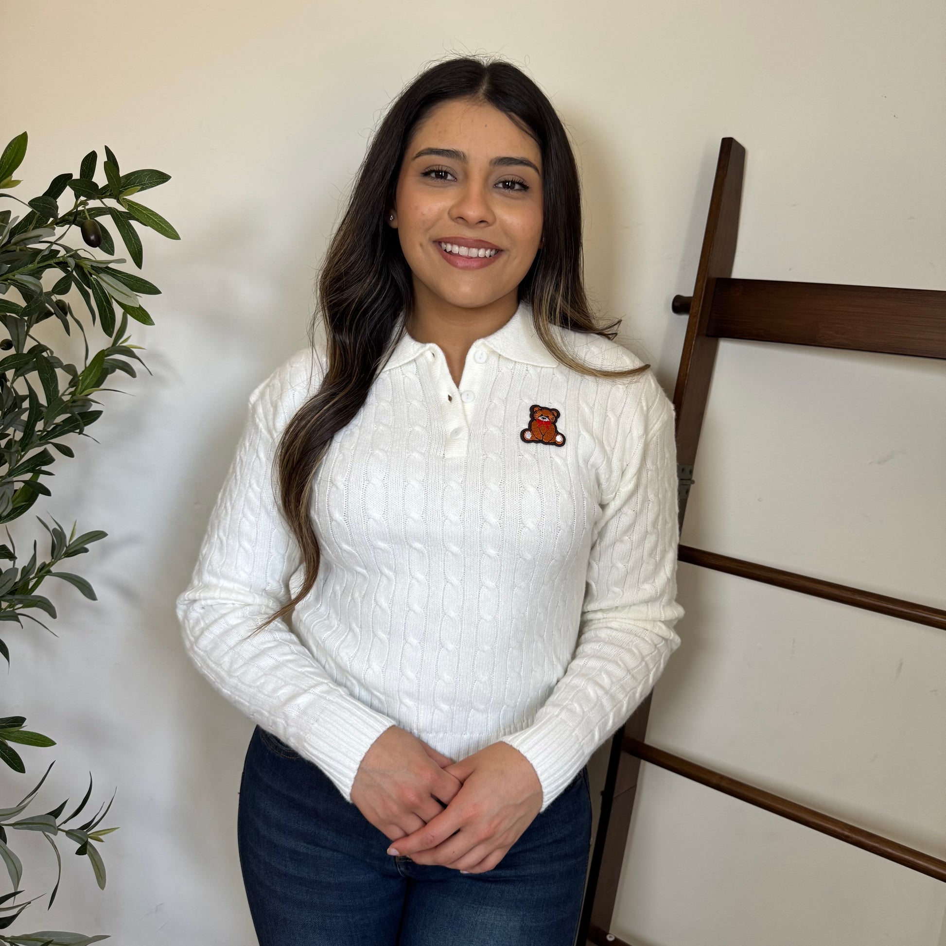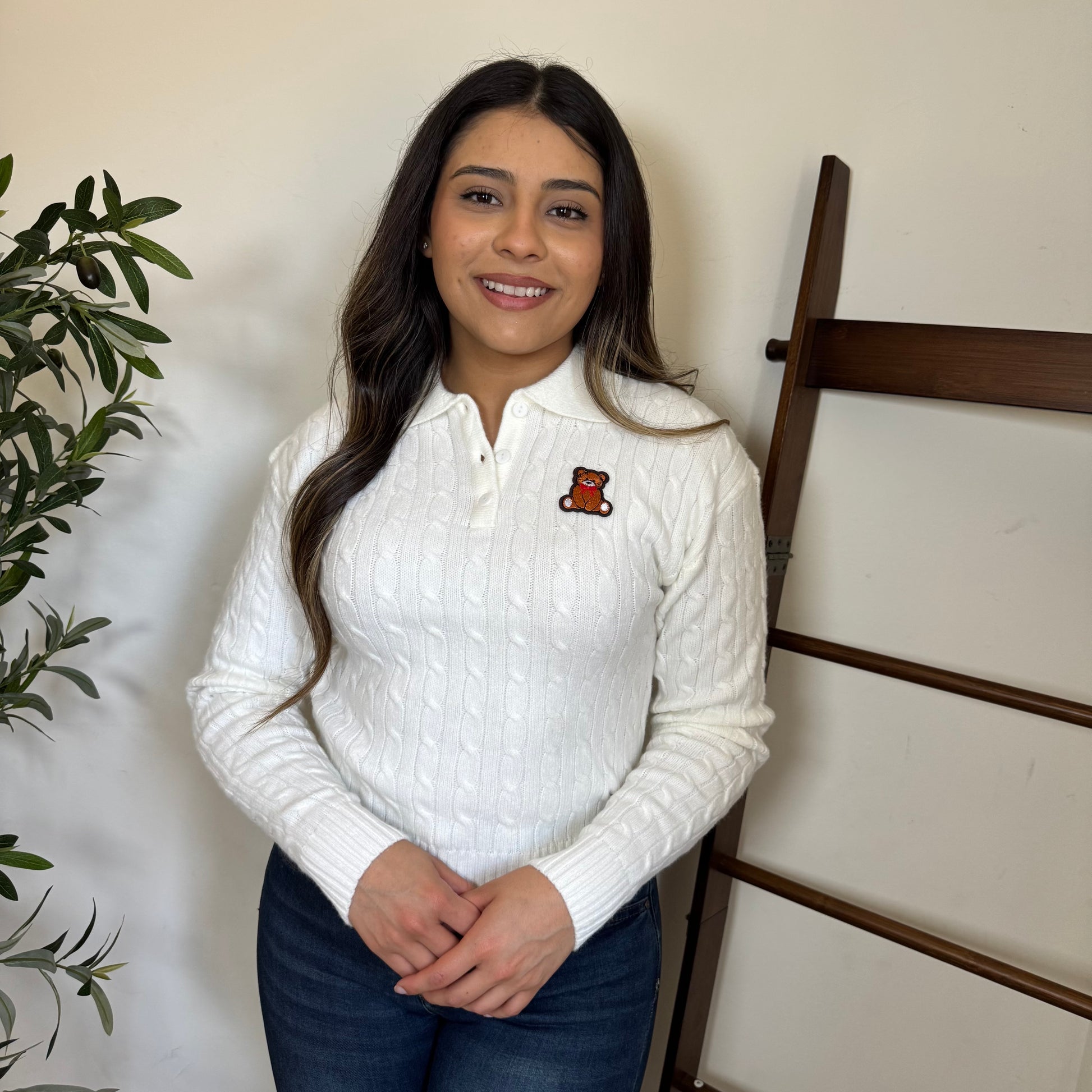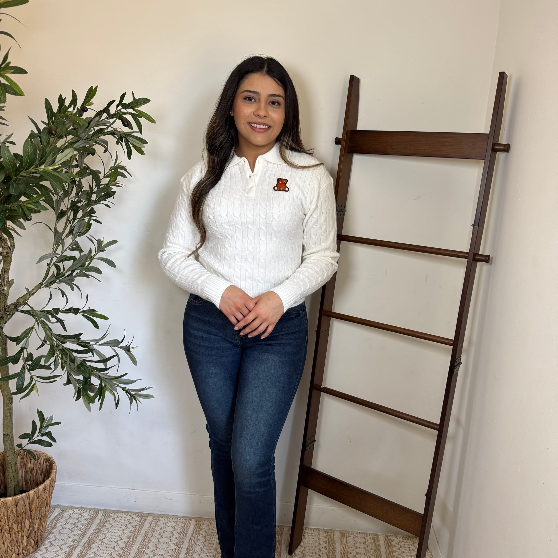 Cable Knit Teddy Bear Polo Sweater-Ivory