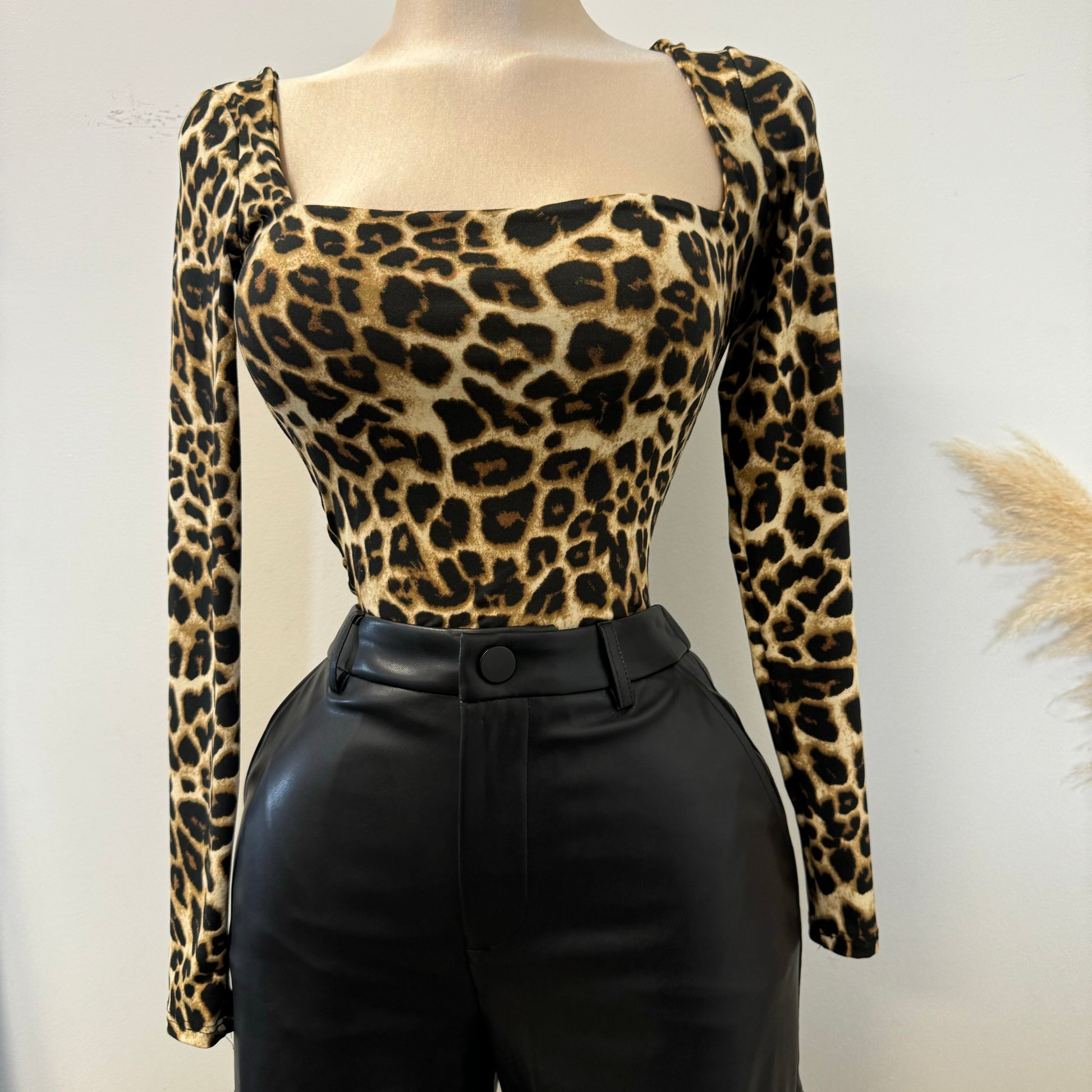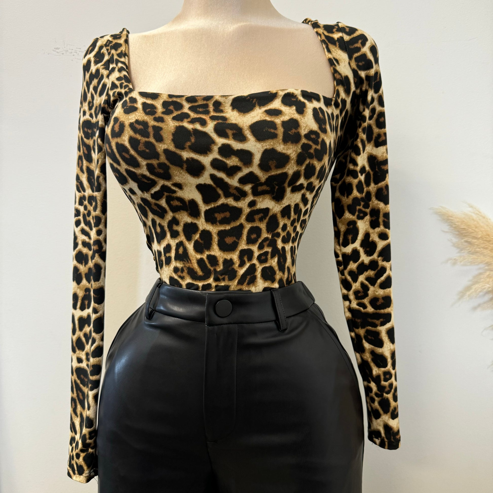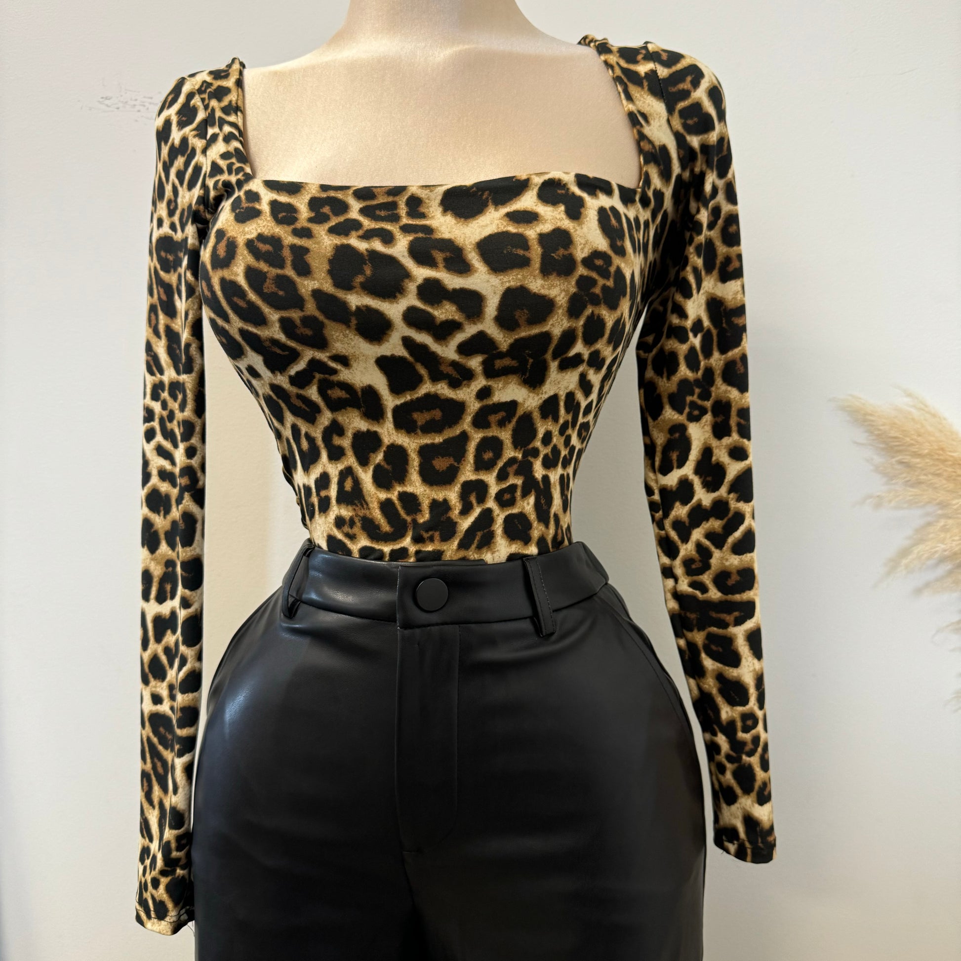 Cheetah Double Layered Long Sleeve Top-Cheetah