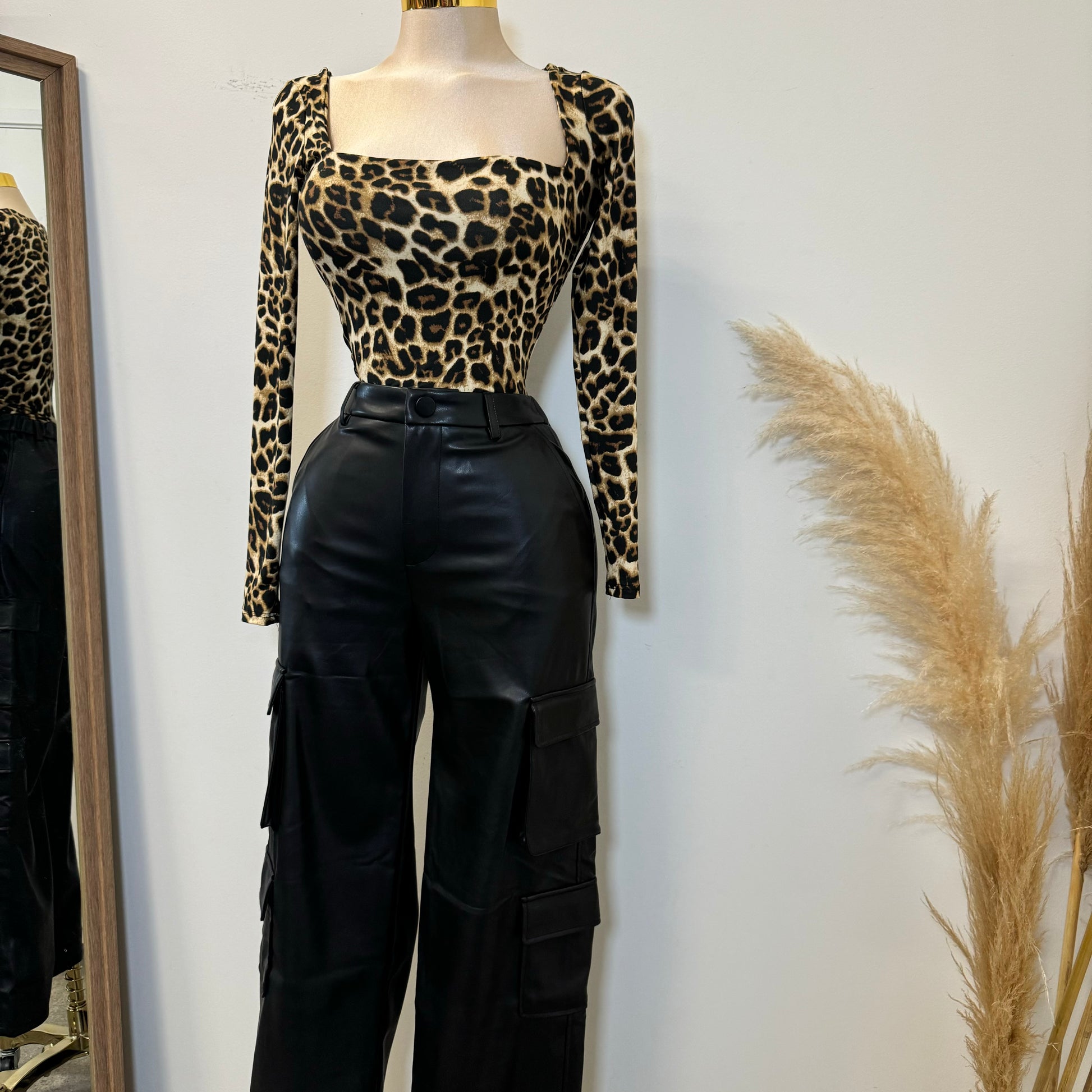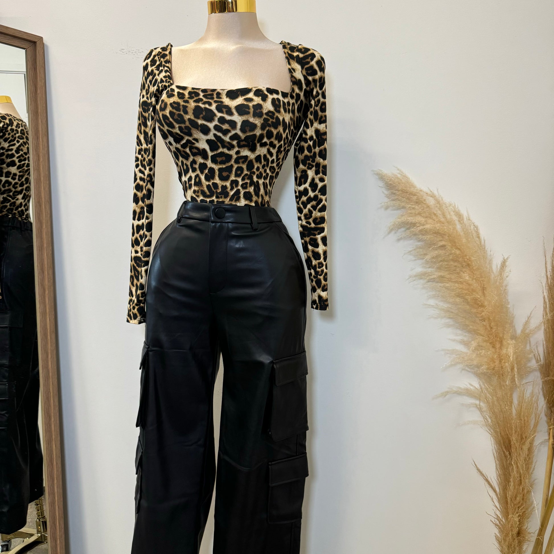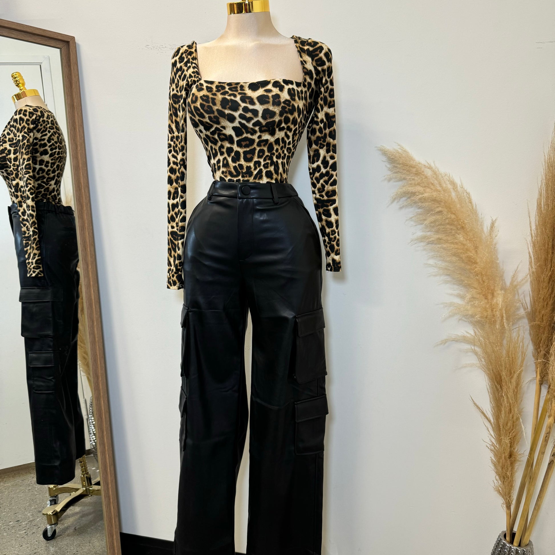 Cheetah Double Layered Long Sleeve Top-Cheetah