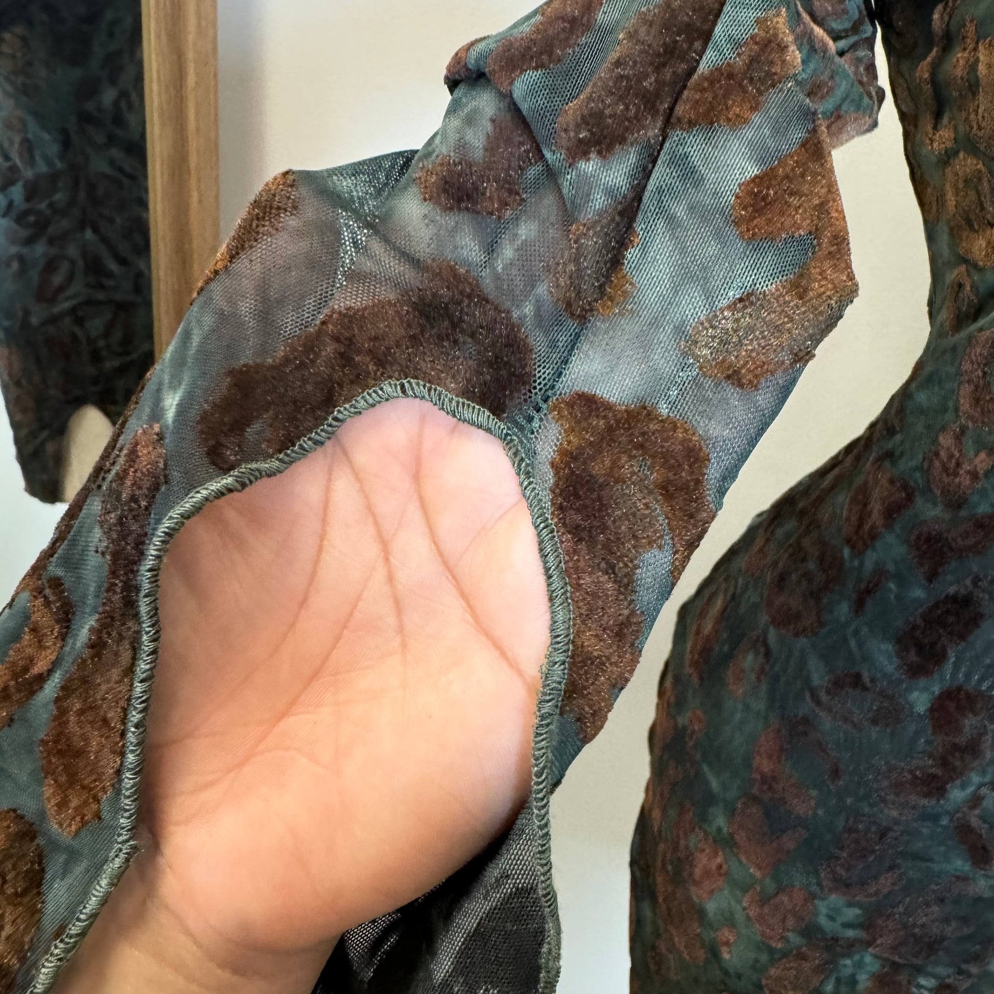 Cheetah Mesh Long Sleeve Dress-Multi Brown