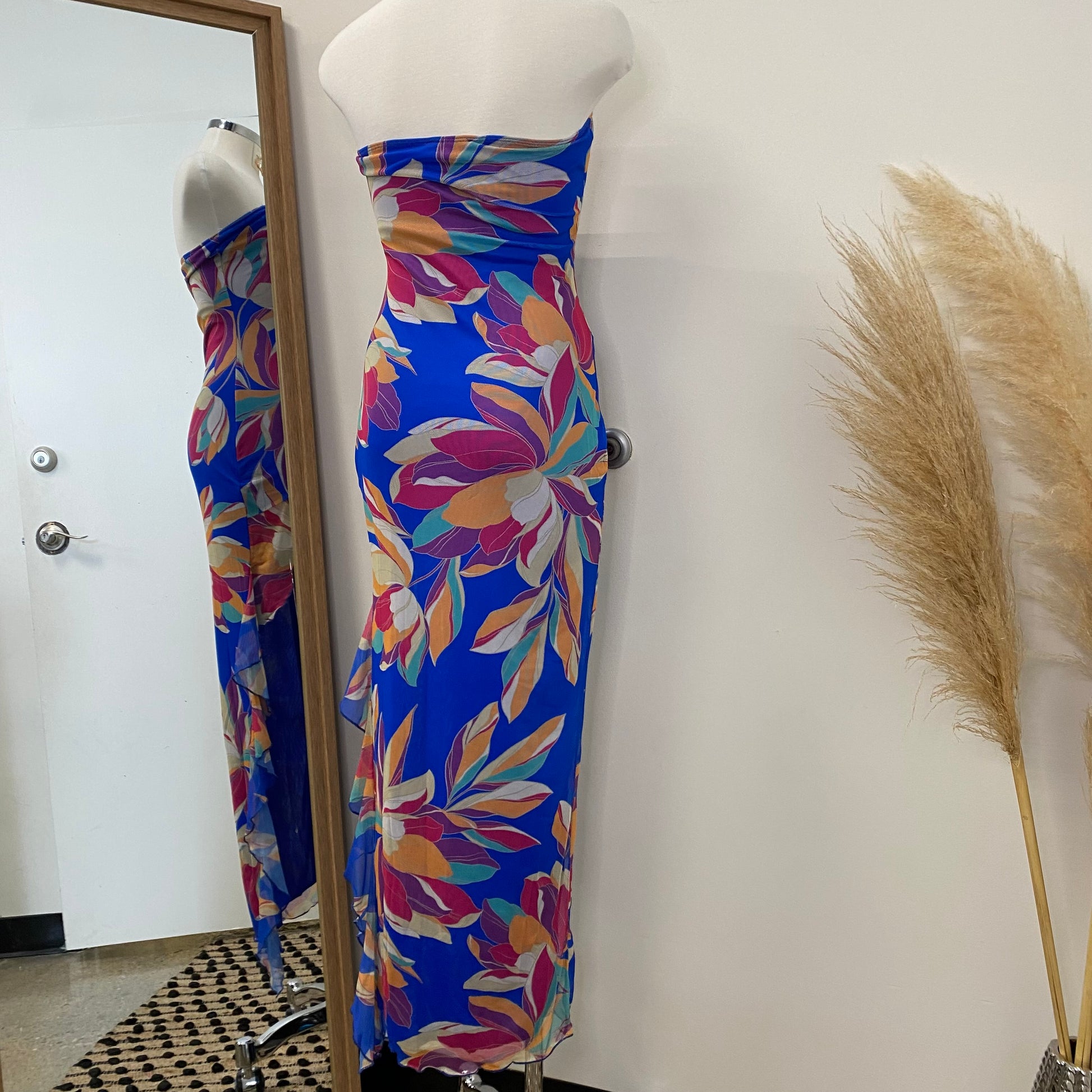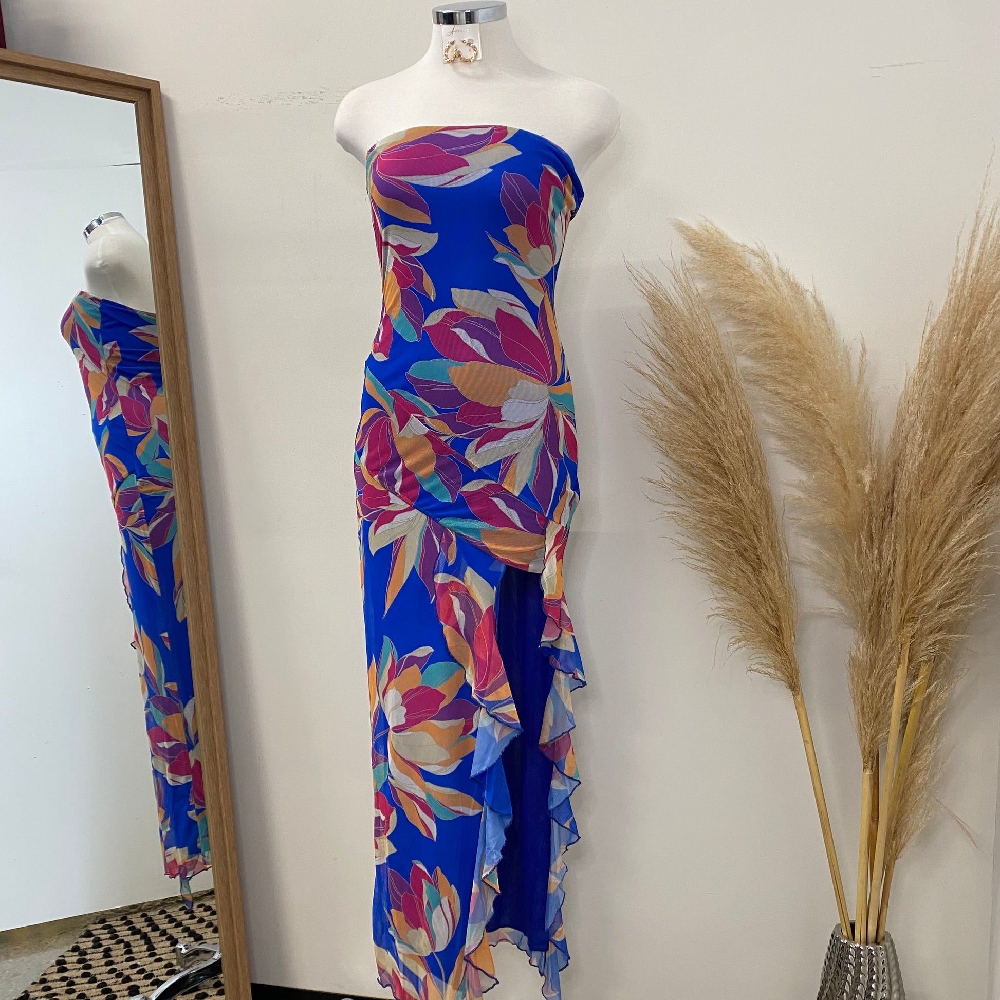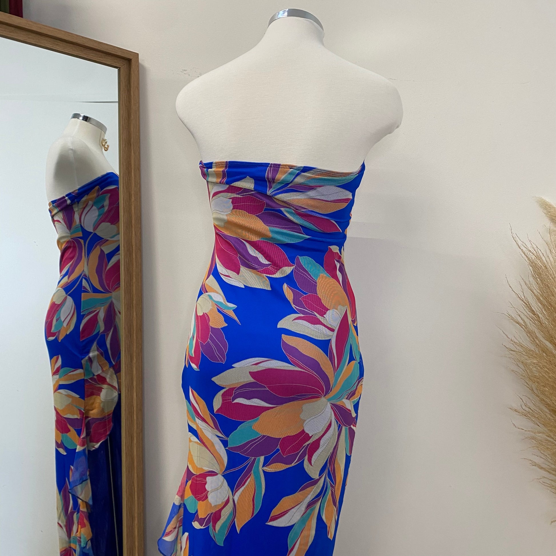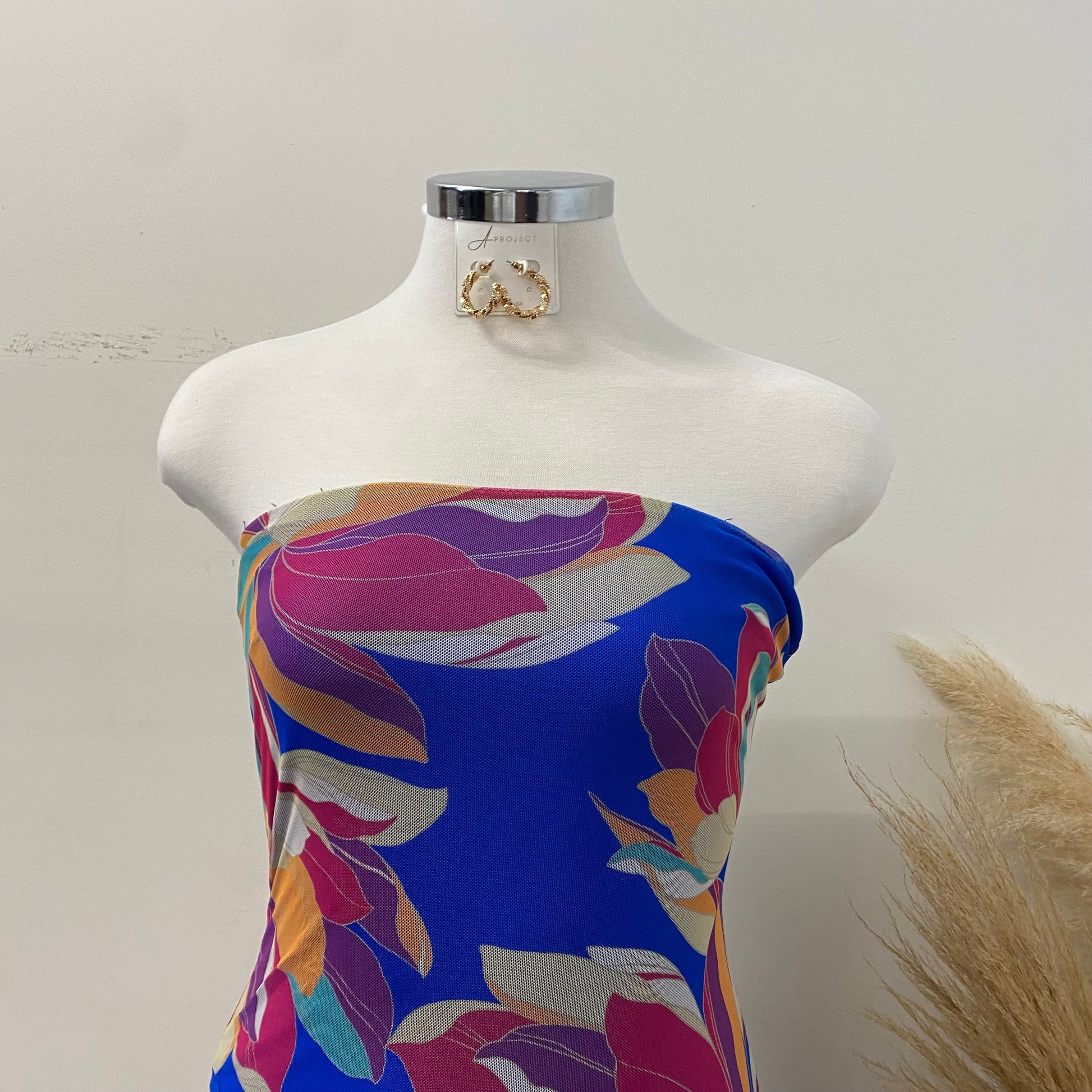 Coral Tube Mesh Dress-Blue
