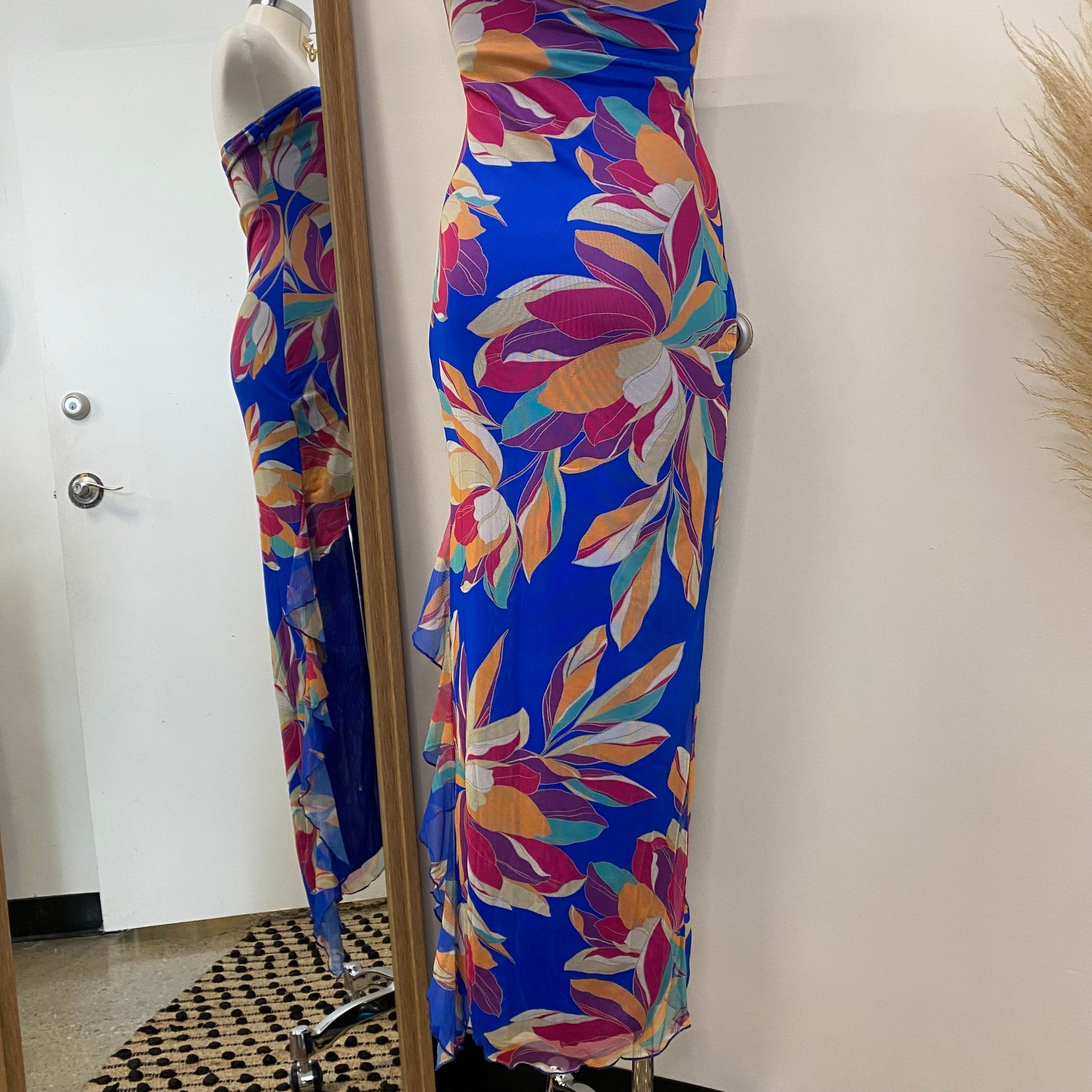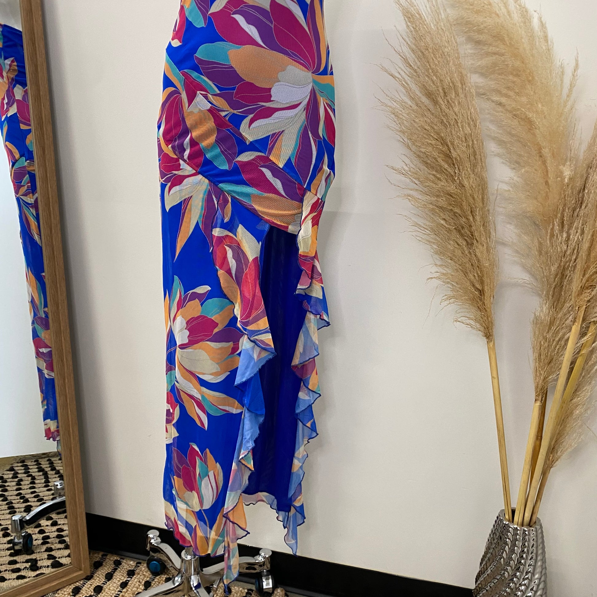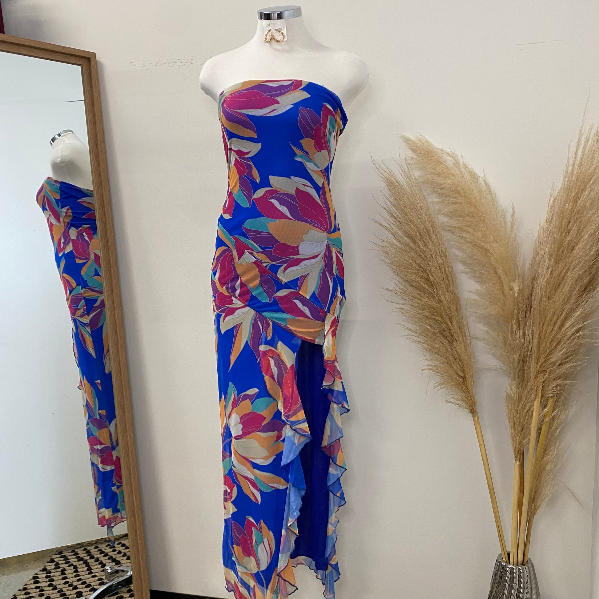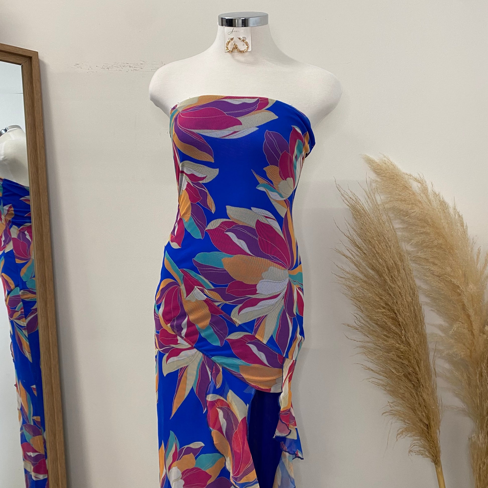 Coral Tube Mesh Dress-Blue