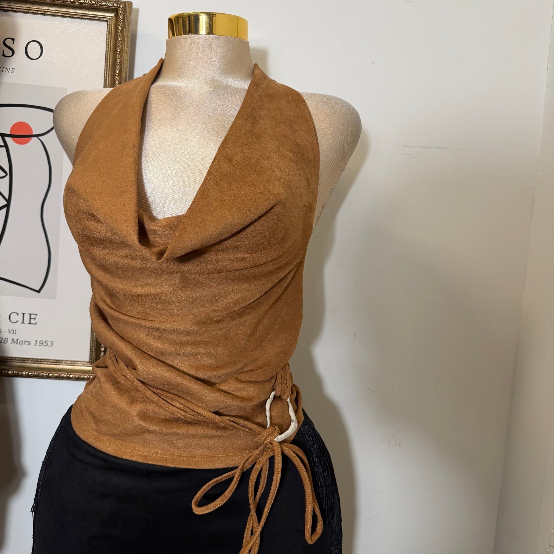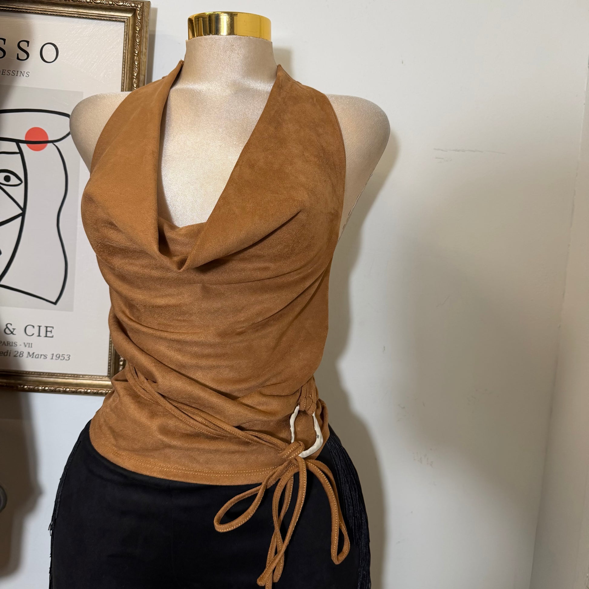 Cowl neck Halter Top-Caramel