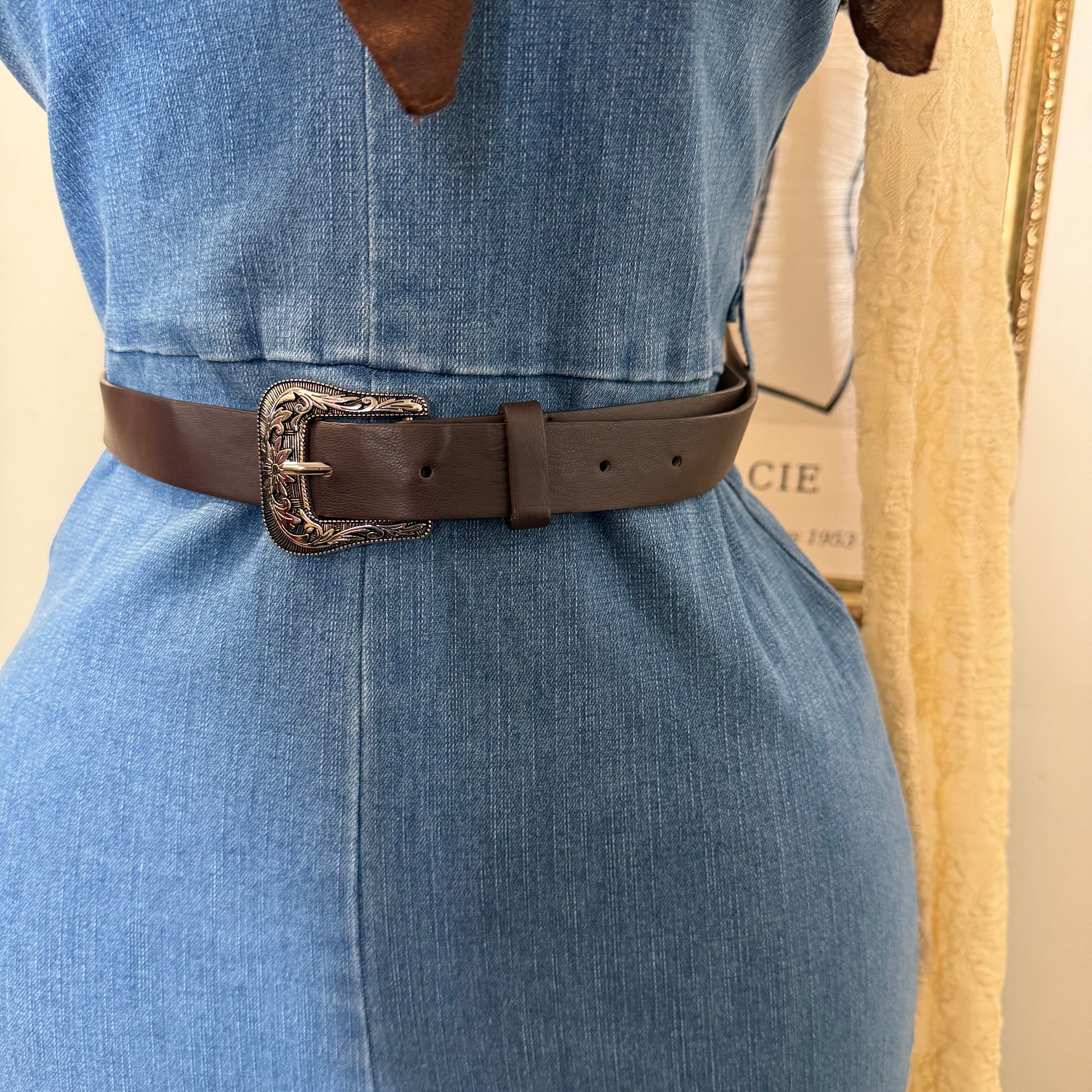 Denim Jumpsuit With Belt-Medium Blue
