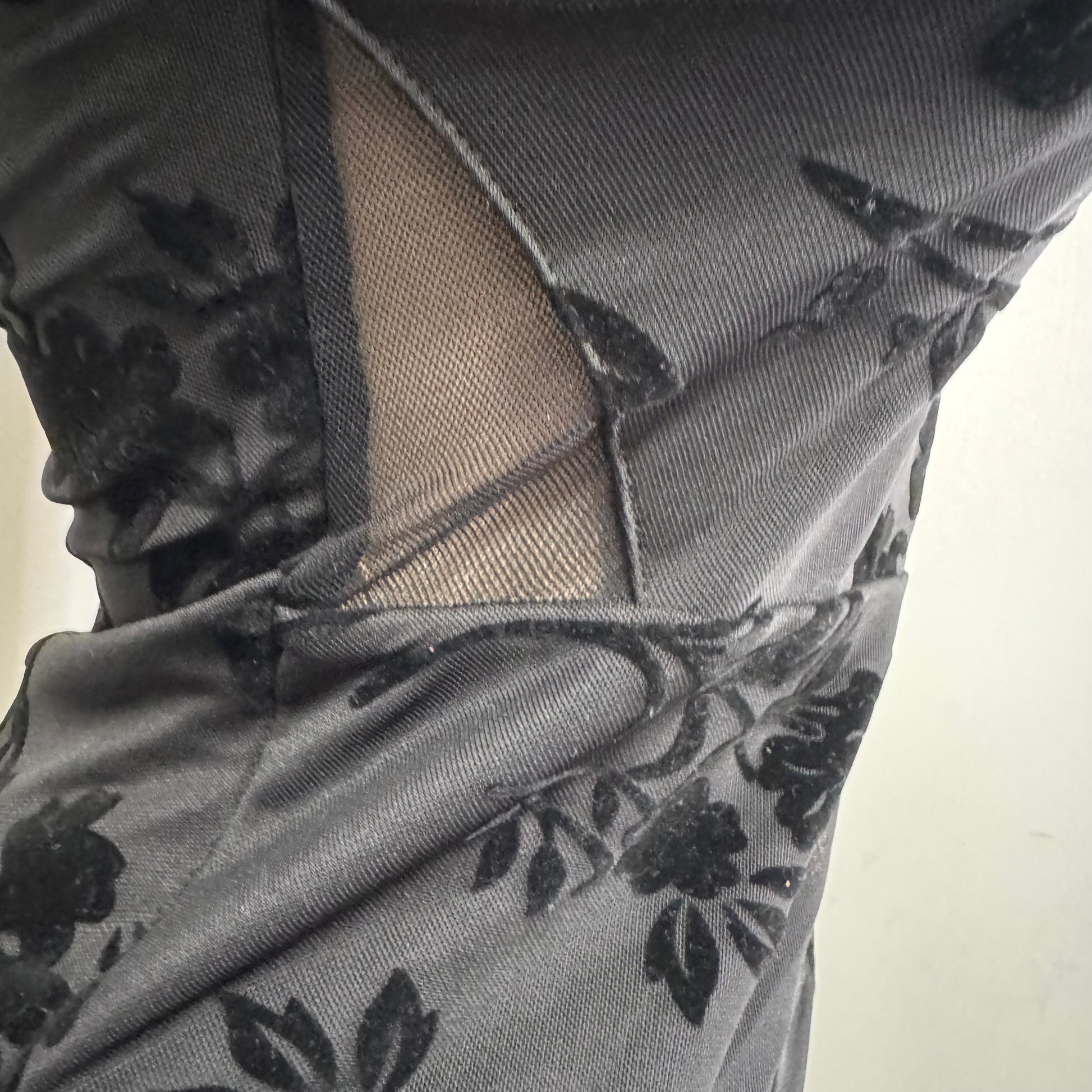 EDGE MESH & RUFFLE KNIT SWEETHEART OFF SHOULDER TIERED MINI DRESS