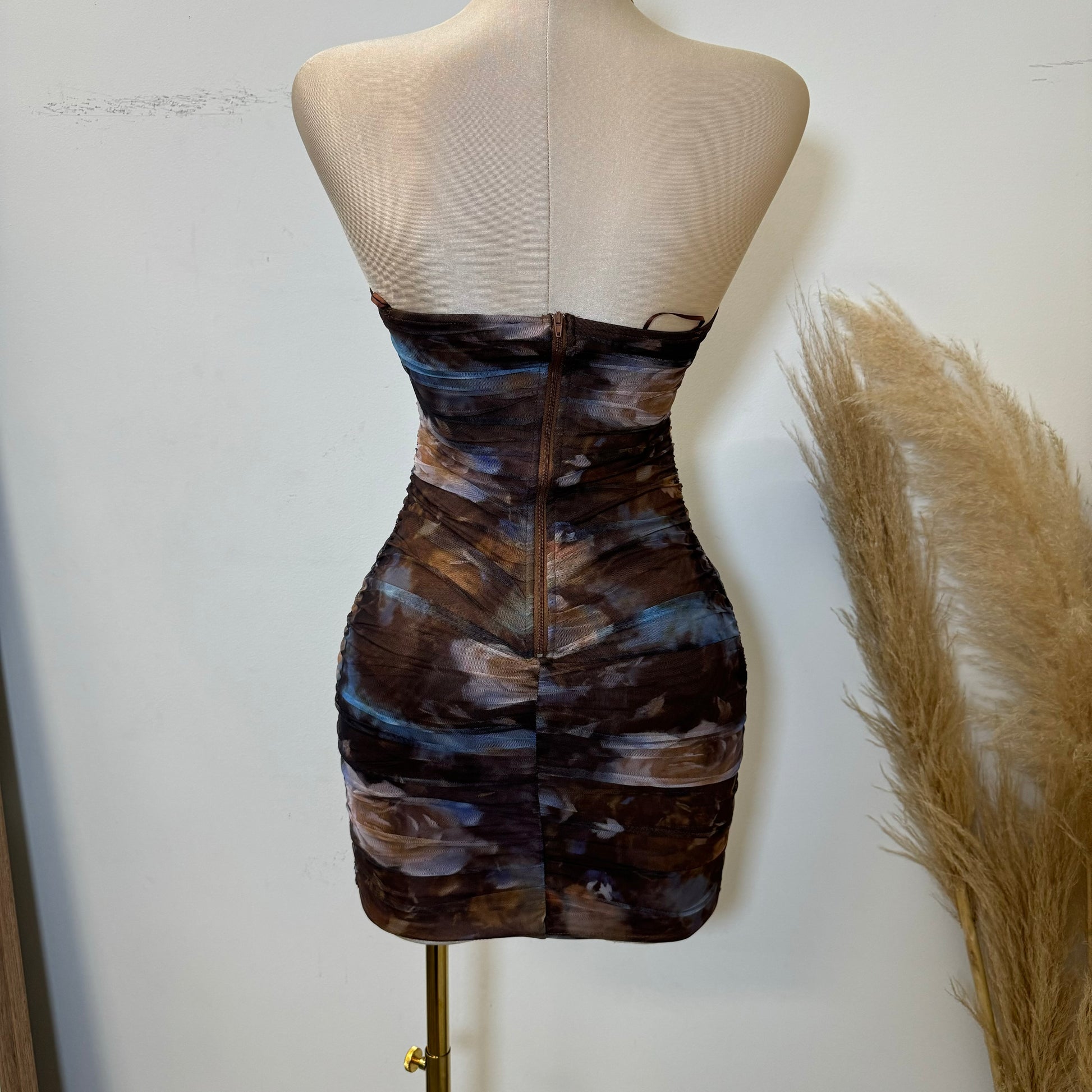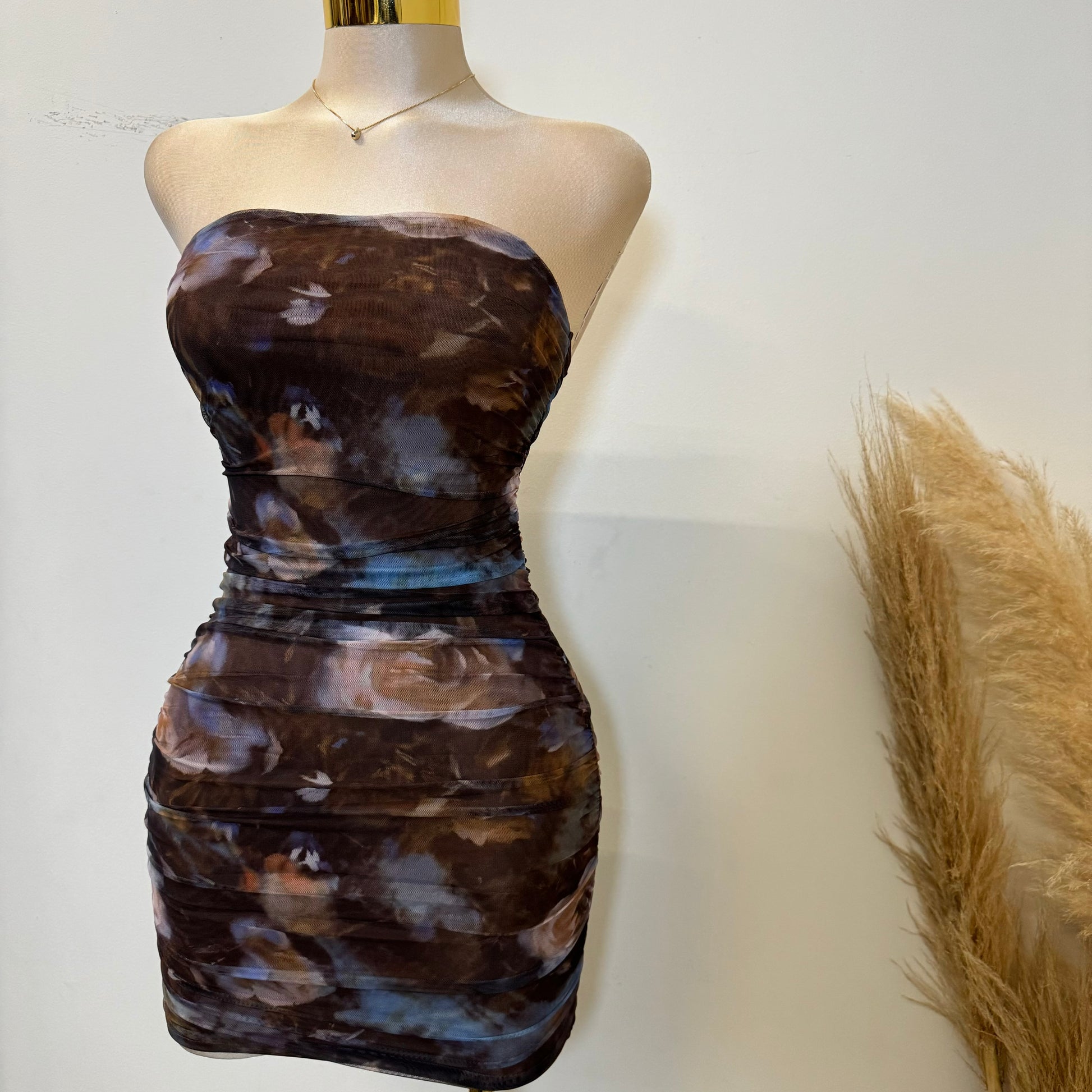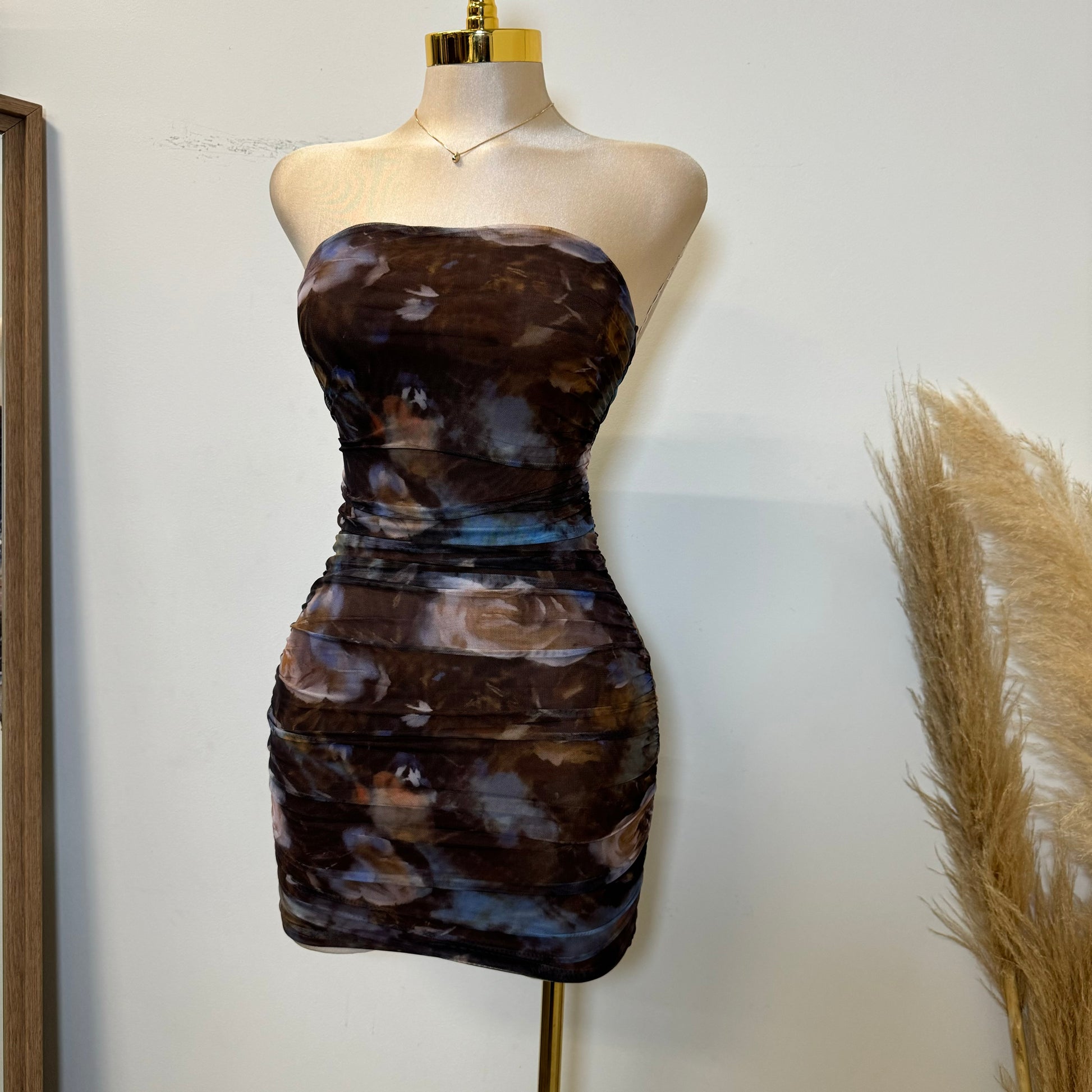 ROMANTIC FLORAL PRINT MESH TUBE MINI DRESS