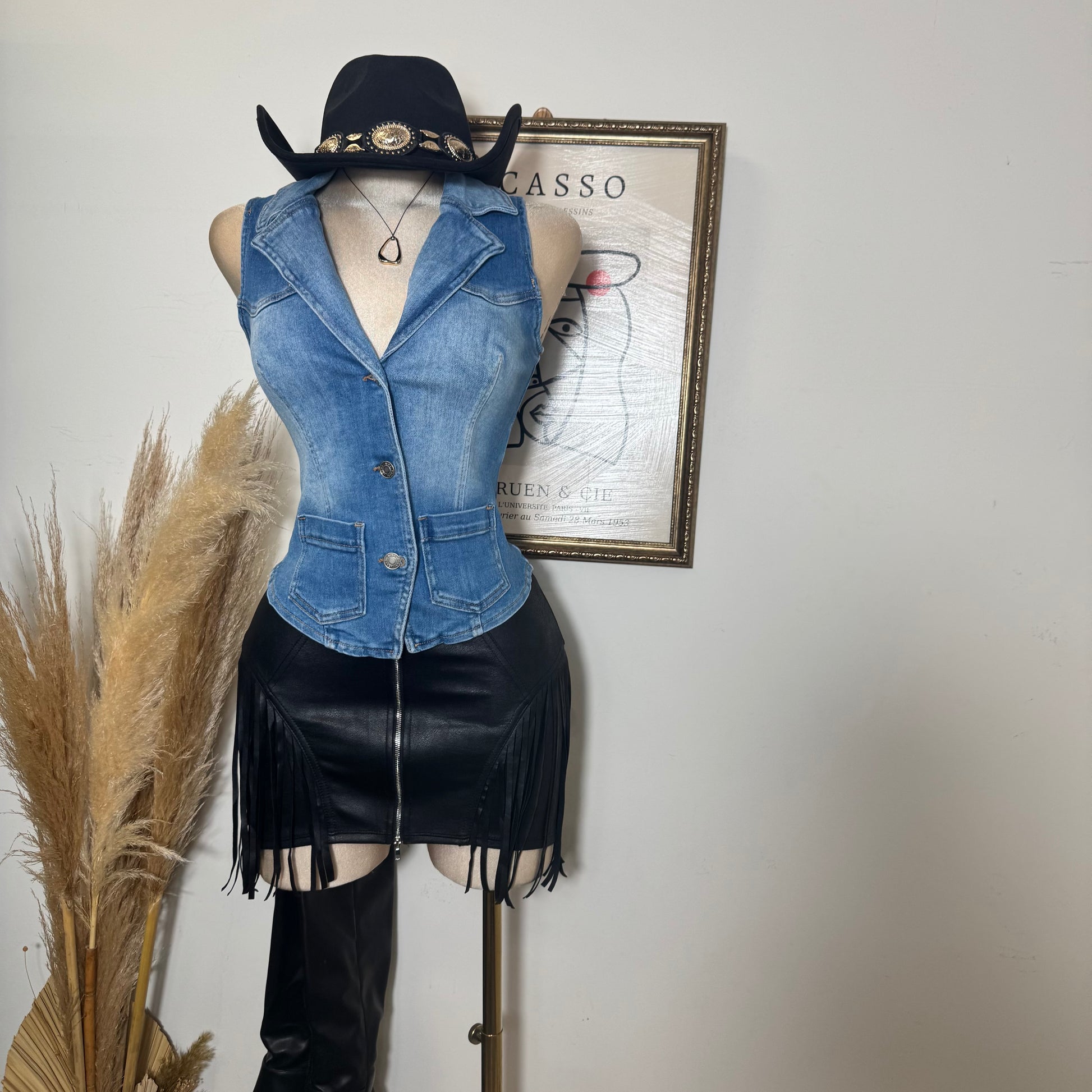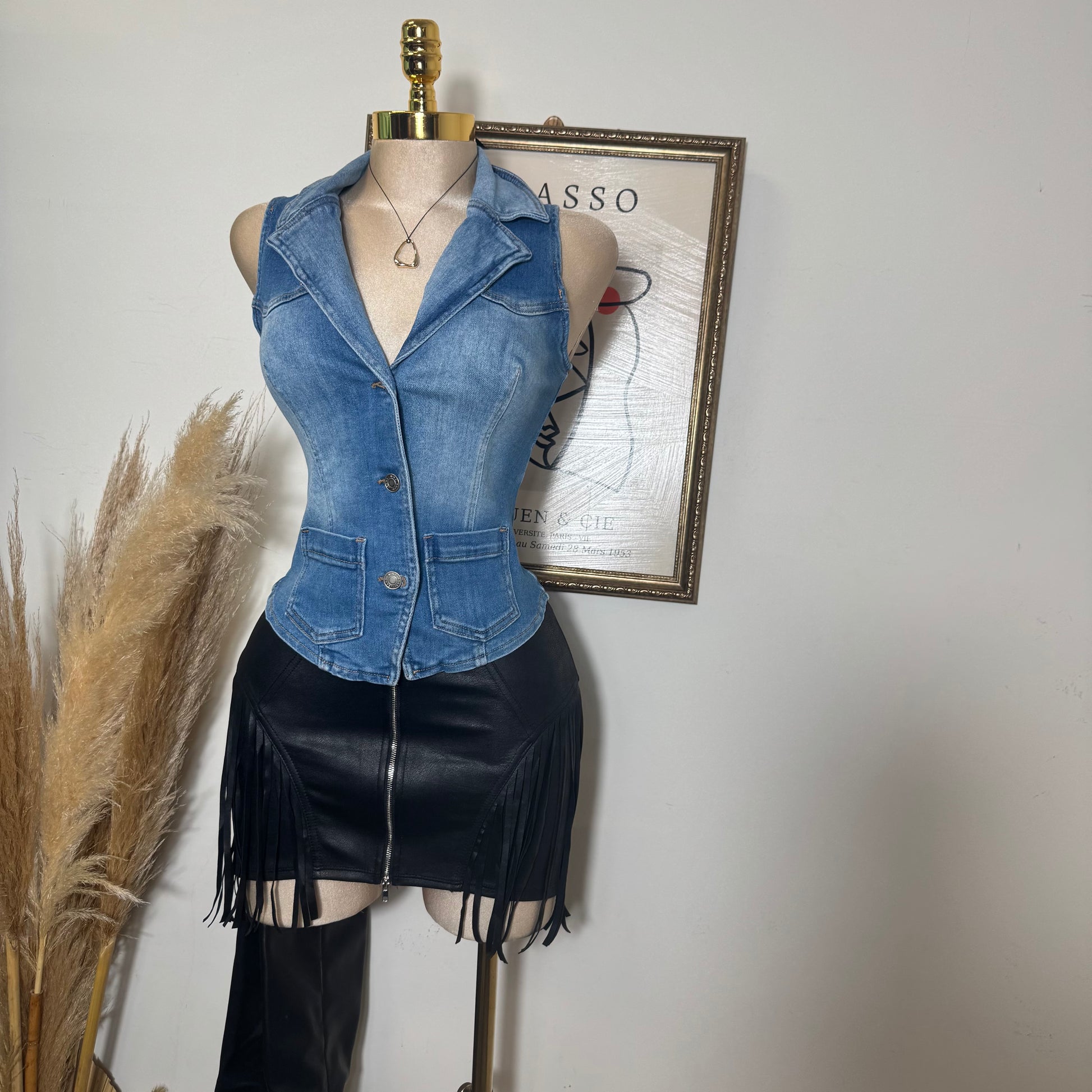 Fringe Detail Zipper Front Mini Skirt-Black