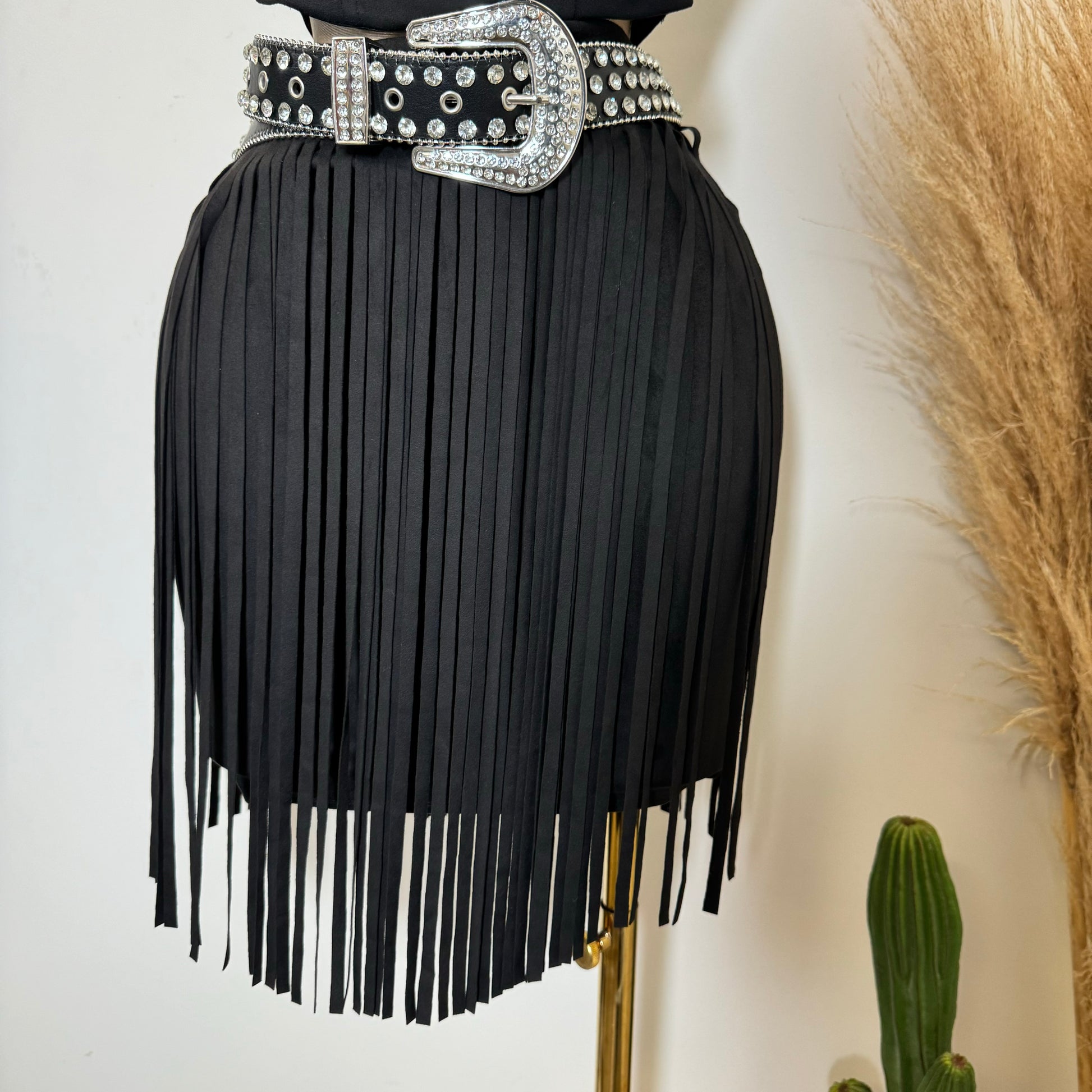 Fringe Suede Mini Skirt-Black