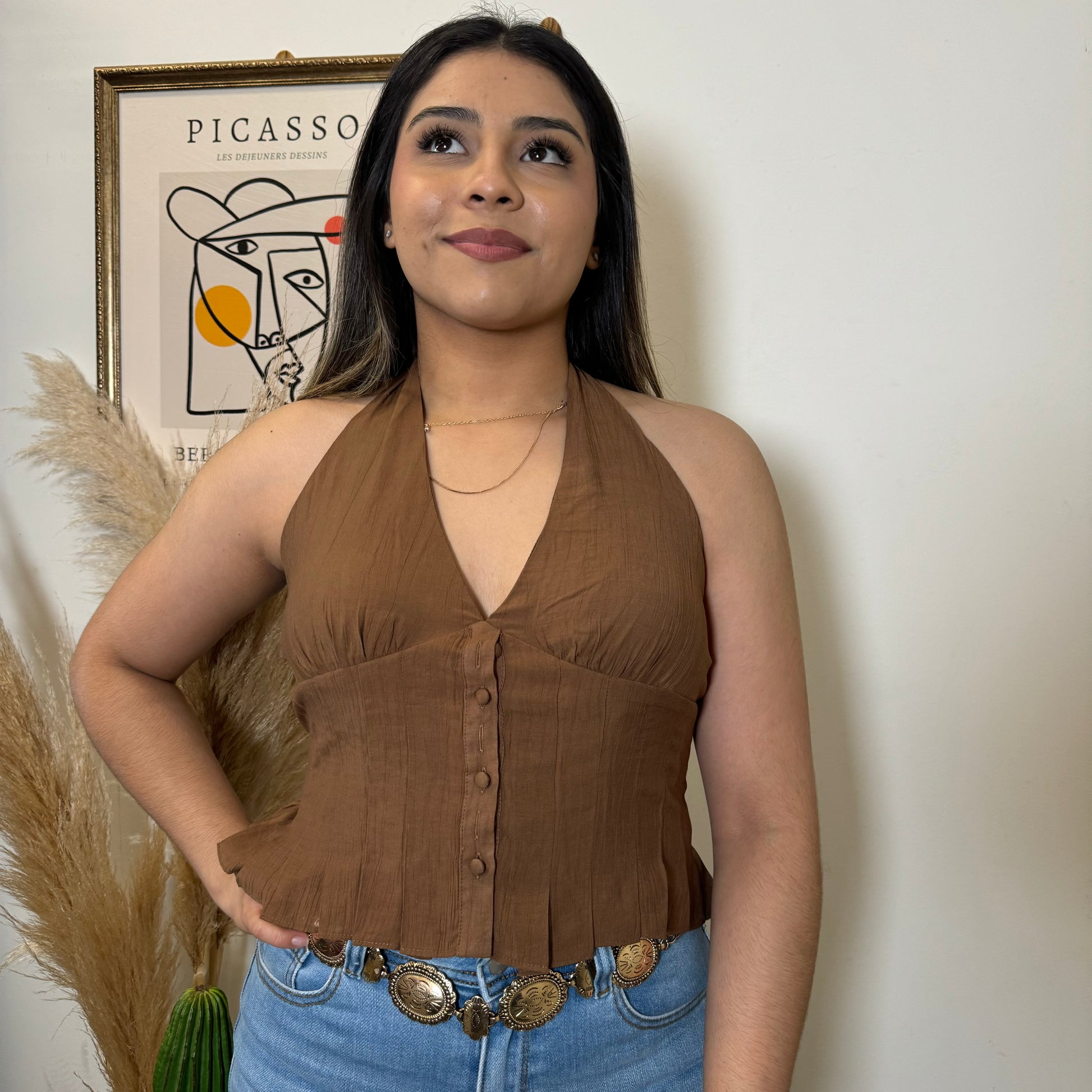 Halter button down Top-Brown
