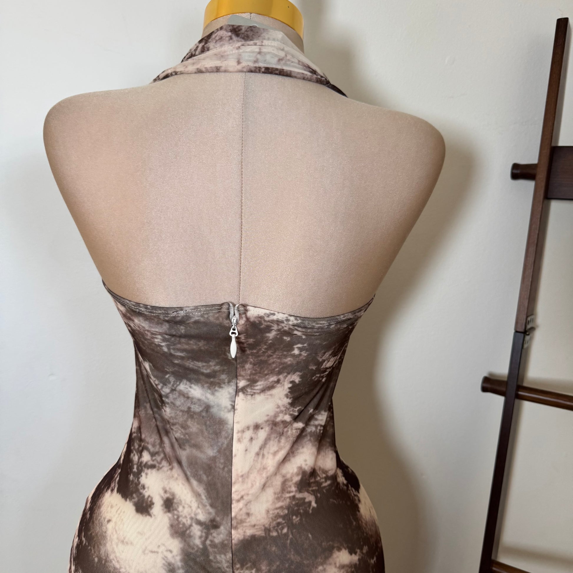 This halter corset ruched midi dress combines structured elegance with flattering design. The corset-style bodice offers support and shapes the silhouette, while the ruched detailing adds texture and visual interest. Its midi length provides a sophisticated finish, making it ideal for formal occasions or stylish evening events. Crafted to enhance your figure, this dress balances comfort with a refined, expert-tailored look.