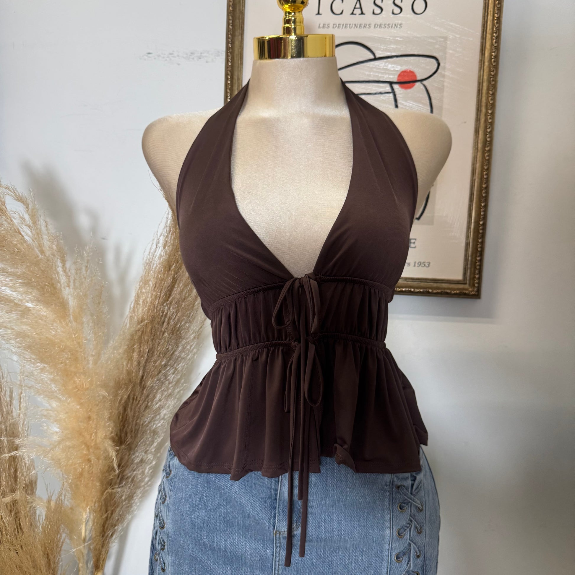 Halter Front Tie Venechia Top-Brown