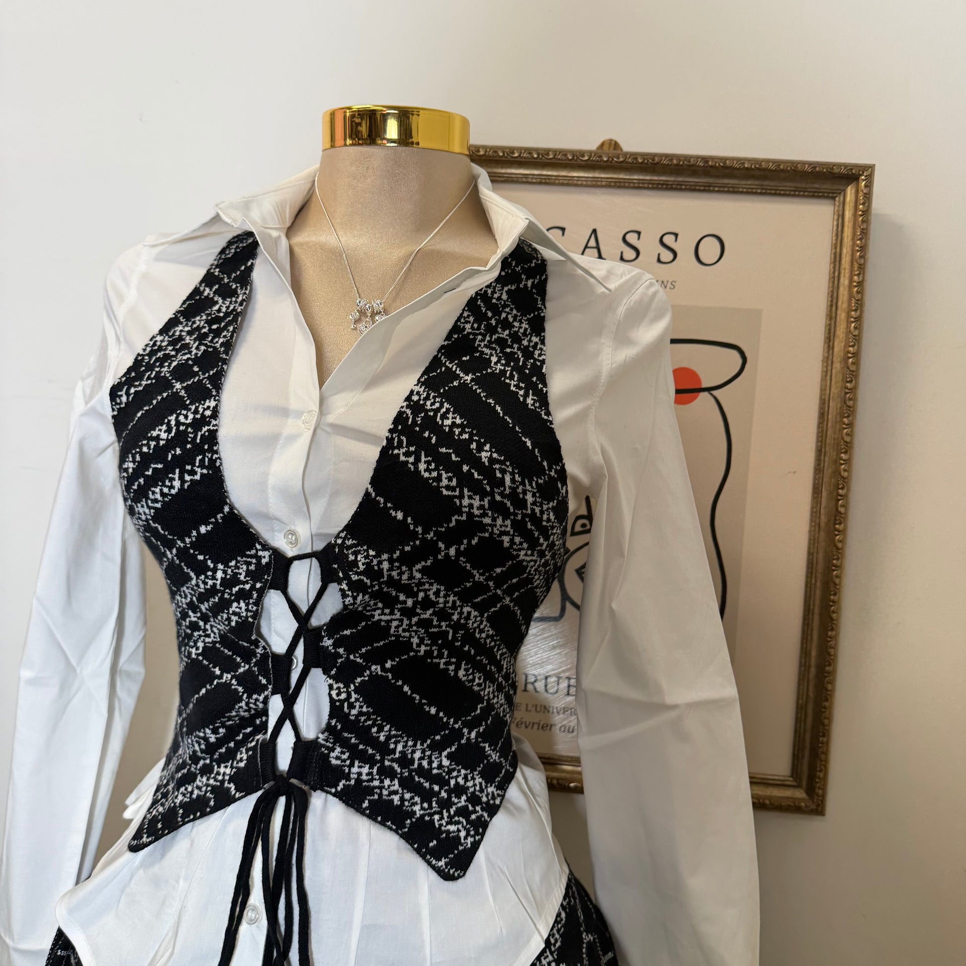 Halter Plaid Skirt Two Piece Set -Black