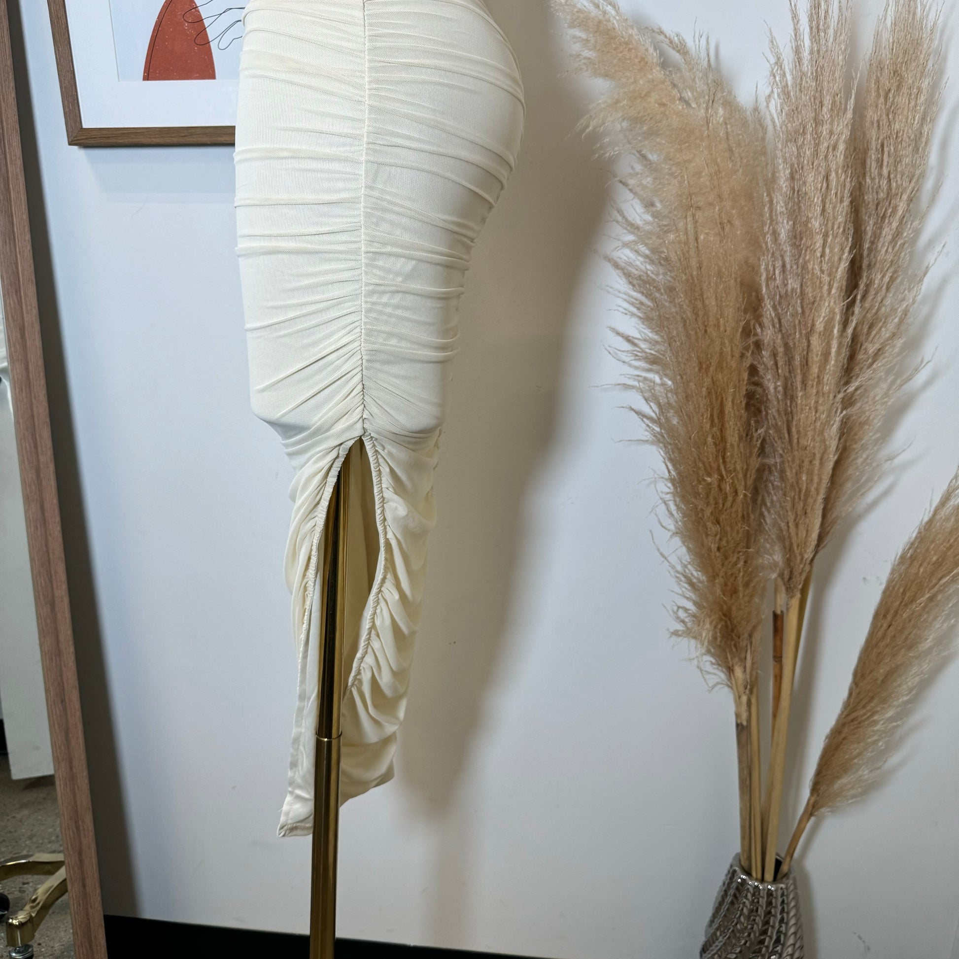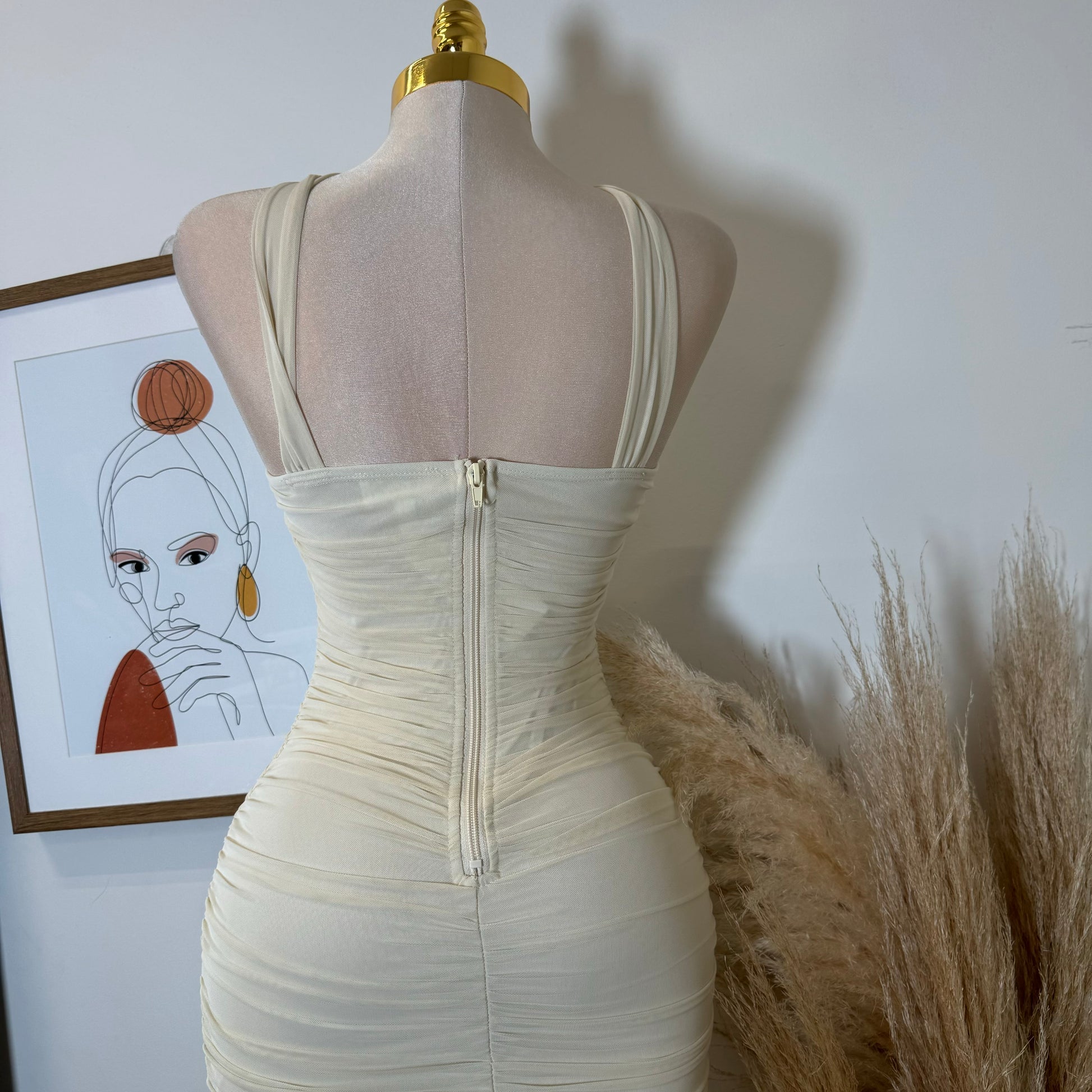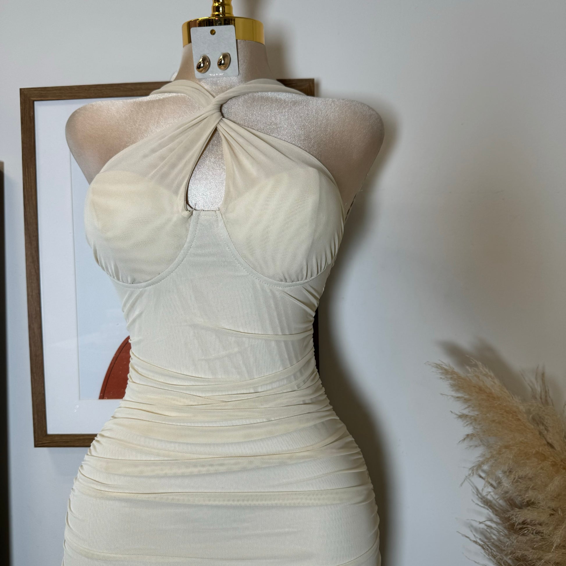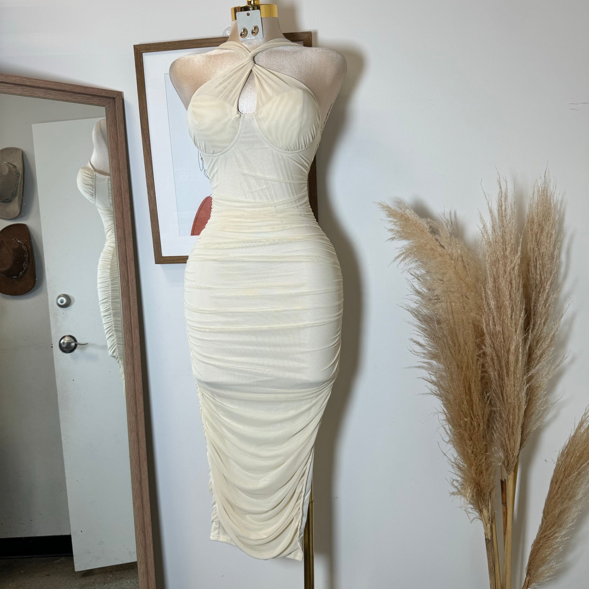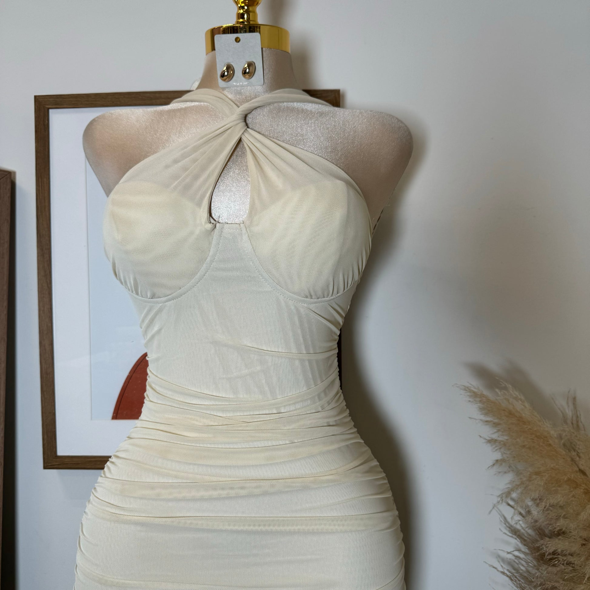 Inara Mesh Twist Halter Neck Midi Dress-Ivory1