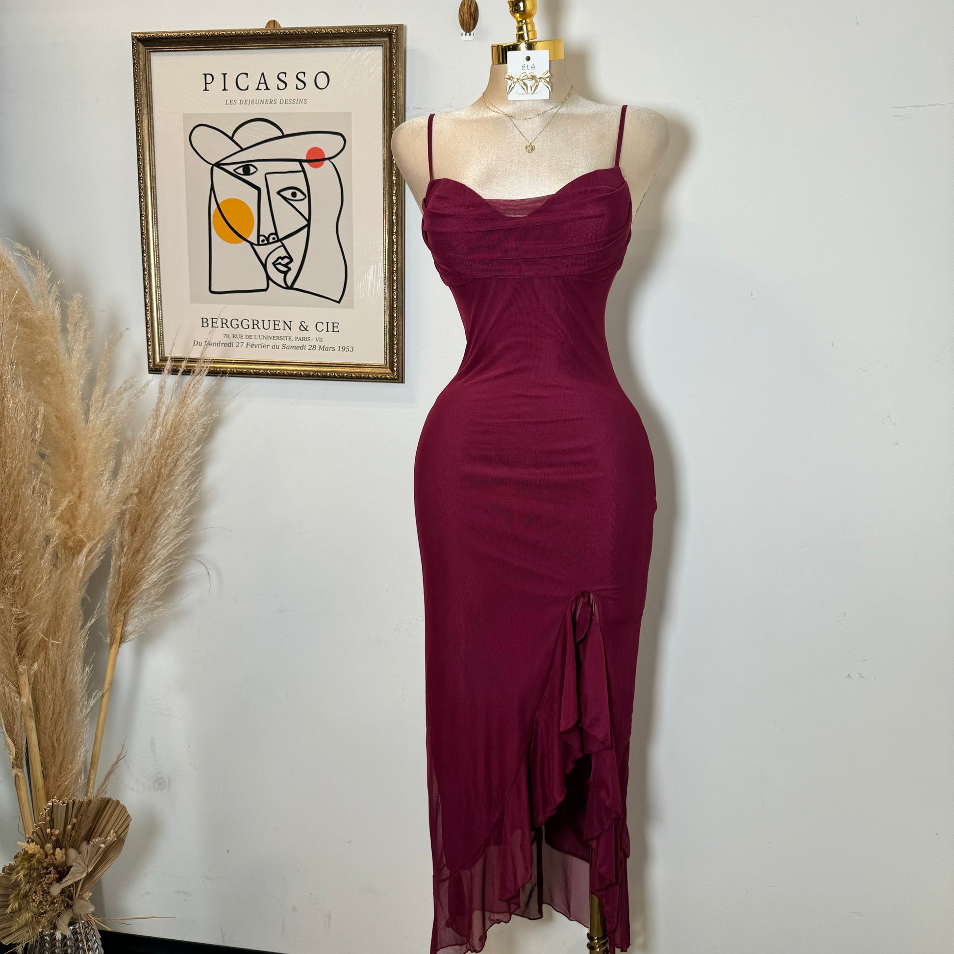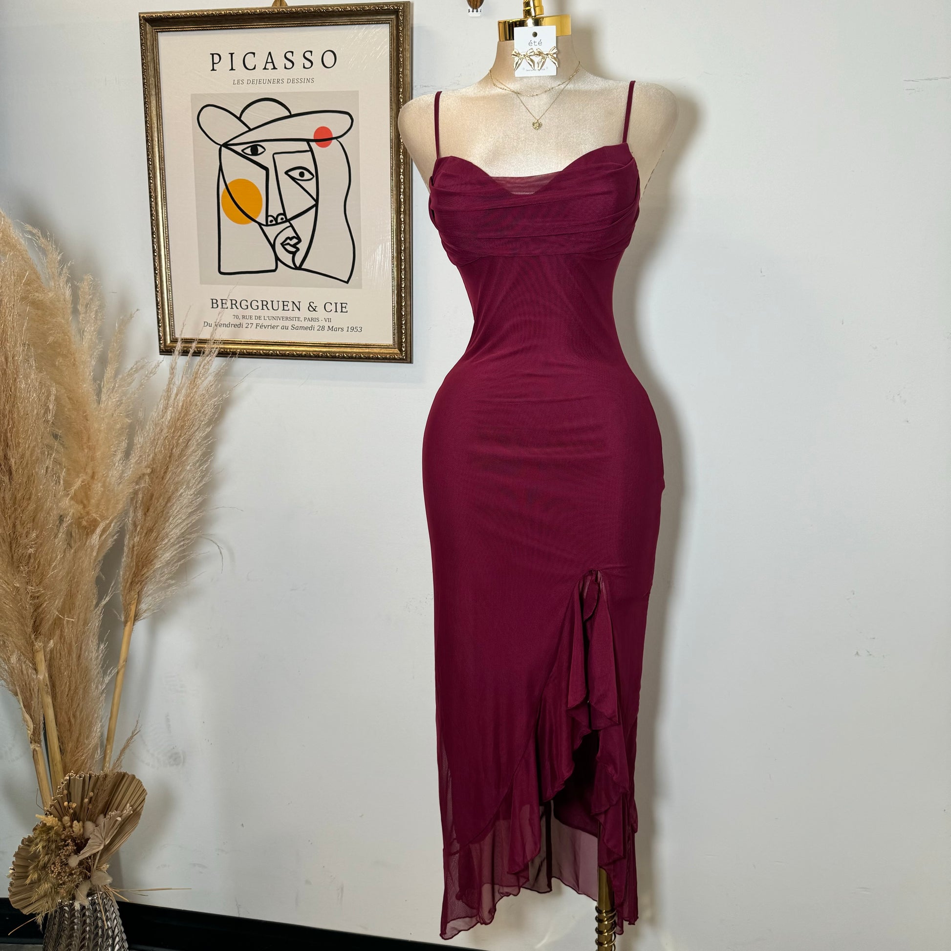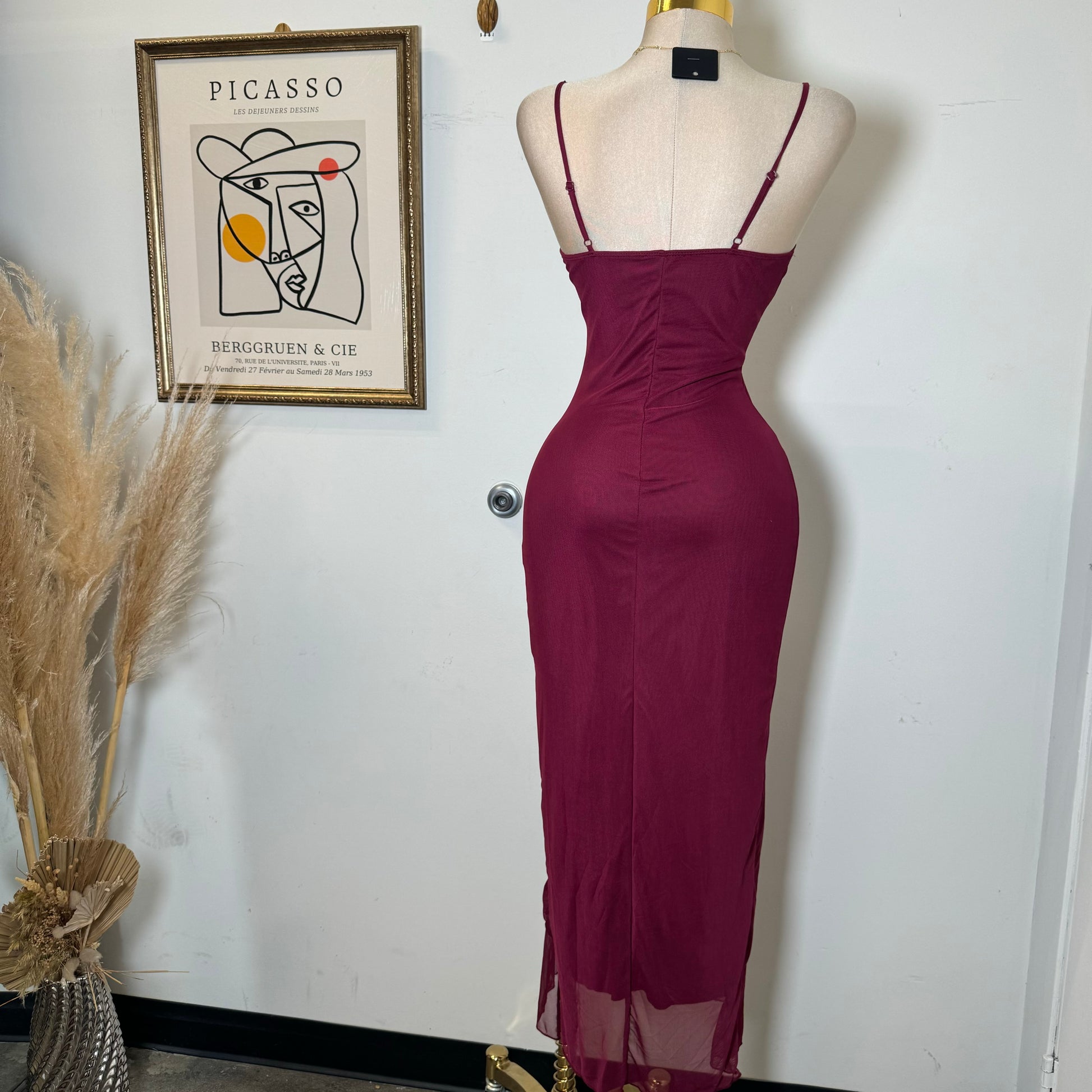 Karil Mesh Dress-Burgundy