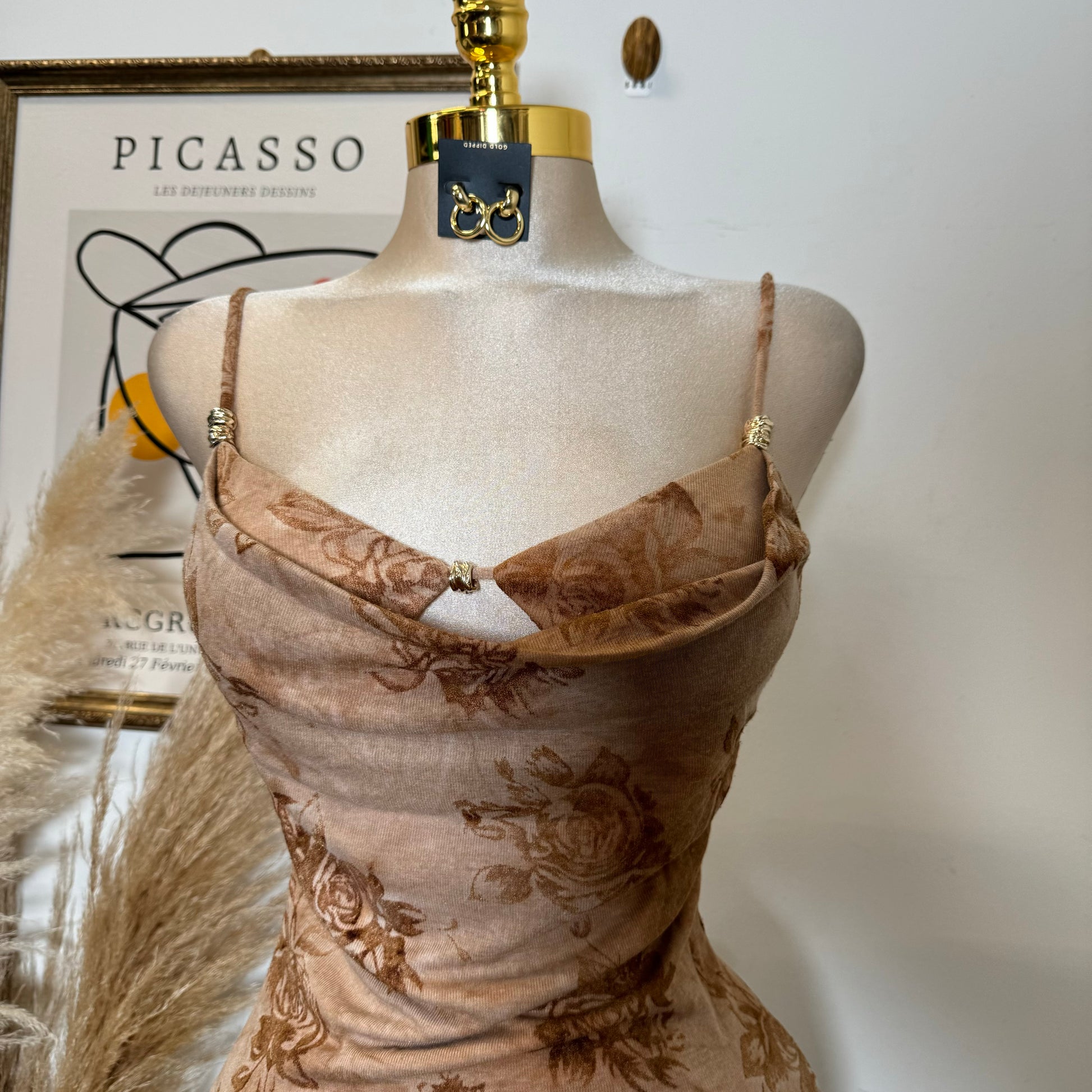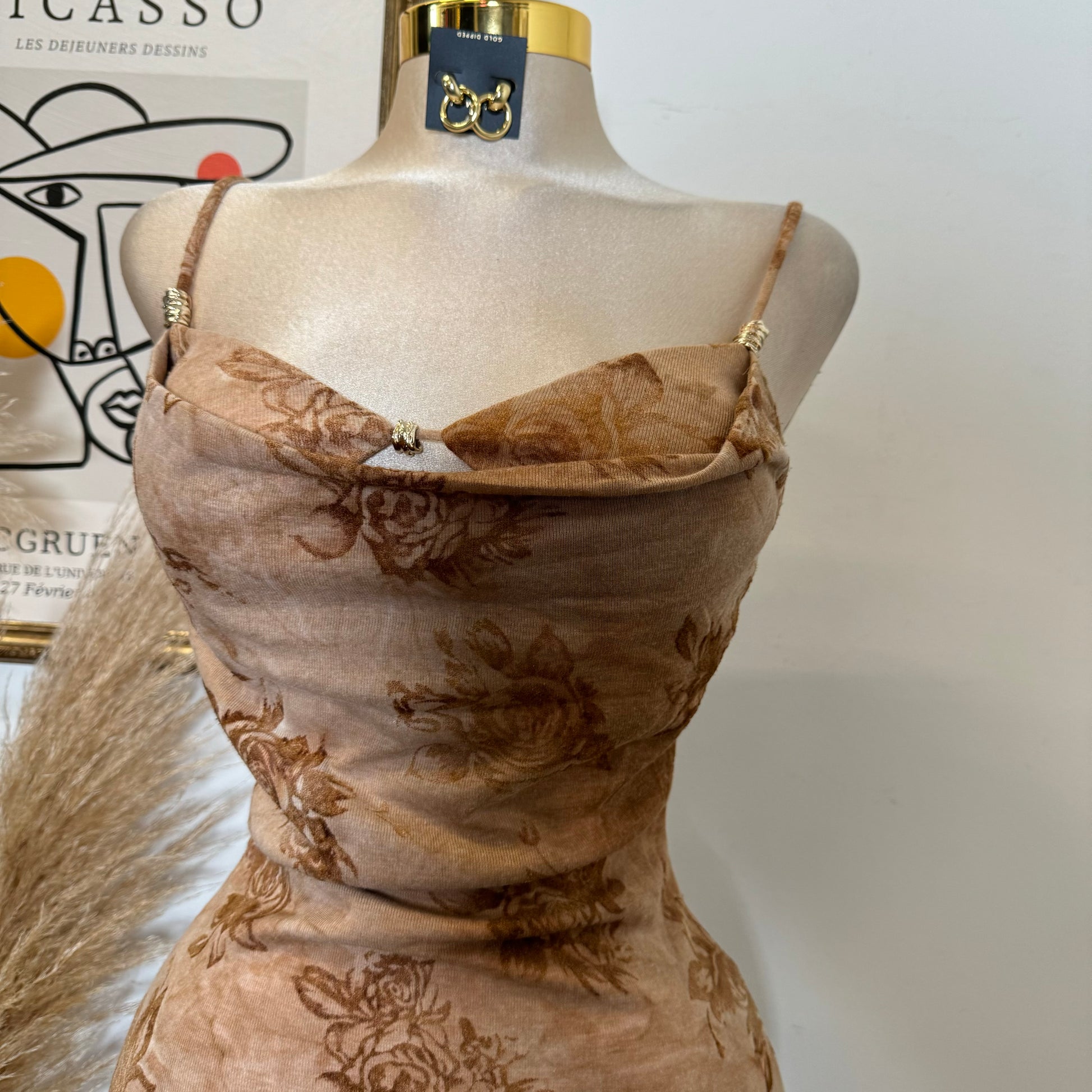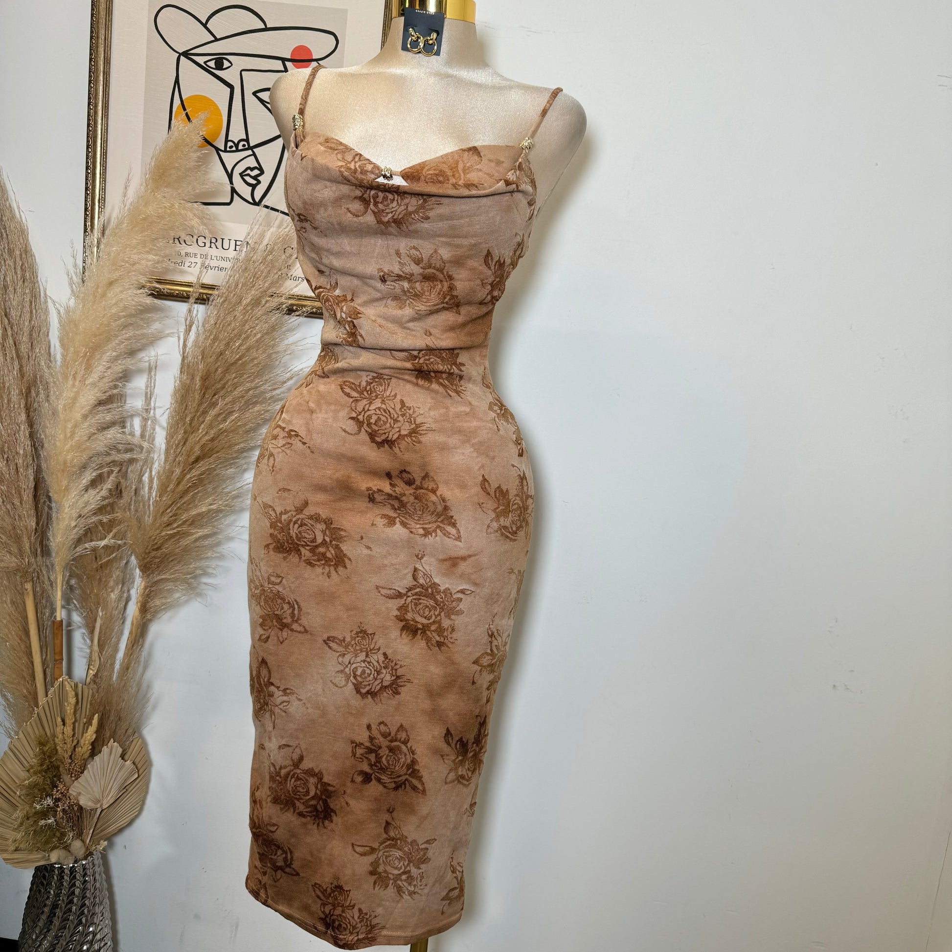 BRUSHED KNIT VELVET FLOCKING MIDI DRESS