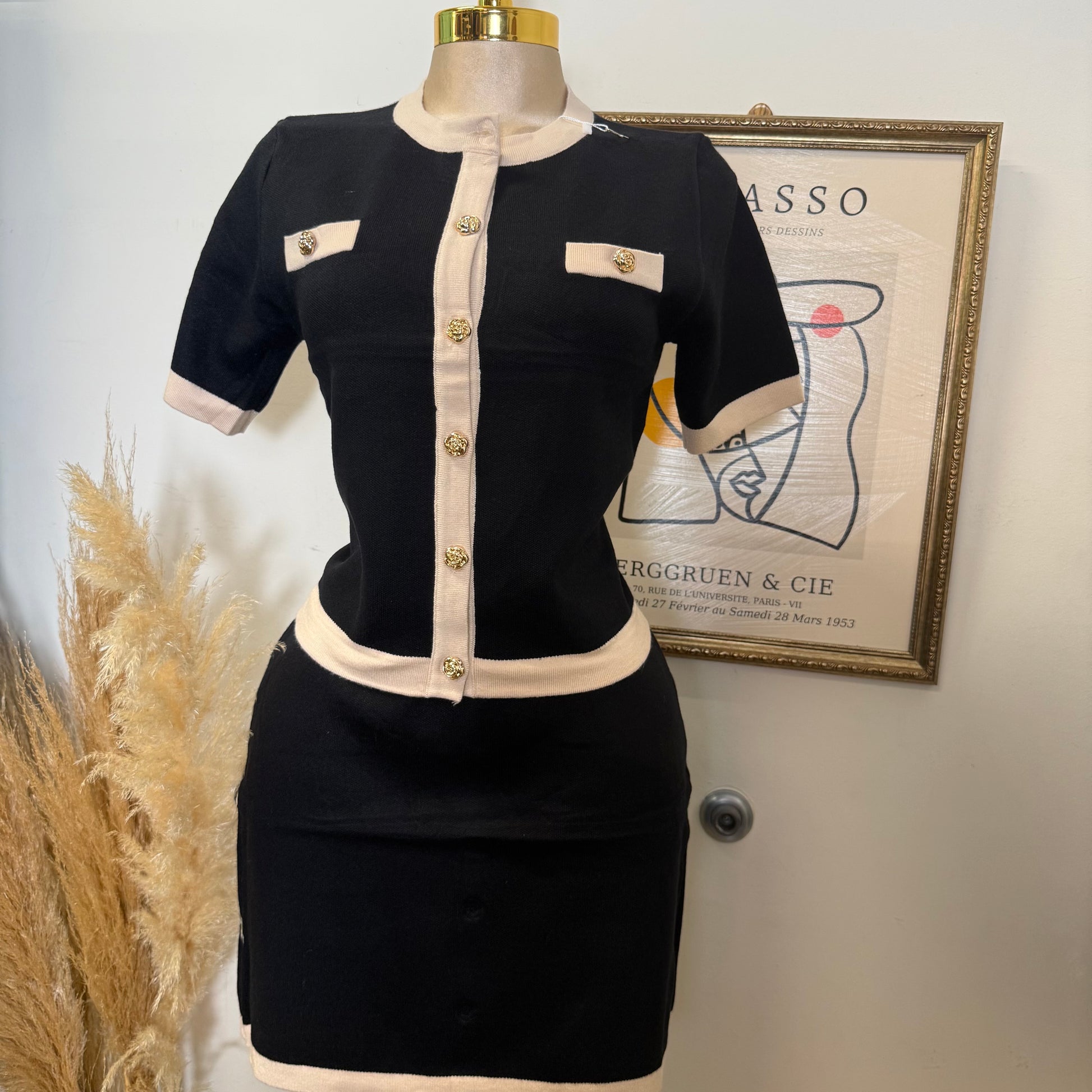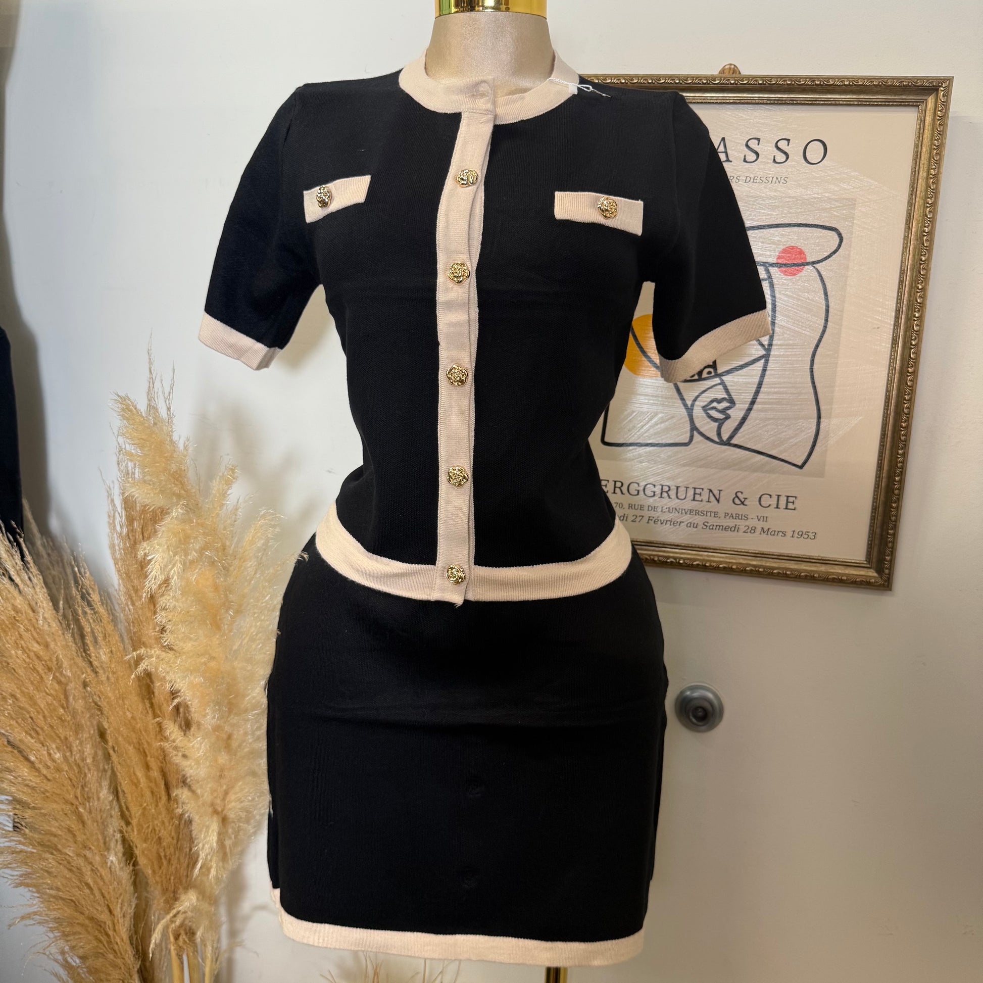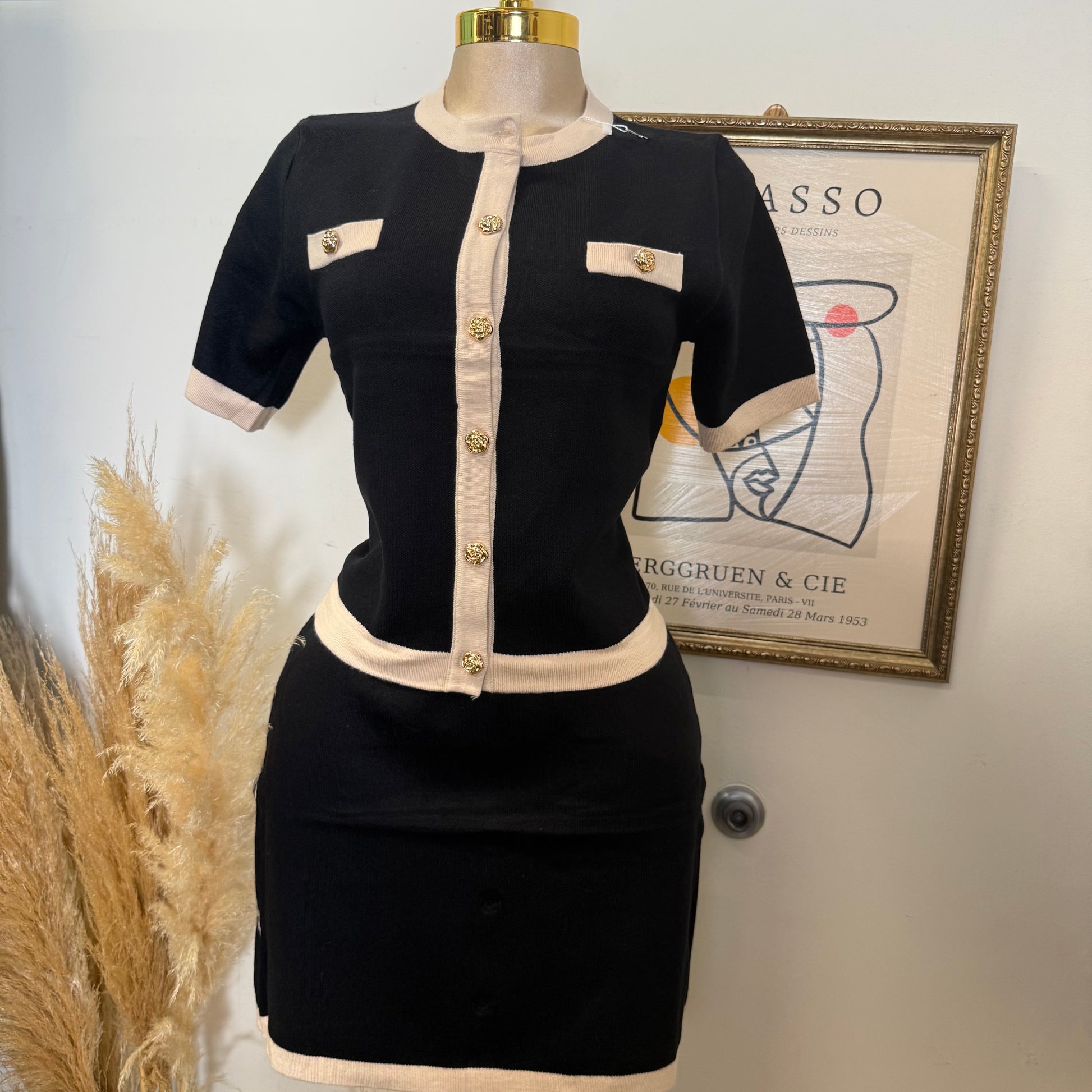 Knitted Skirt Set-Black