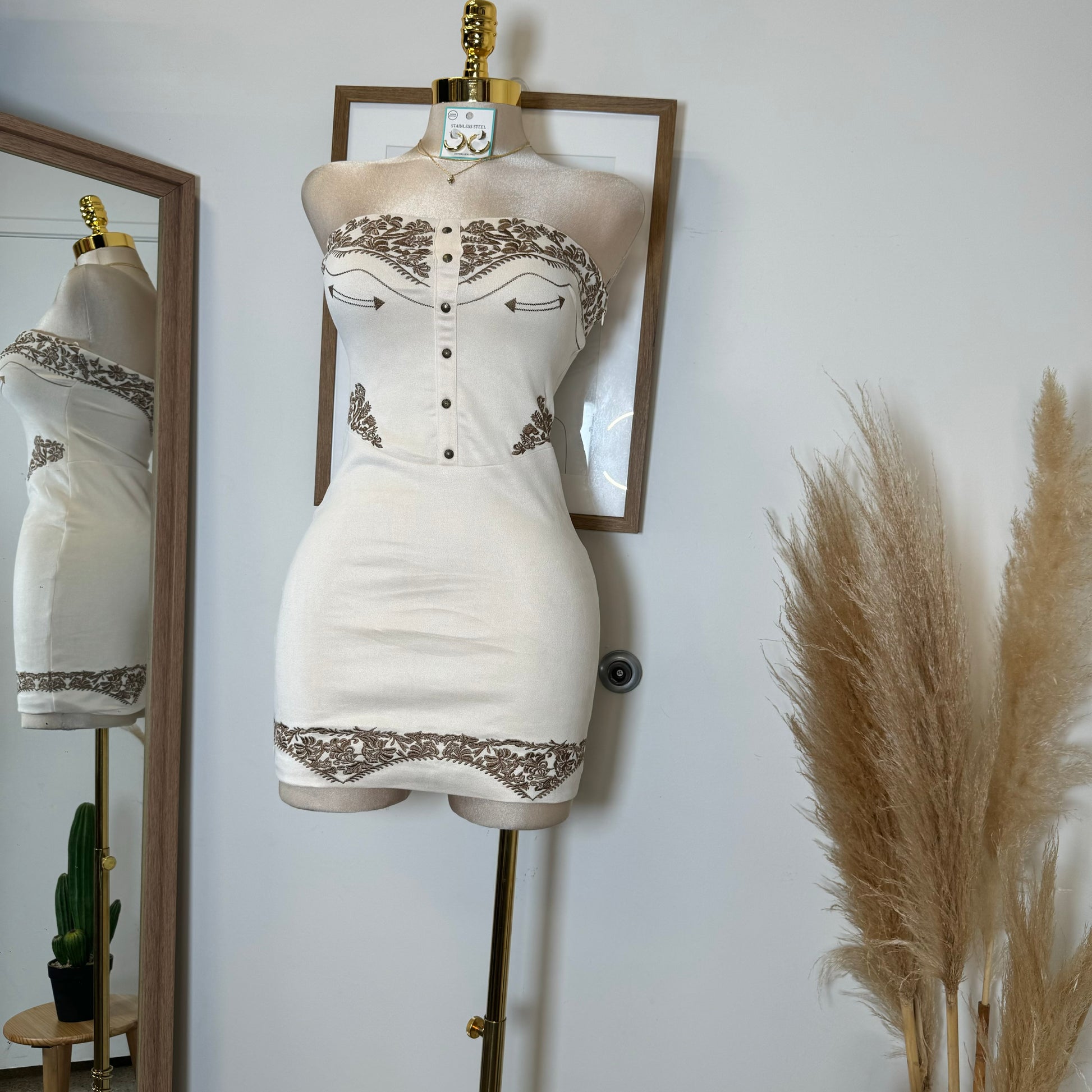 -Laredo Embroided Suede Mini Dress Strapless pull on