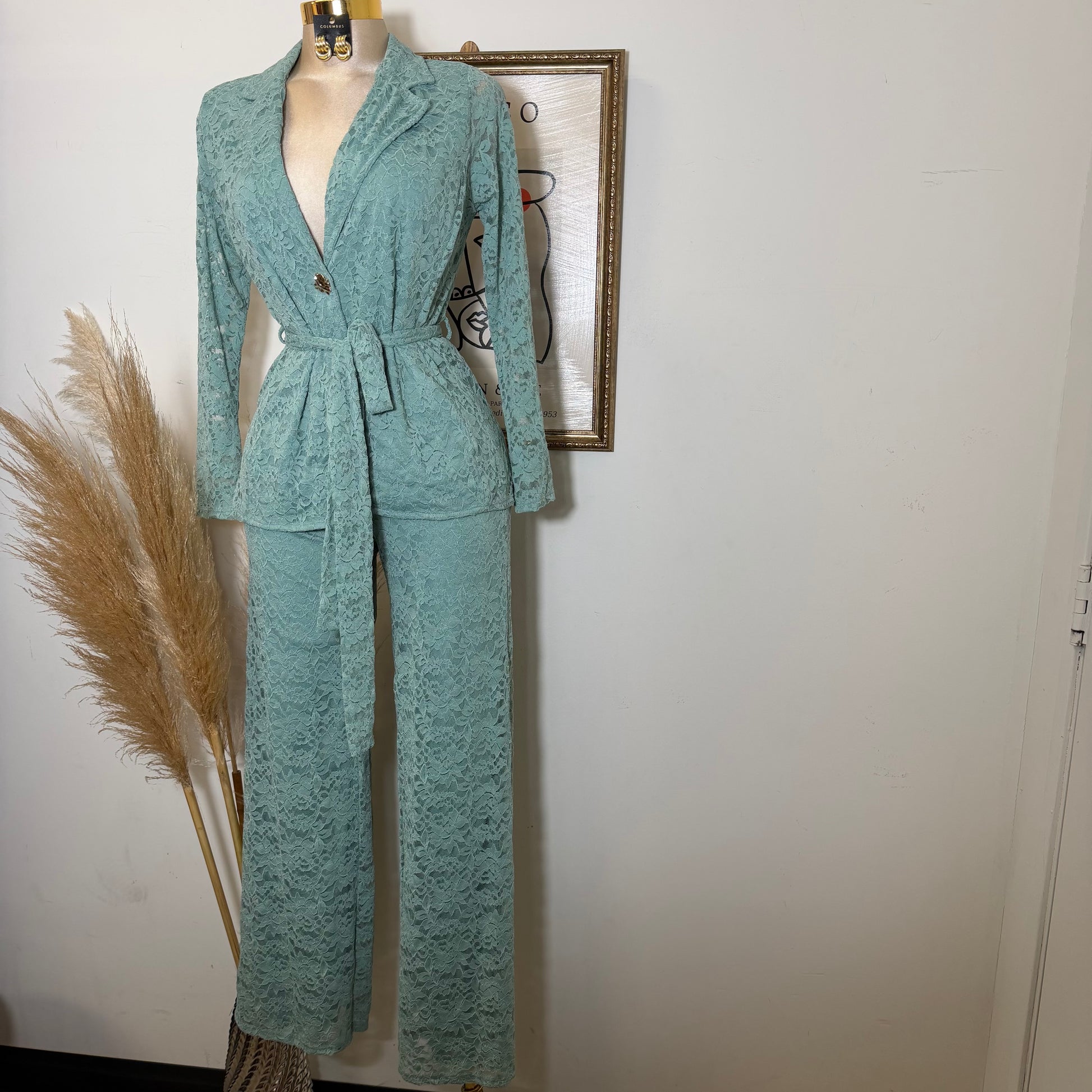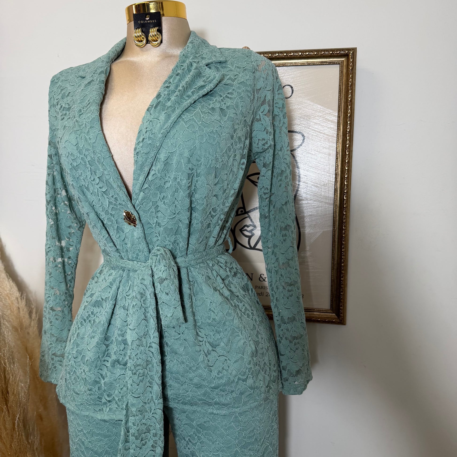 Lace blazer Pant Set -Sage Green
