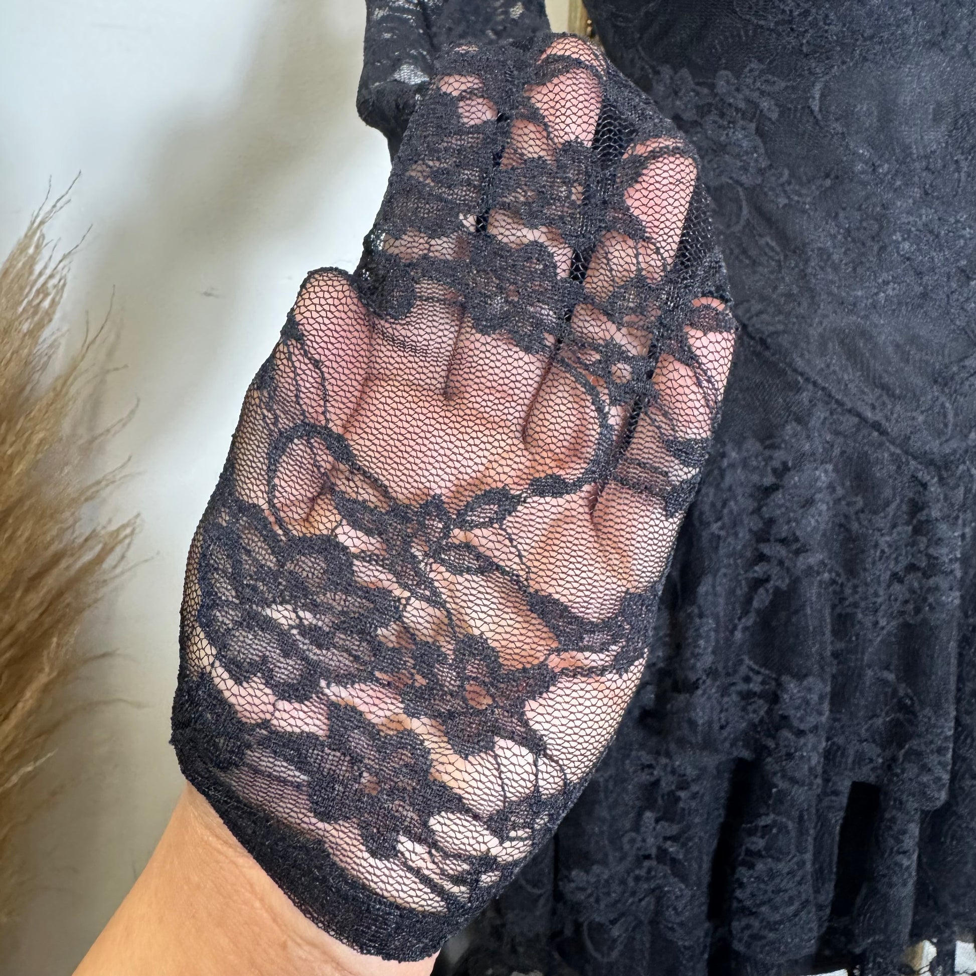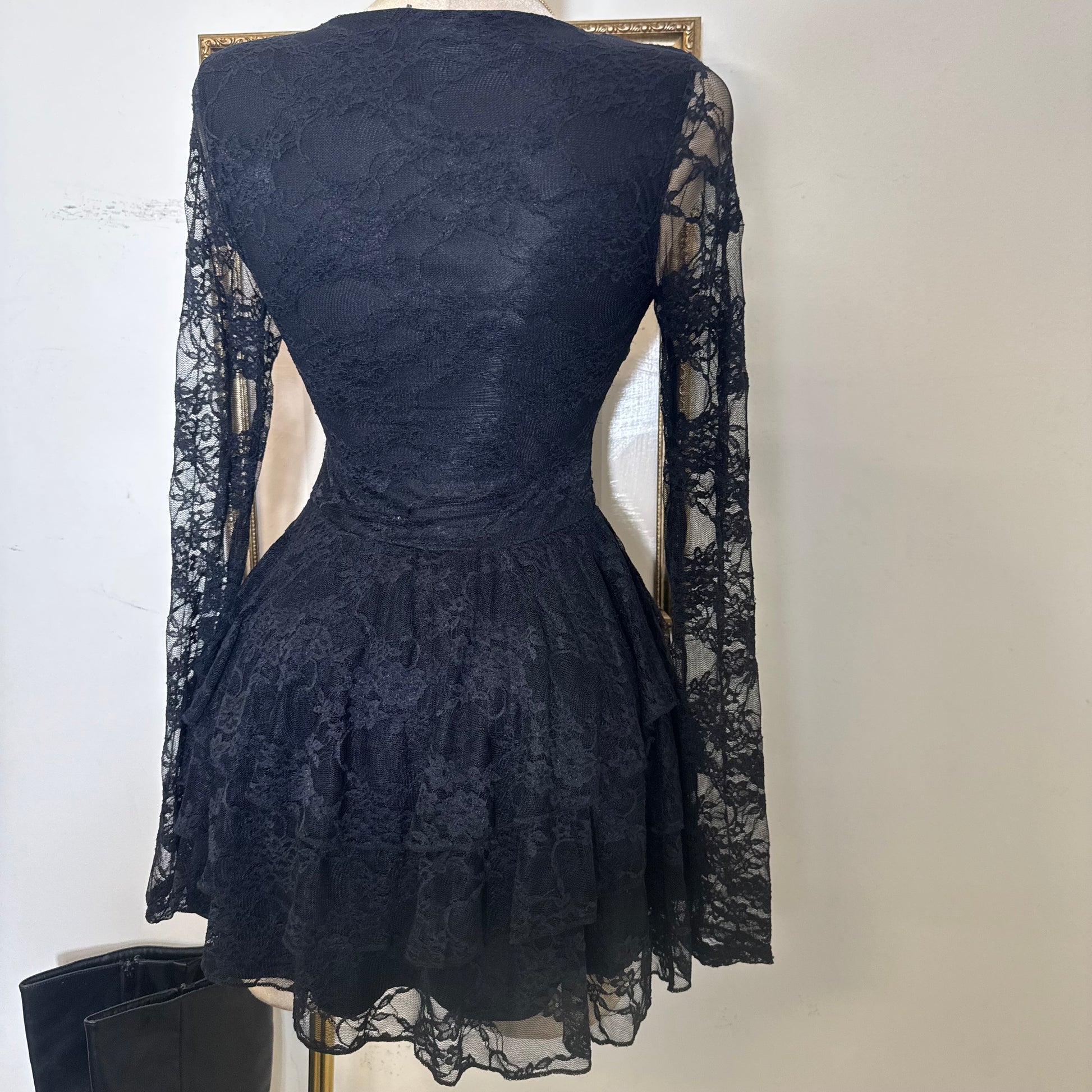 Lace Long Sleeve Ruffle Layered Mini Dress-Black