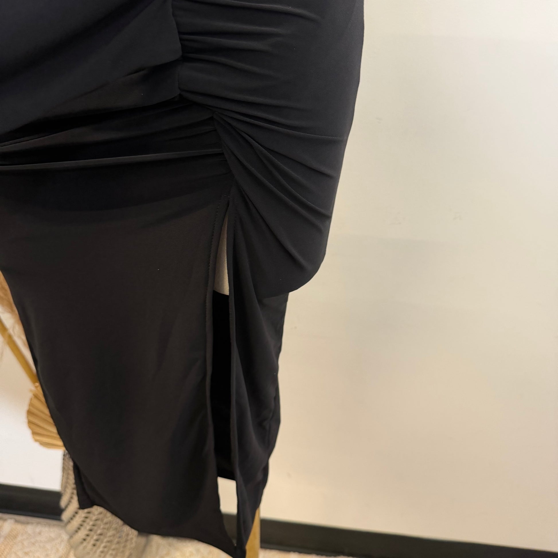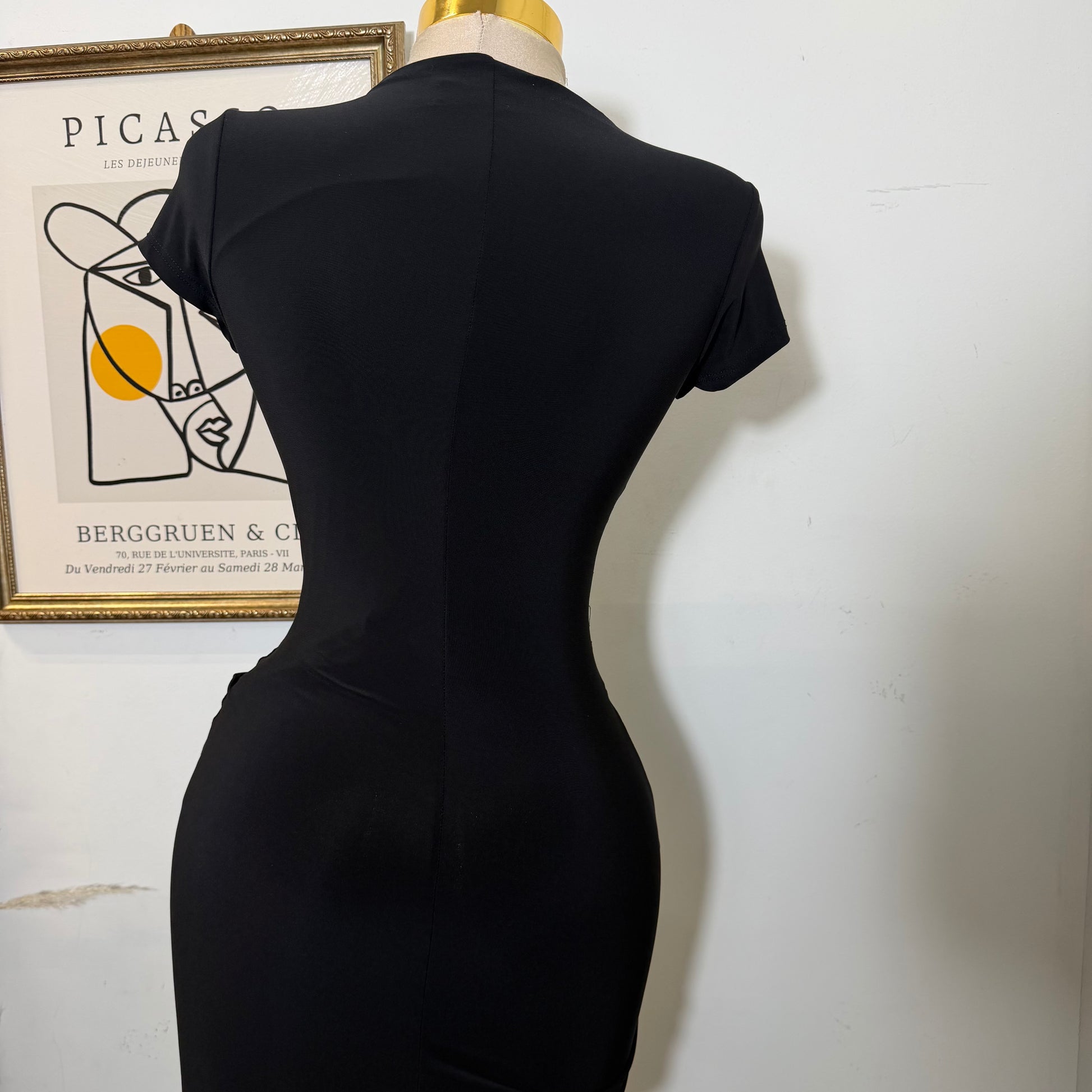 Lace Waist Contrast Midi Dress-Black
