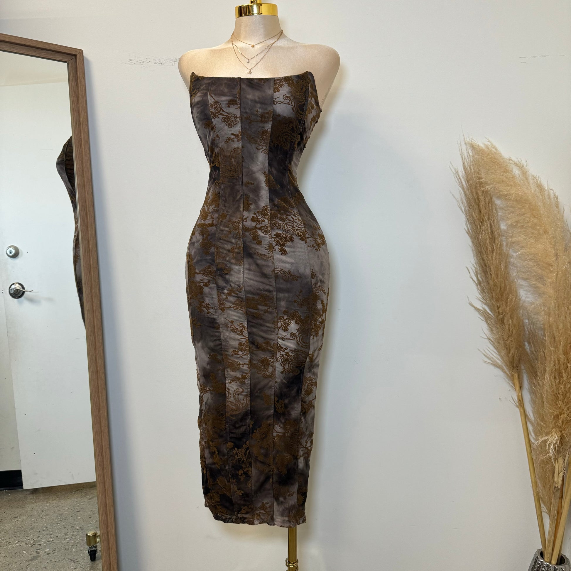 Leyna Strapless Midi Dress-Brown