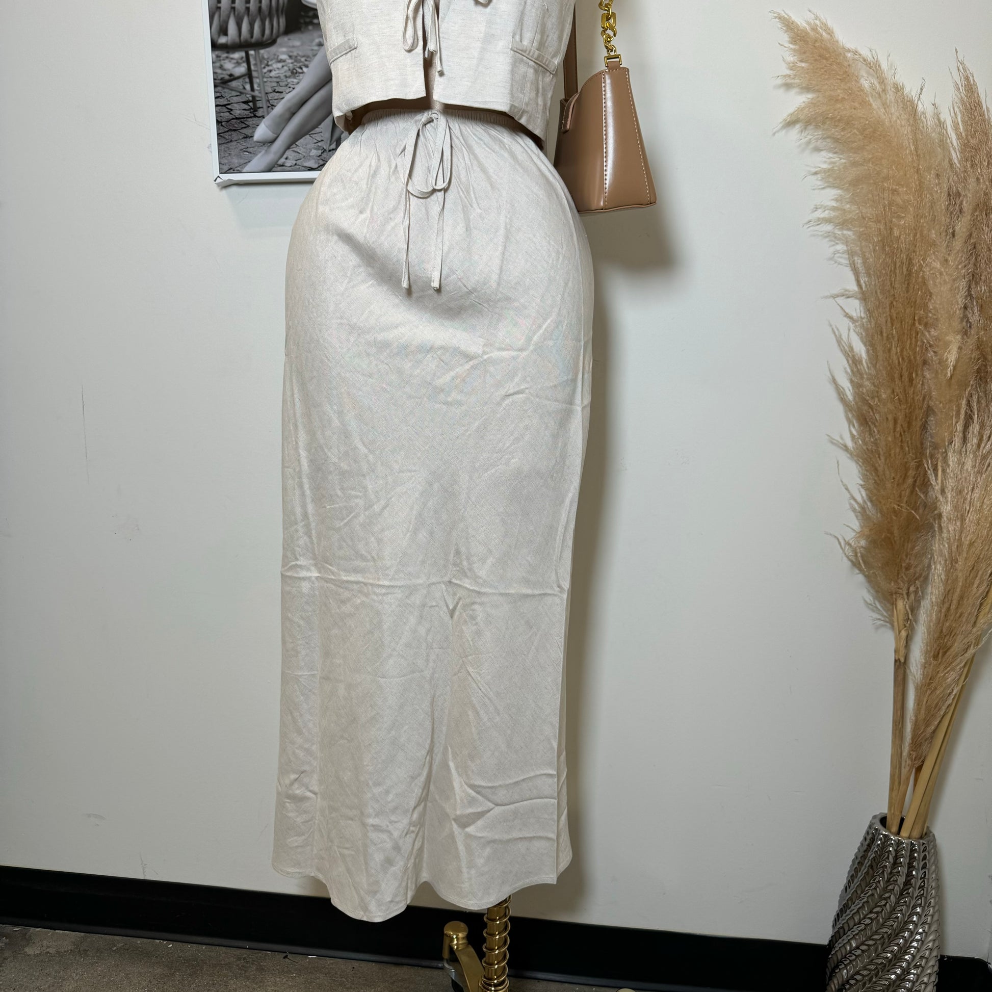 Linen Maxi Skirt Set-Beige