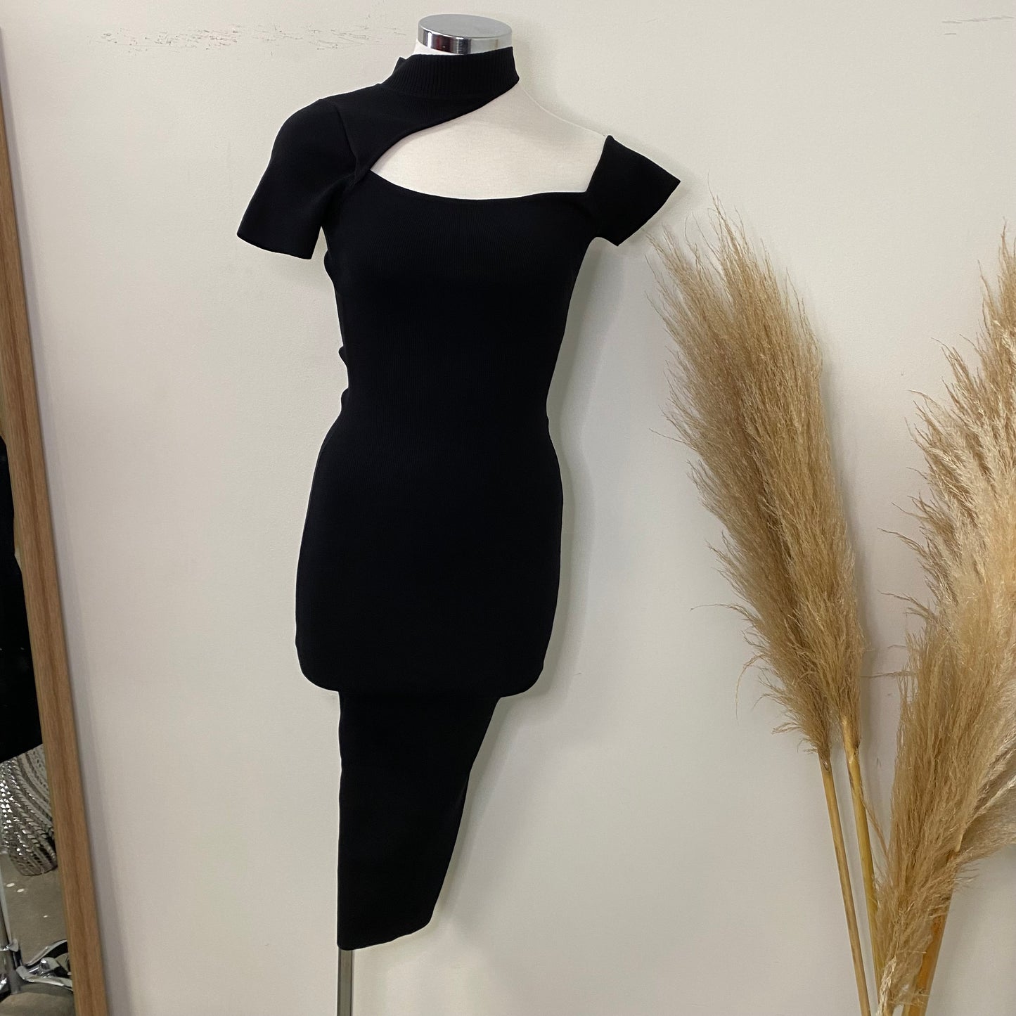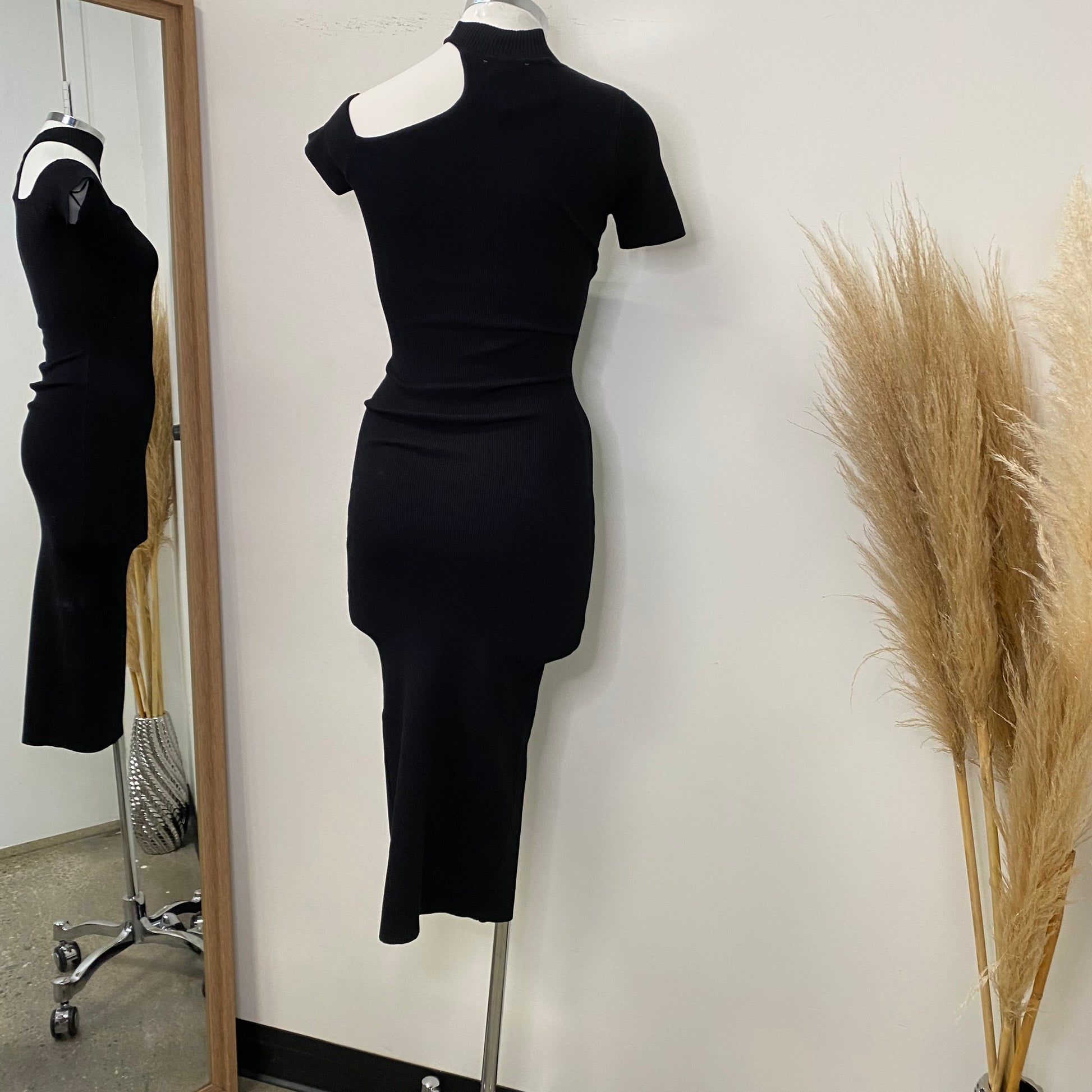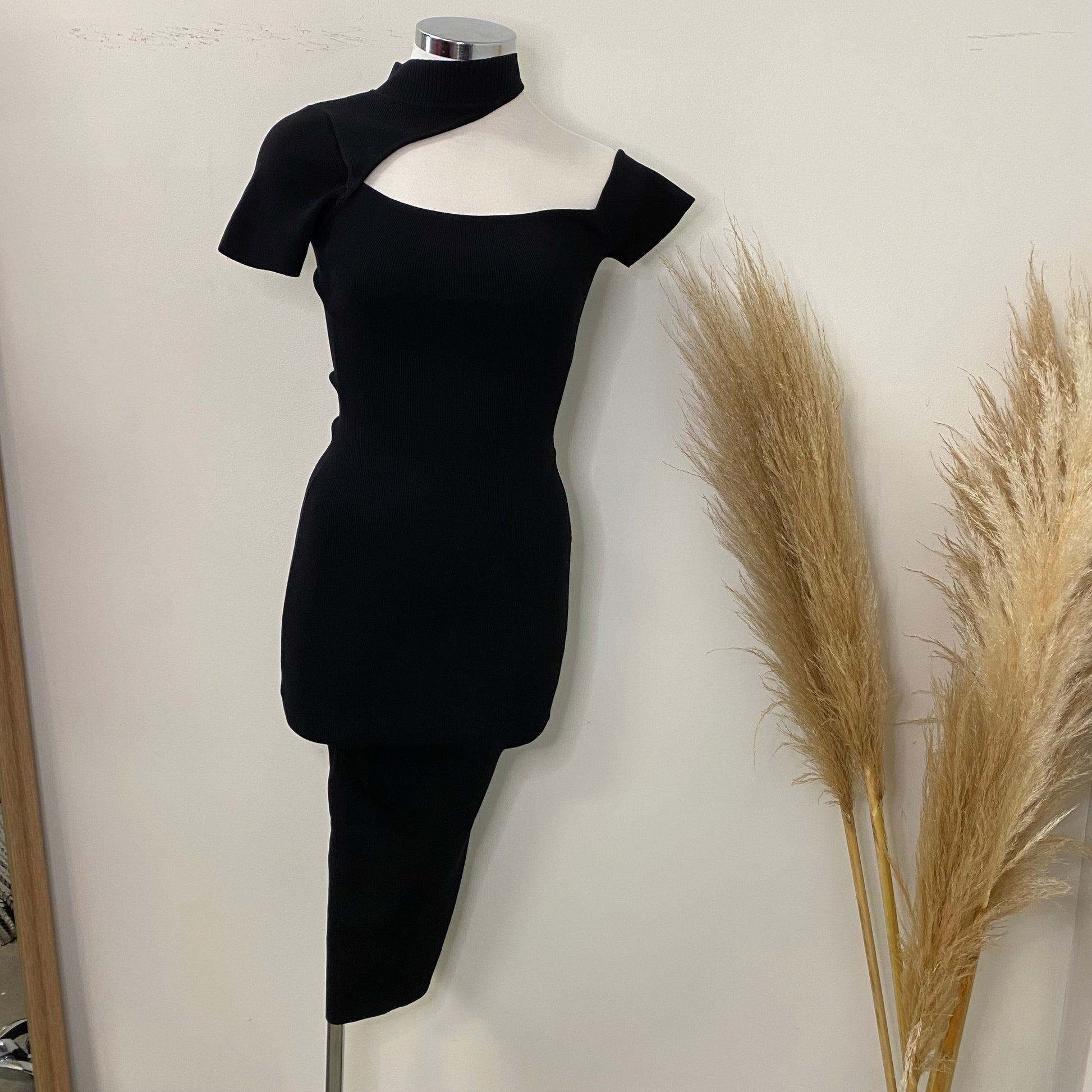 -Turtle Neck one shoulder Short Sleeve Midi Dress
