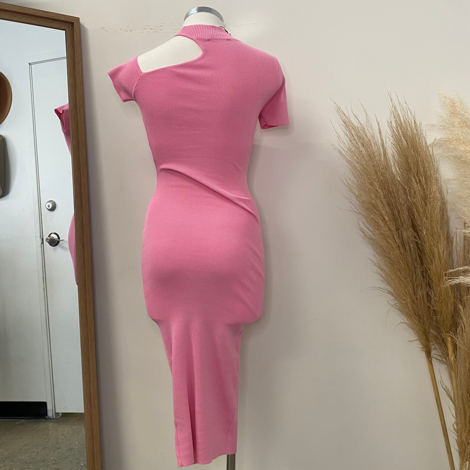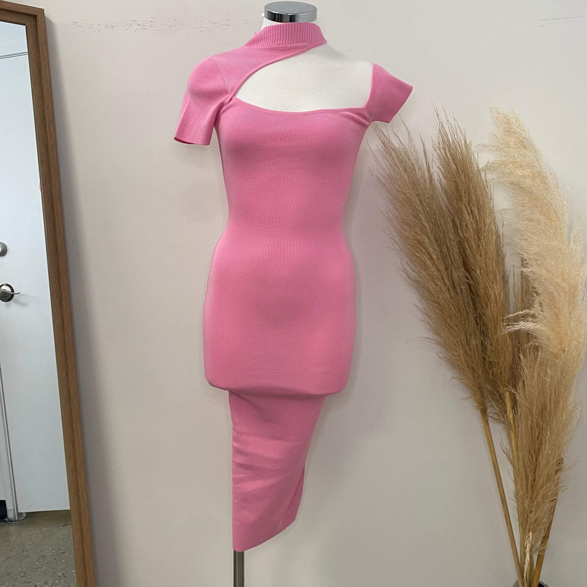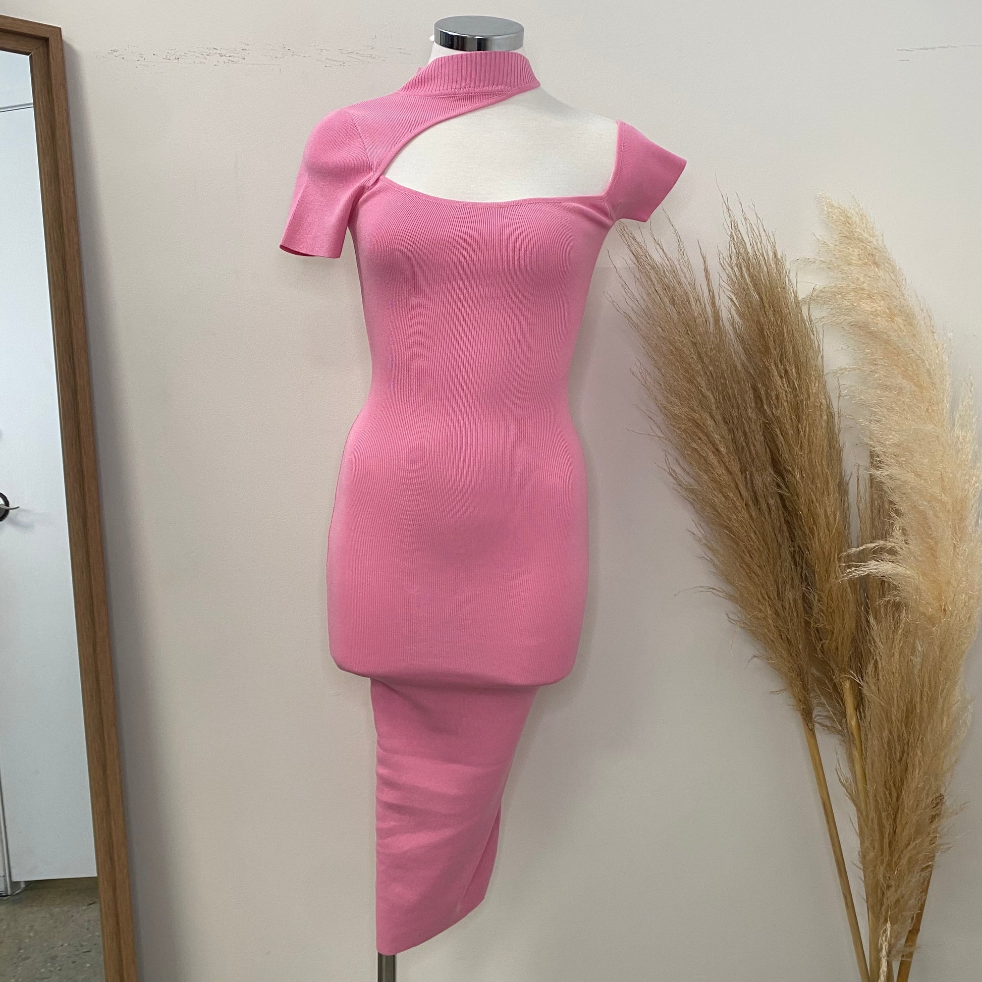 Turtle Neck one shoulder Short Sleeve Midi Dress