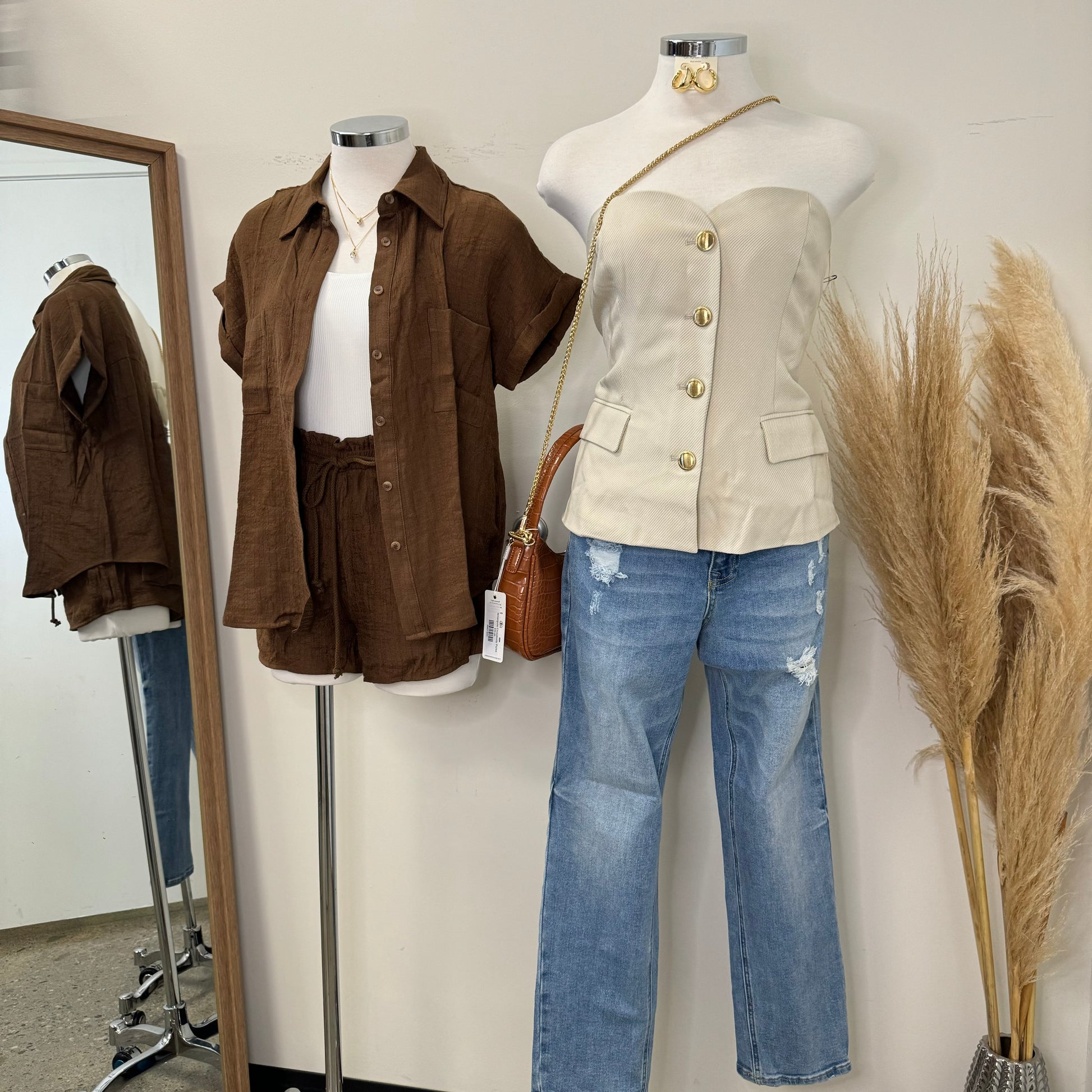 -Textured Twill Button Down Bustier Corset Top