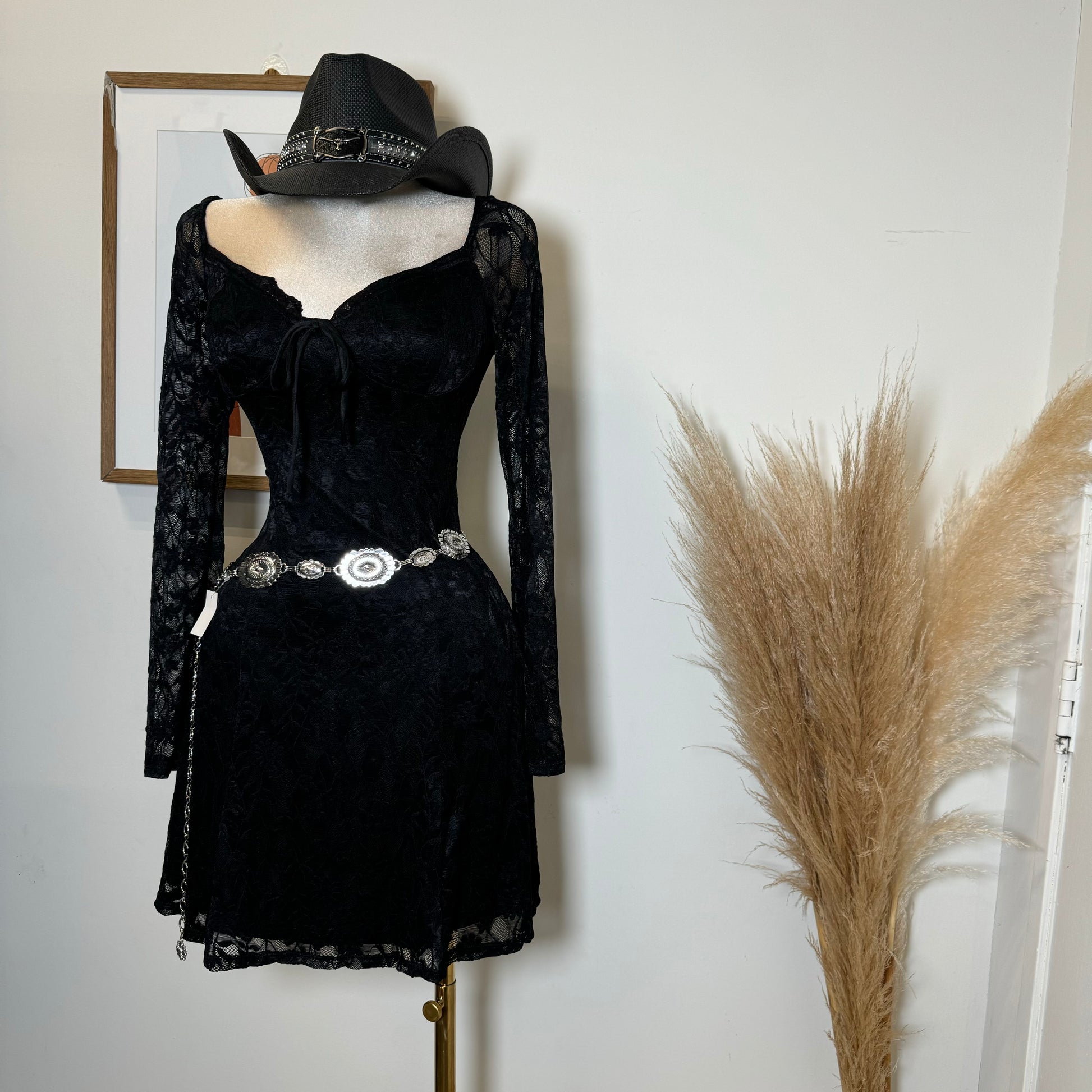 Long Sleeve Lace Dress-Black