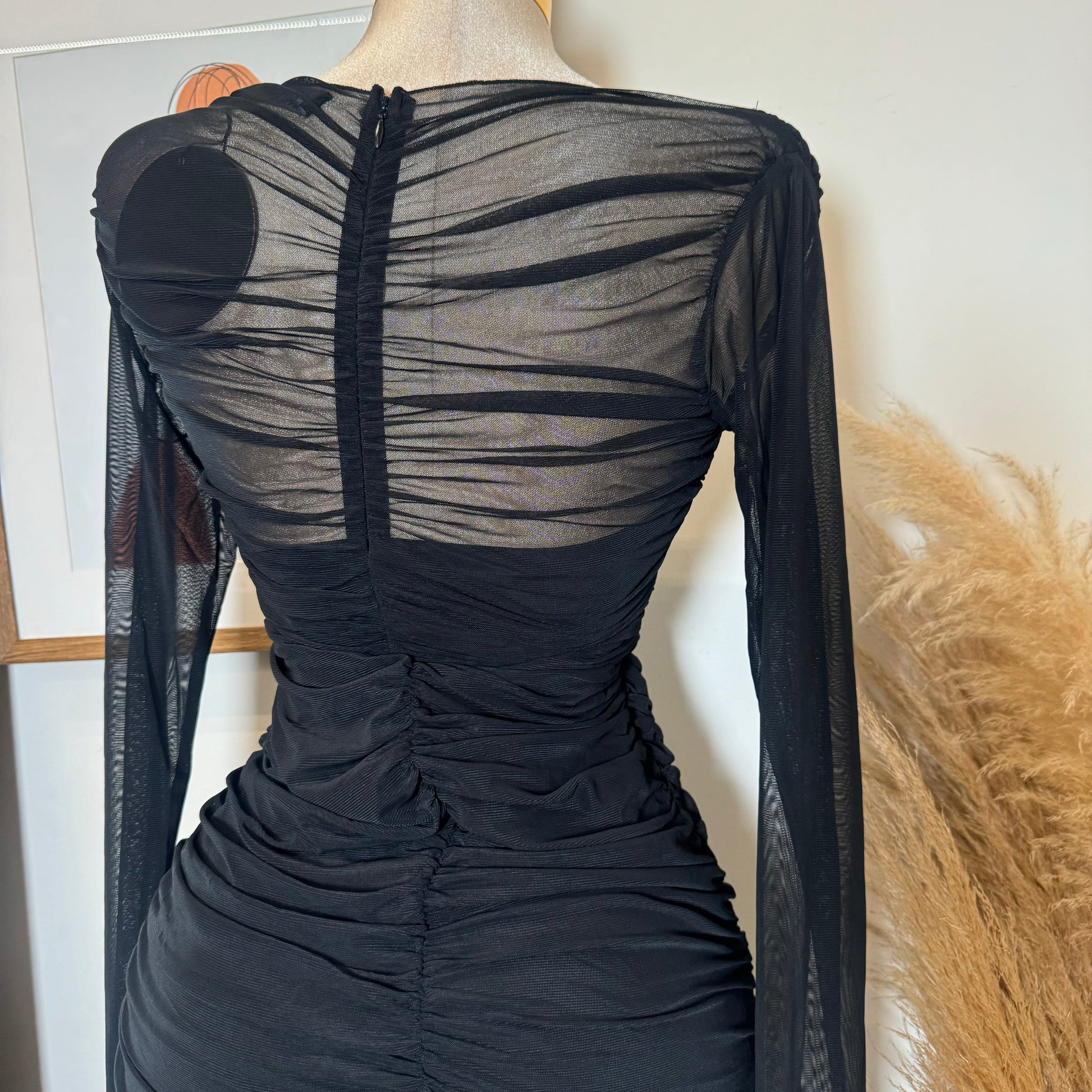 -Long Sleeve Mesh Dress