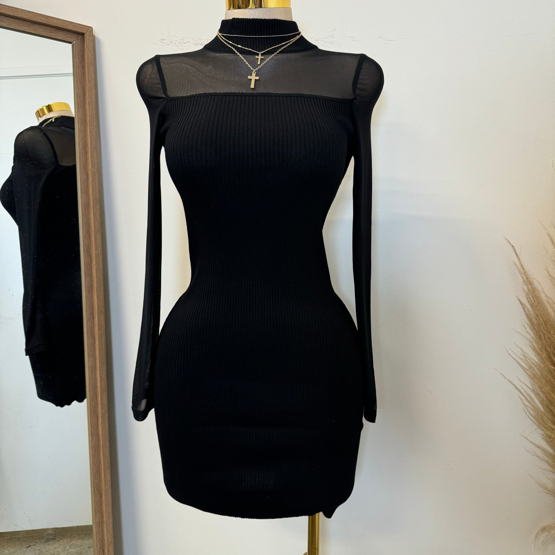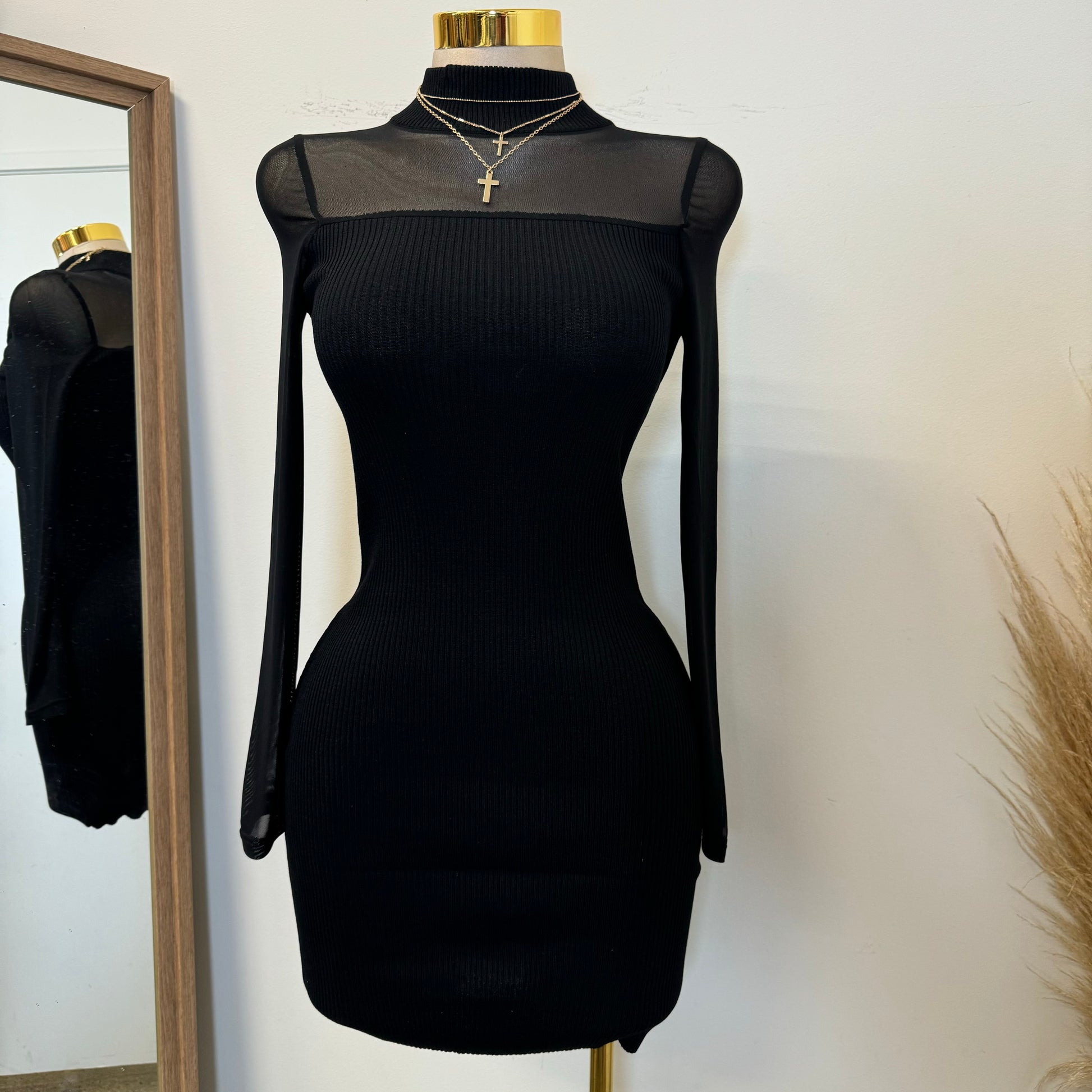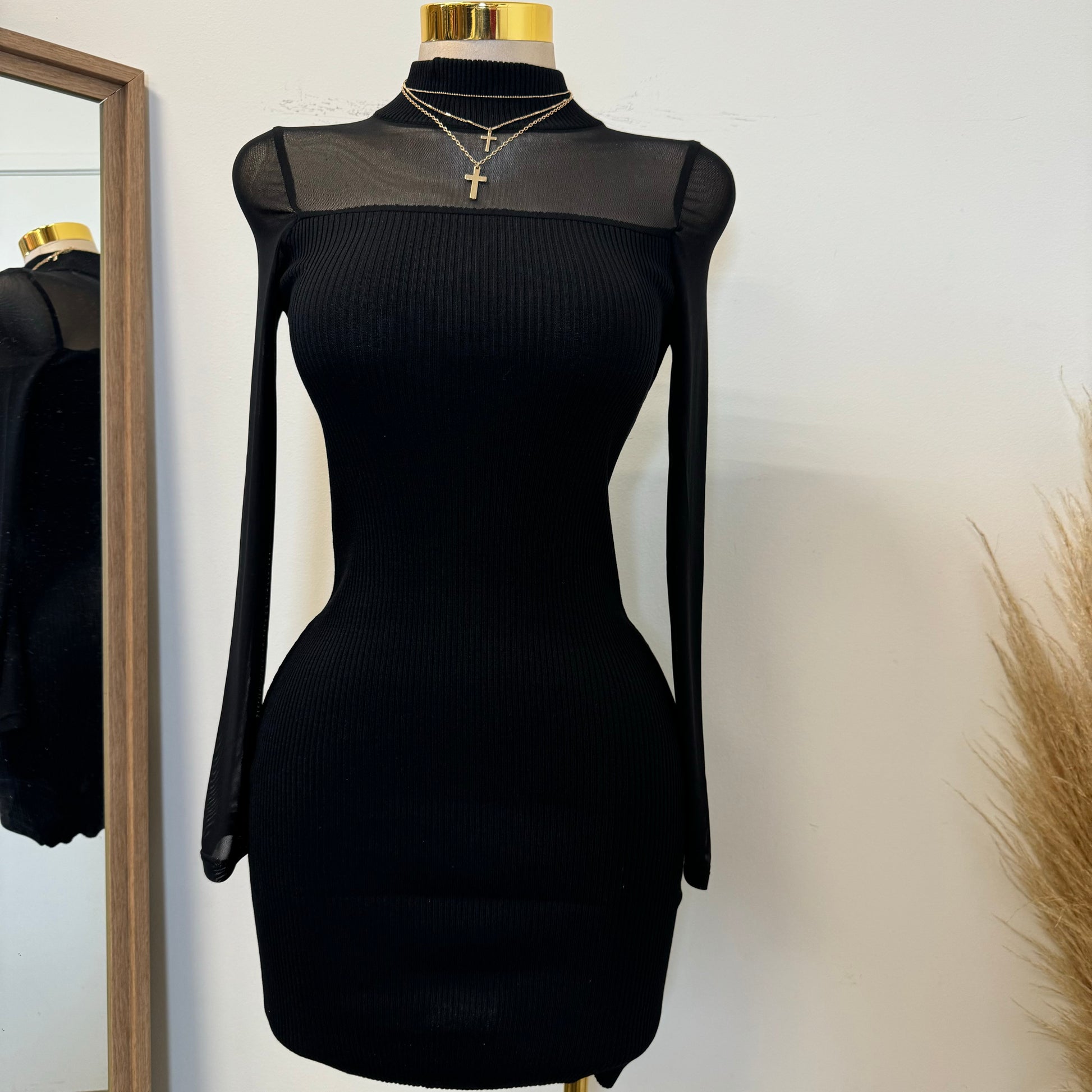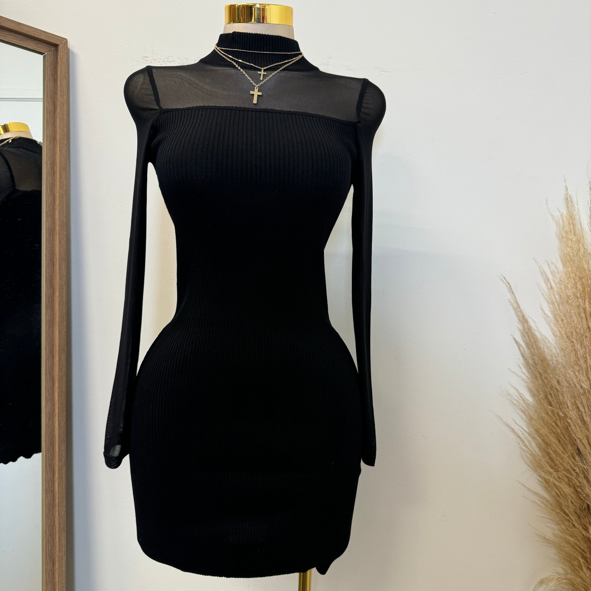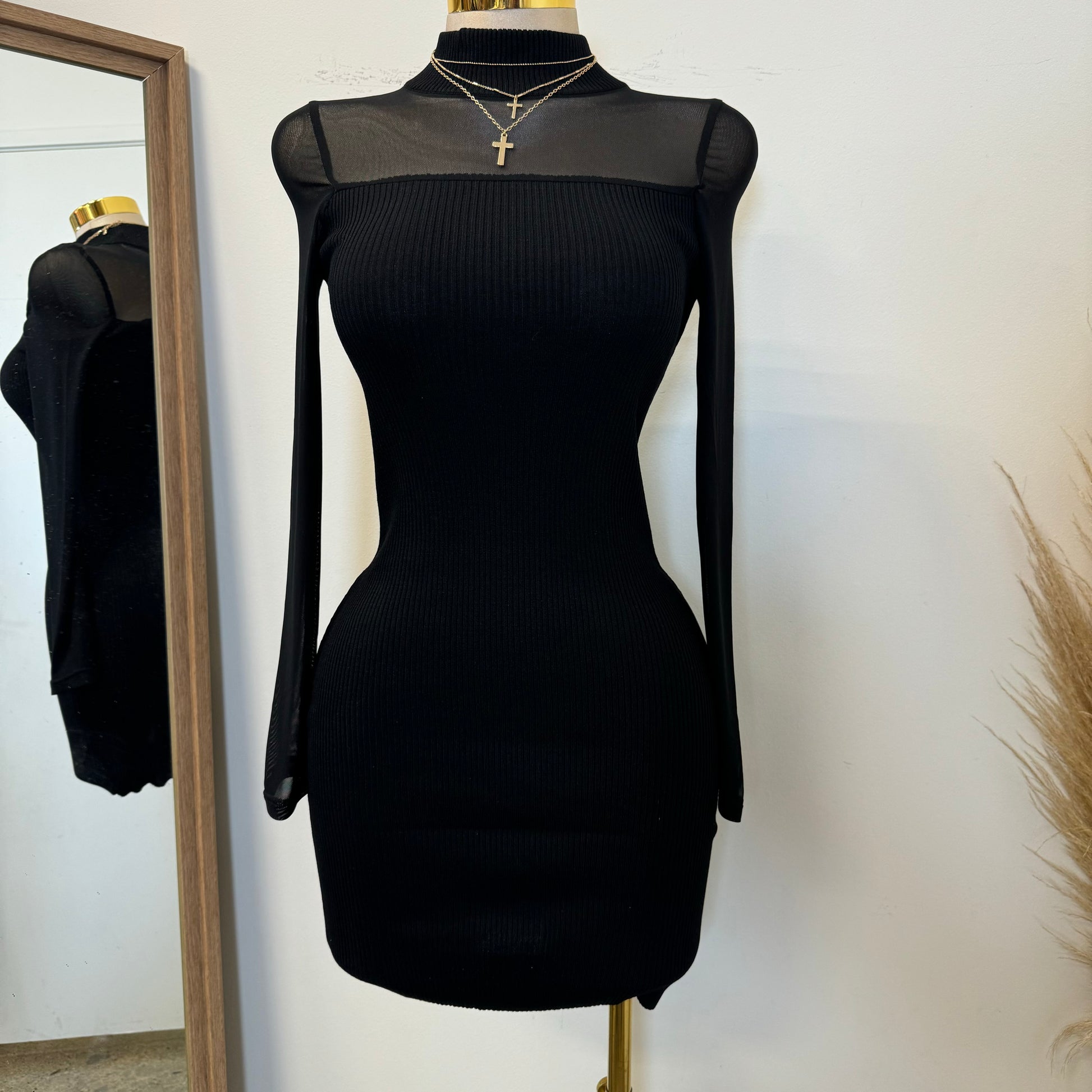 Marlina Mesh Sweater Dress-Black