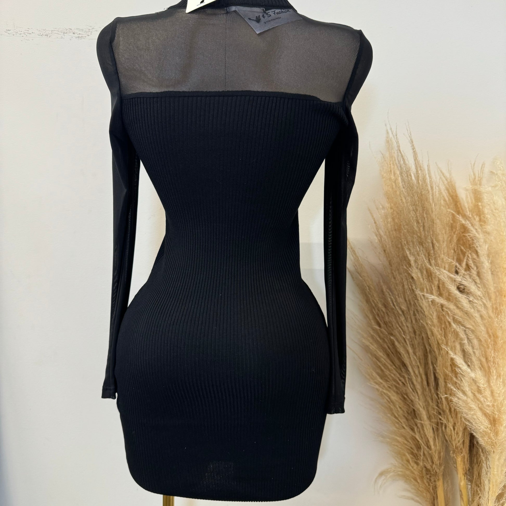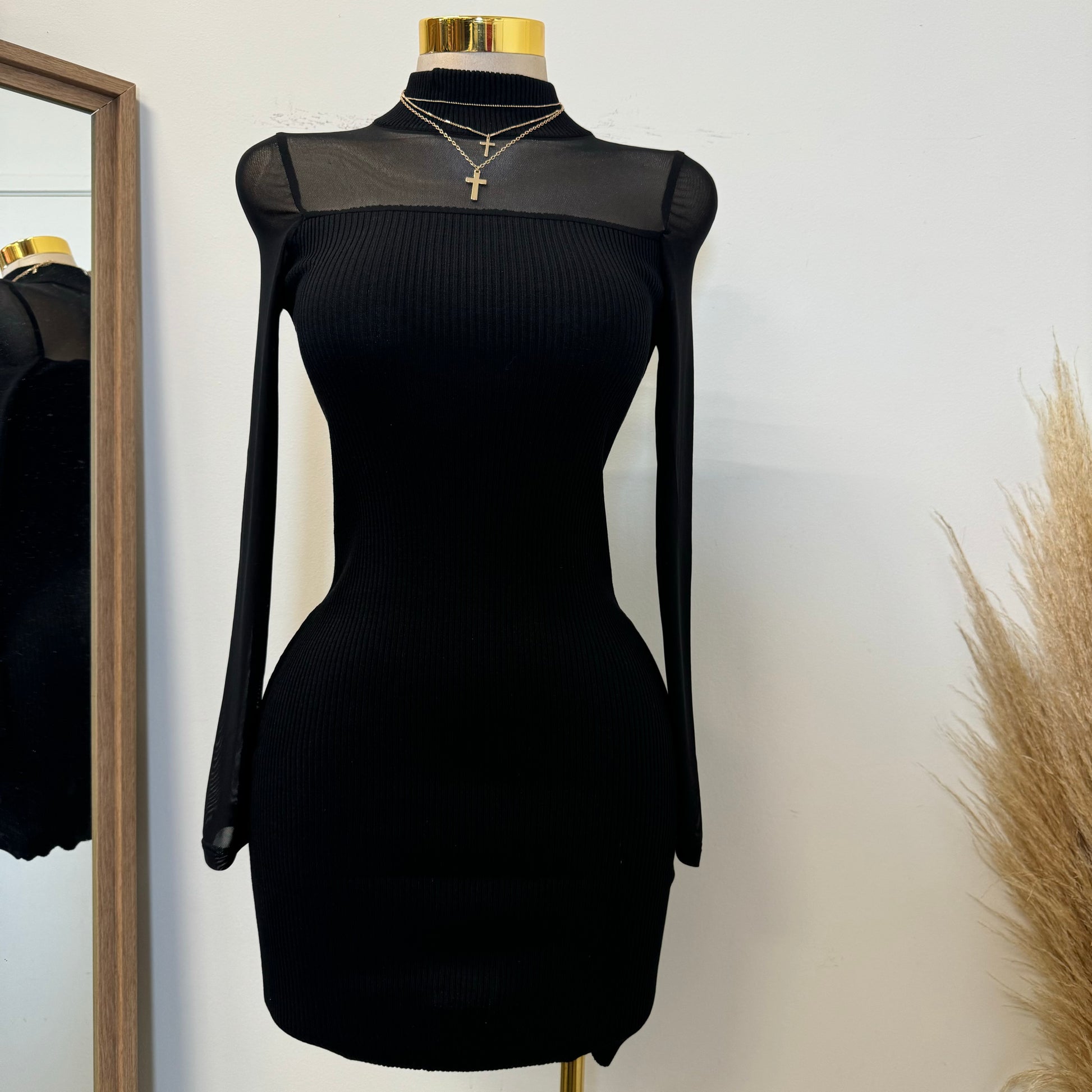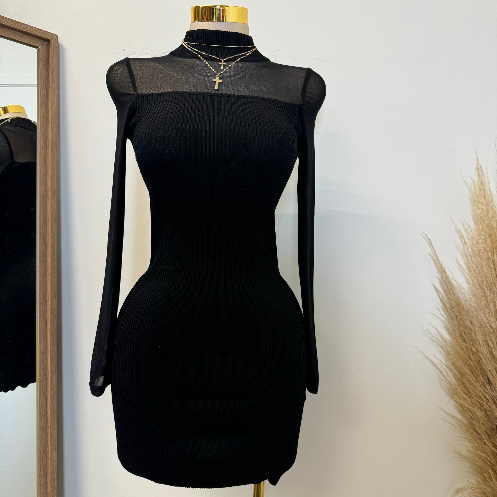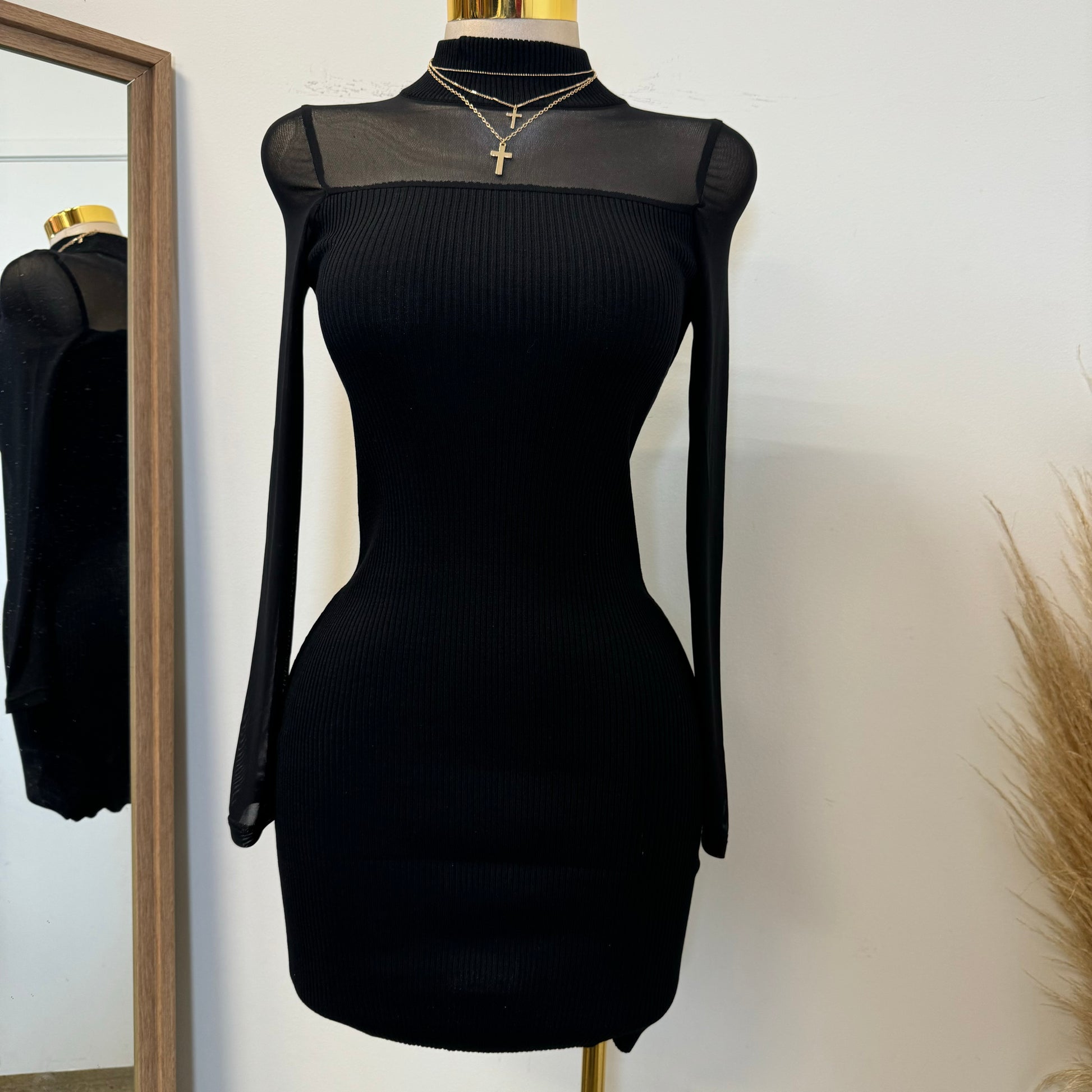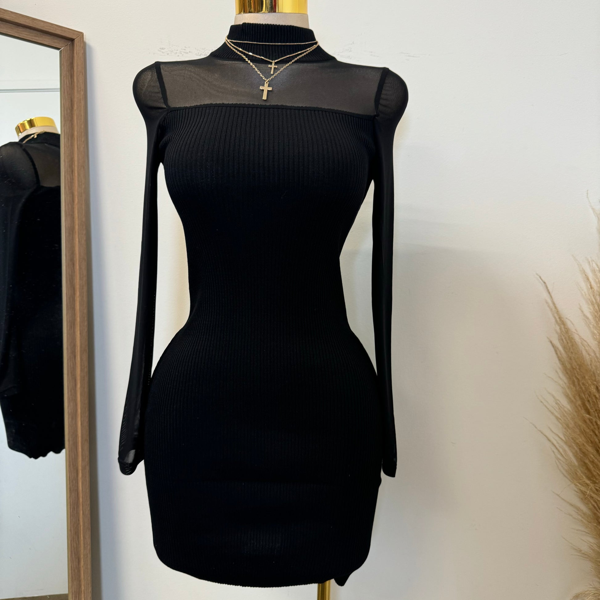 Marlina Mesh Sweater Dress-Black