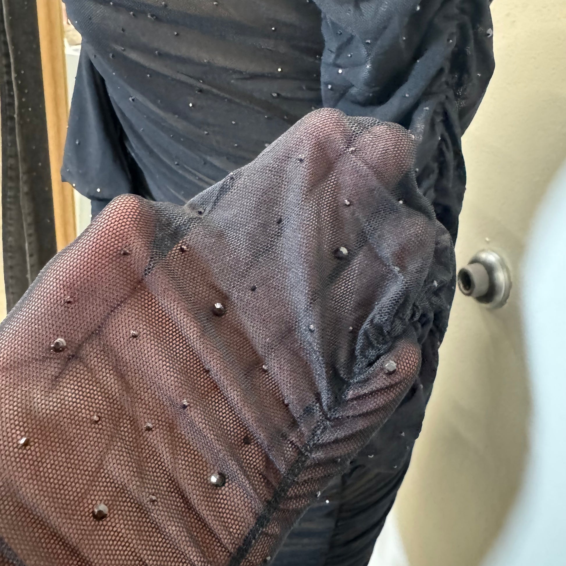 Mesh Rhinestone Dress-Black
